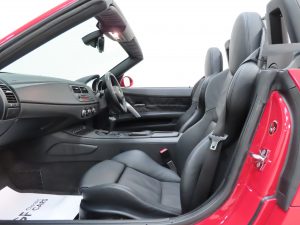 Full Black Nappa Leather was specified as a factory optional extra costing £1,629.79 which was in addition to all factory options costing almost £3,200 in total. The interior space is virtually immaculate with deep-set body-hugging M leather seats and exclusive materials and finely crafted finishes throughout. The drivers bolster has some minor marks. BMW carpet mats have been fitted from new and beautiful design touches like the BMW M signature twin-blue and red styling cues combined with the illuminated gear lever knob add to the cars sporting intent. The fascia and centre console are swathed in perfect Black Carbon-structure leather and all interior controls and functions operate seamlessly. The pristine boot area houses the BMW air compressor unused. A stunning Z4M interior throughout.