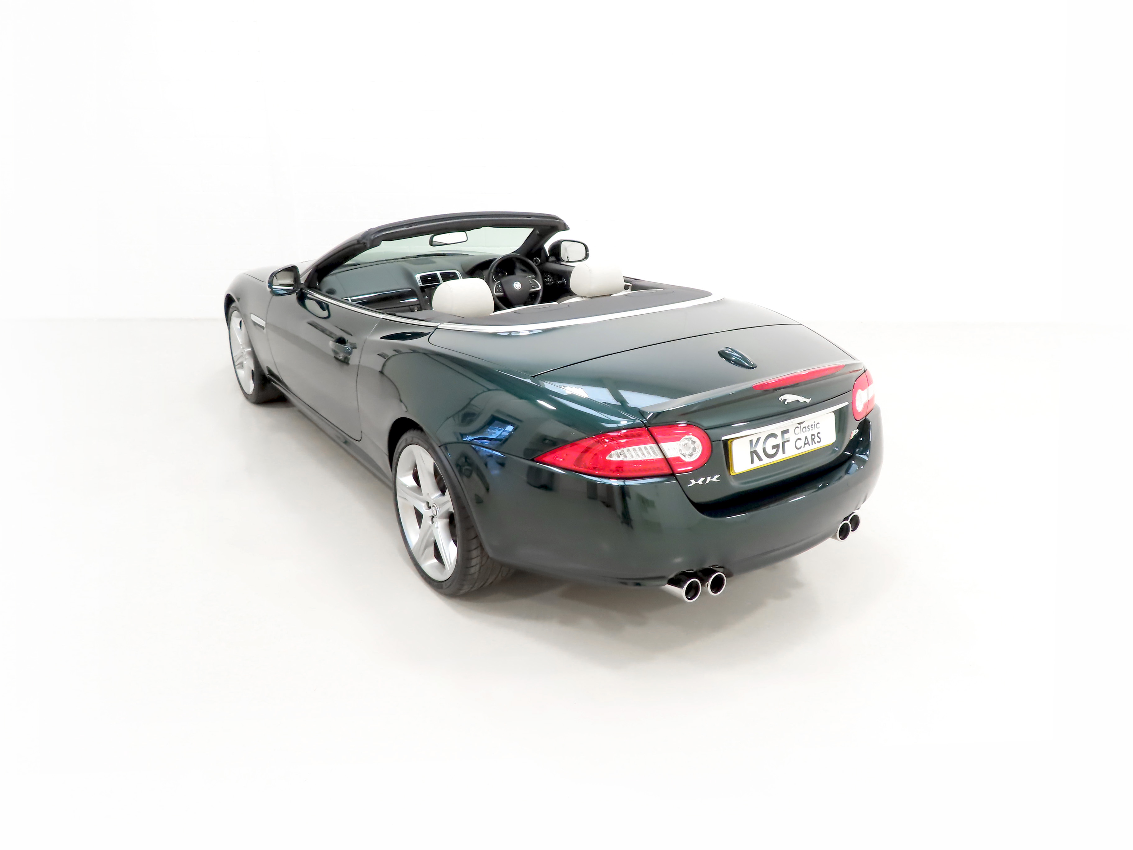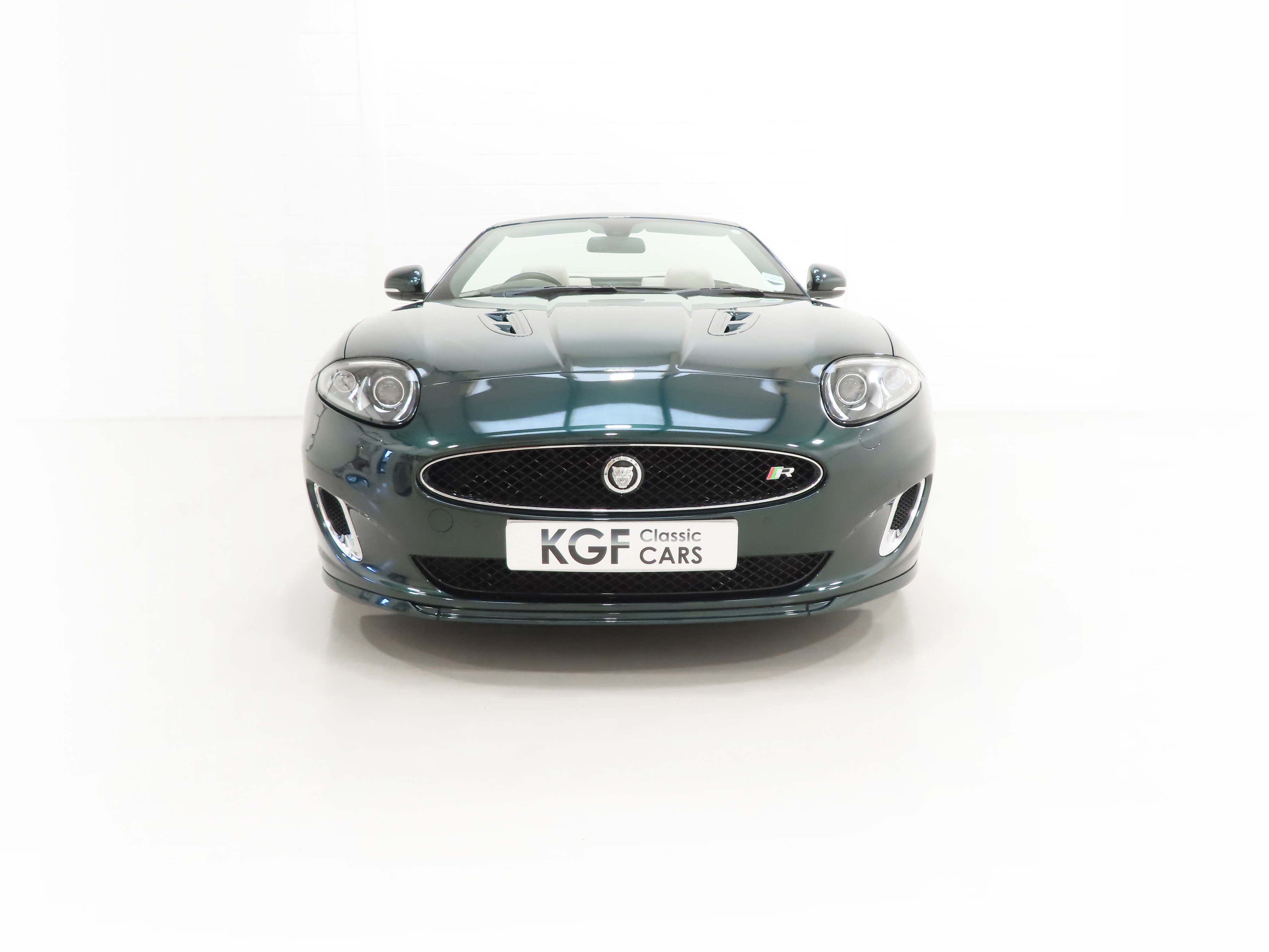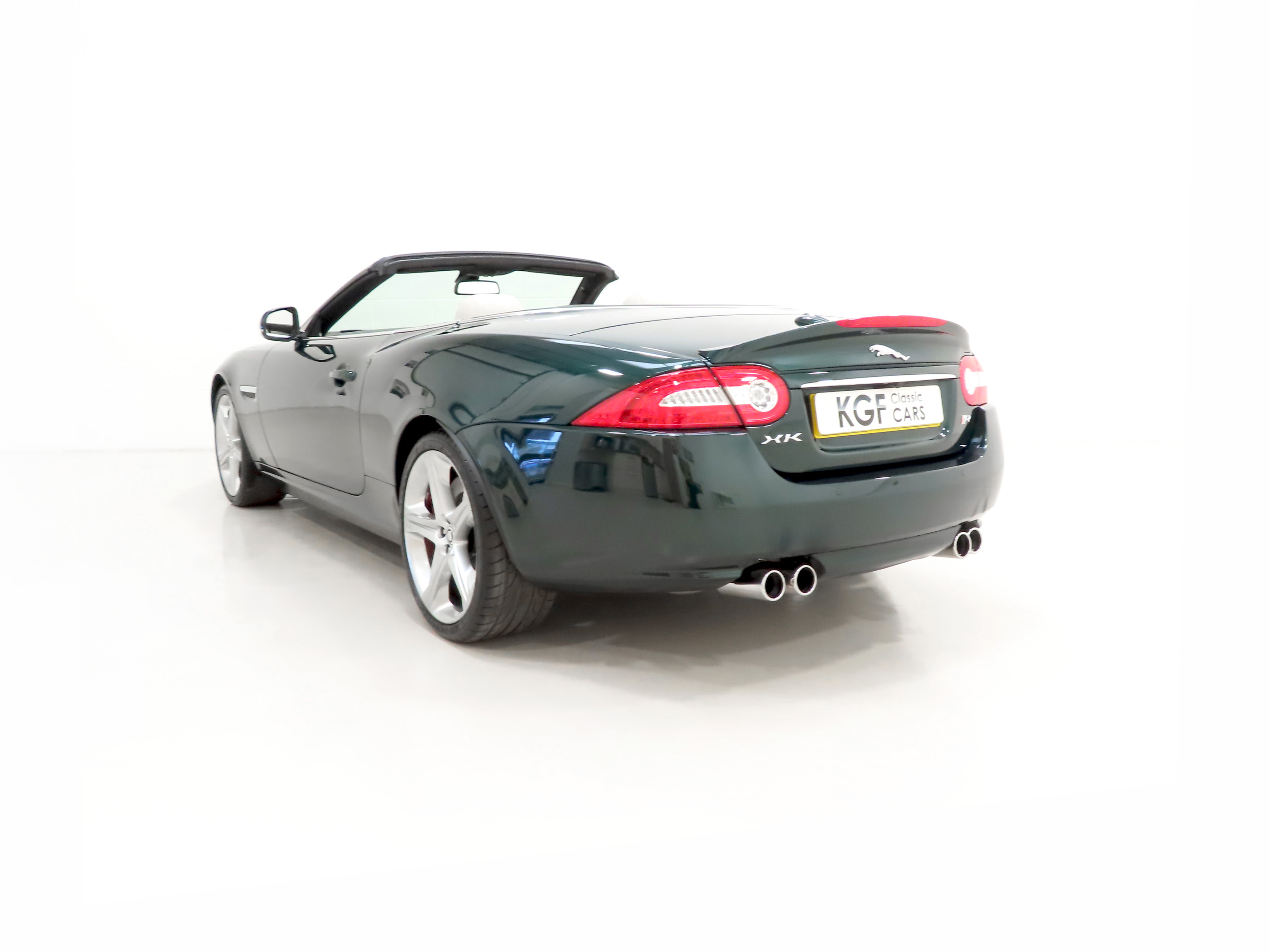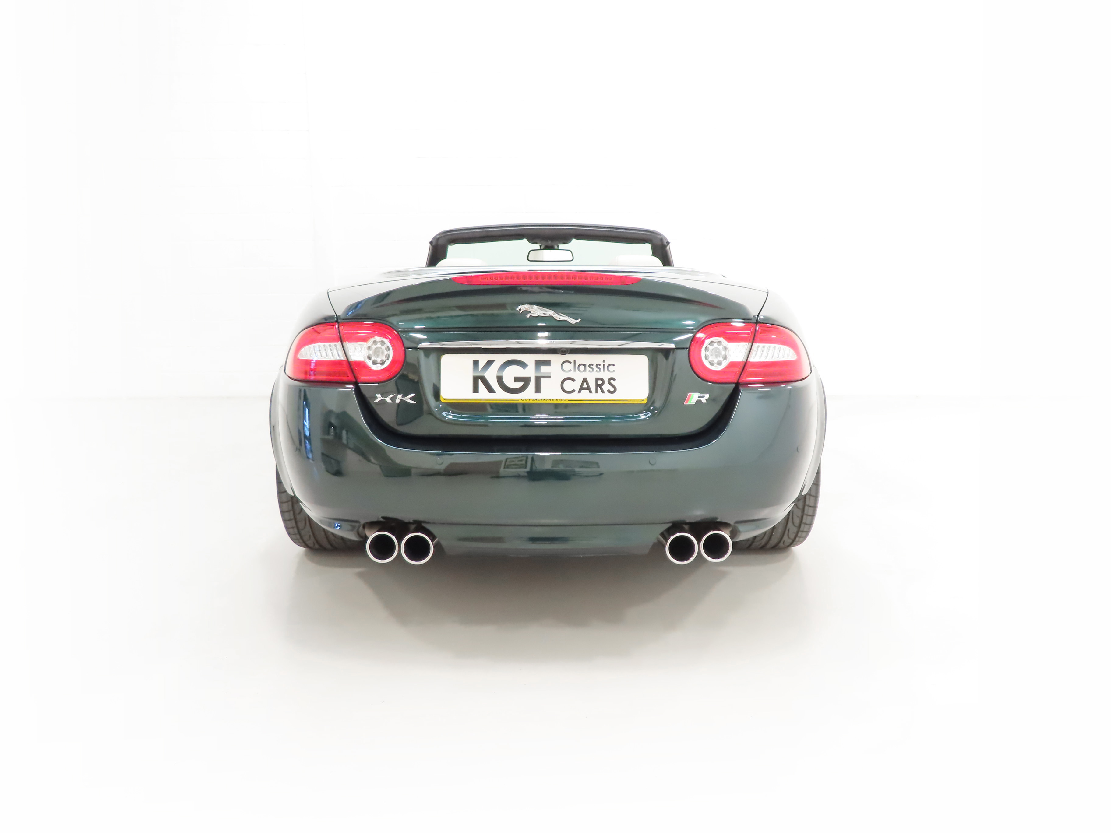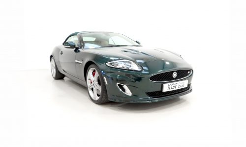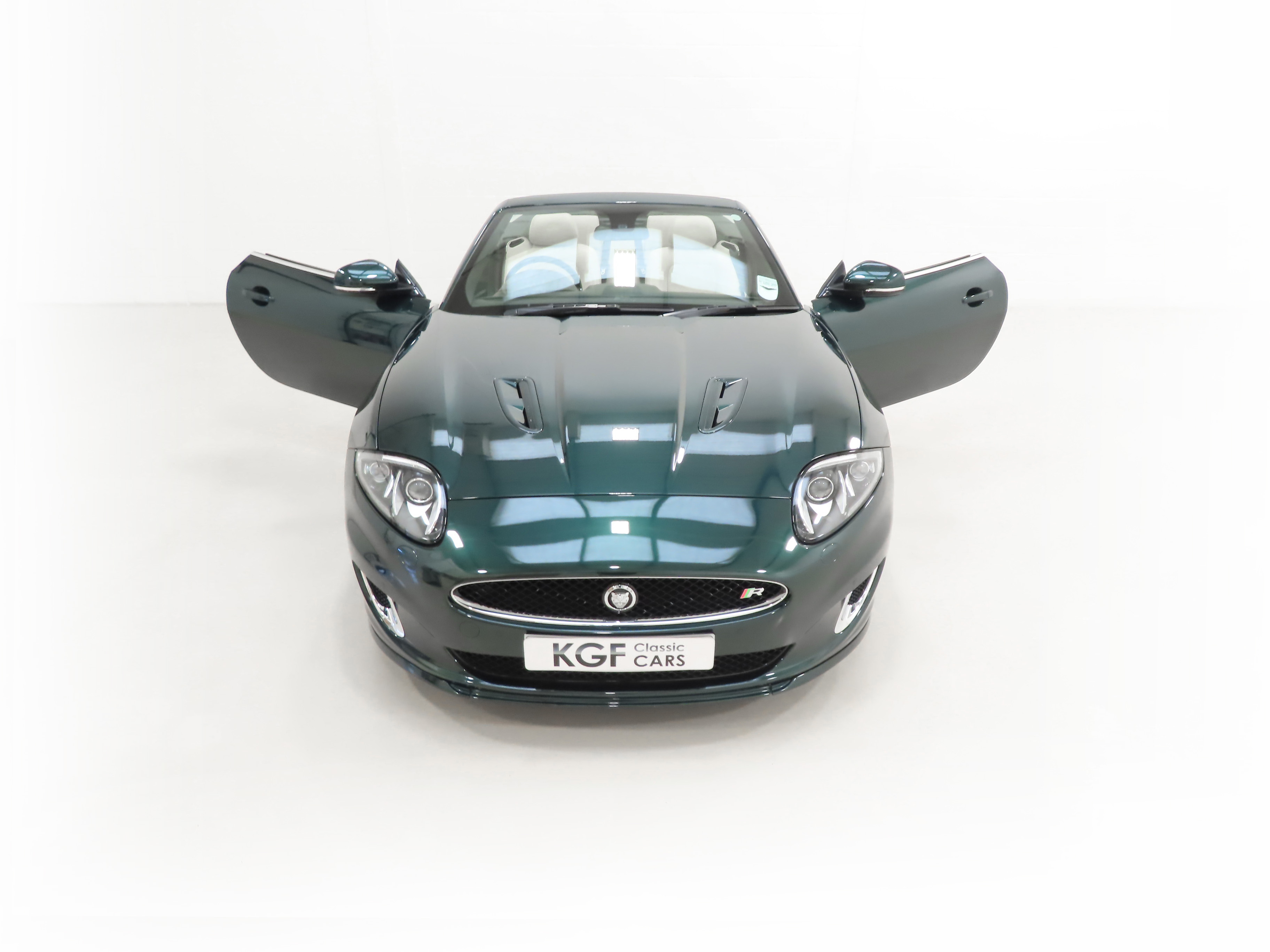 This phenomenal sports car is finished in iconic British Racing Green, (Code HGY), a factory cost option from the expensive Xirallic range which features a concentrated high metallic finish swathing the muscular body contours. The original paintwork is simply stunning throughout and reflects the ultra-low mileage credentials. The Premium Dark Green convertible hood is perfect in condition and operation and the XKR Aerodynamic Pack and bonnet louvres with Supercharged script leave in no doubt this is no ordinary XK. All chrome accoutrements and badges are in fine order as are the crystal-clear light fittings. Jaguar main dealer number plates and tax disc holder remain fitted. An exceptional car, the perfect blend of sporting prowess and Jaguar magnificence.