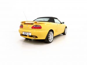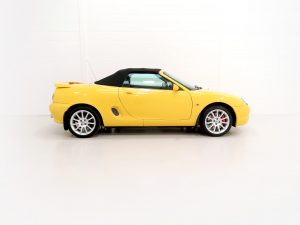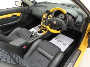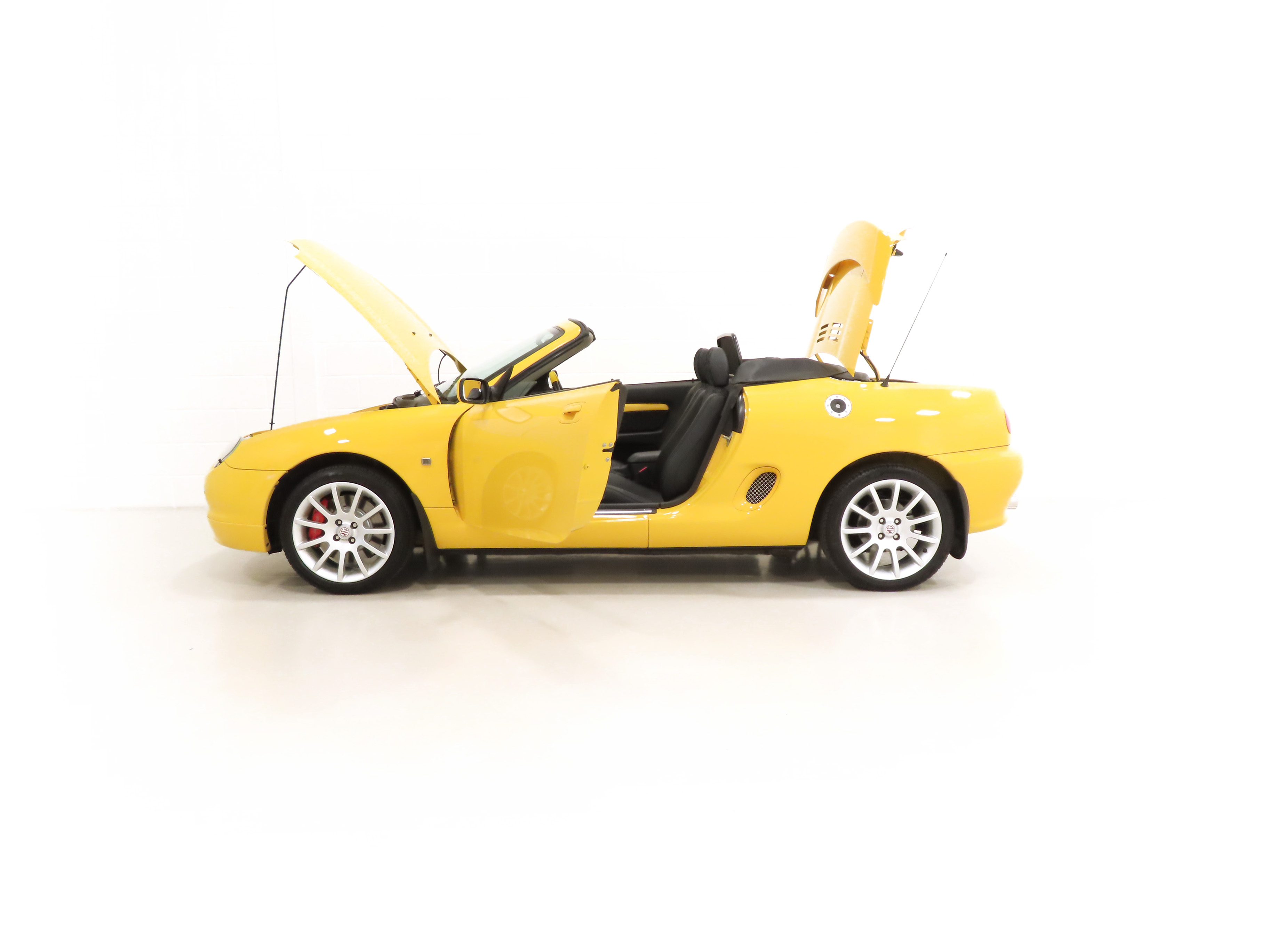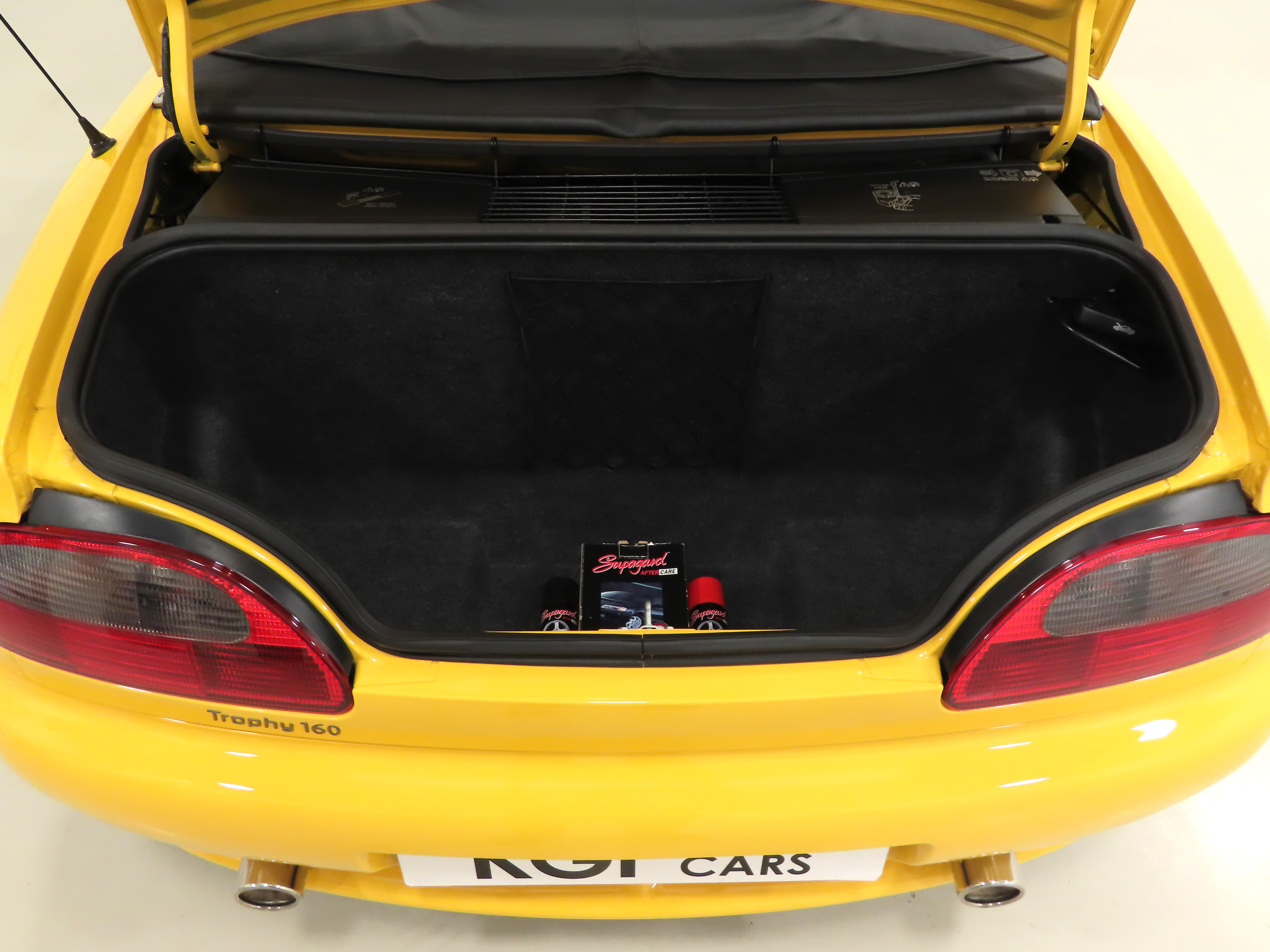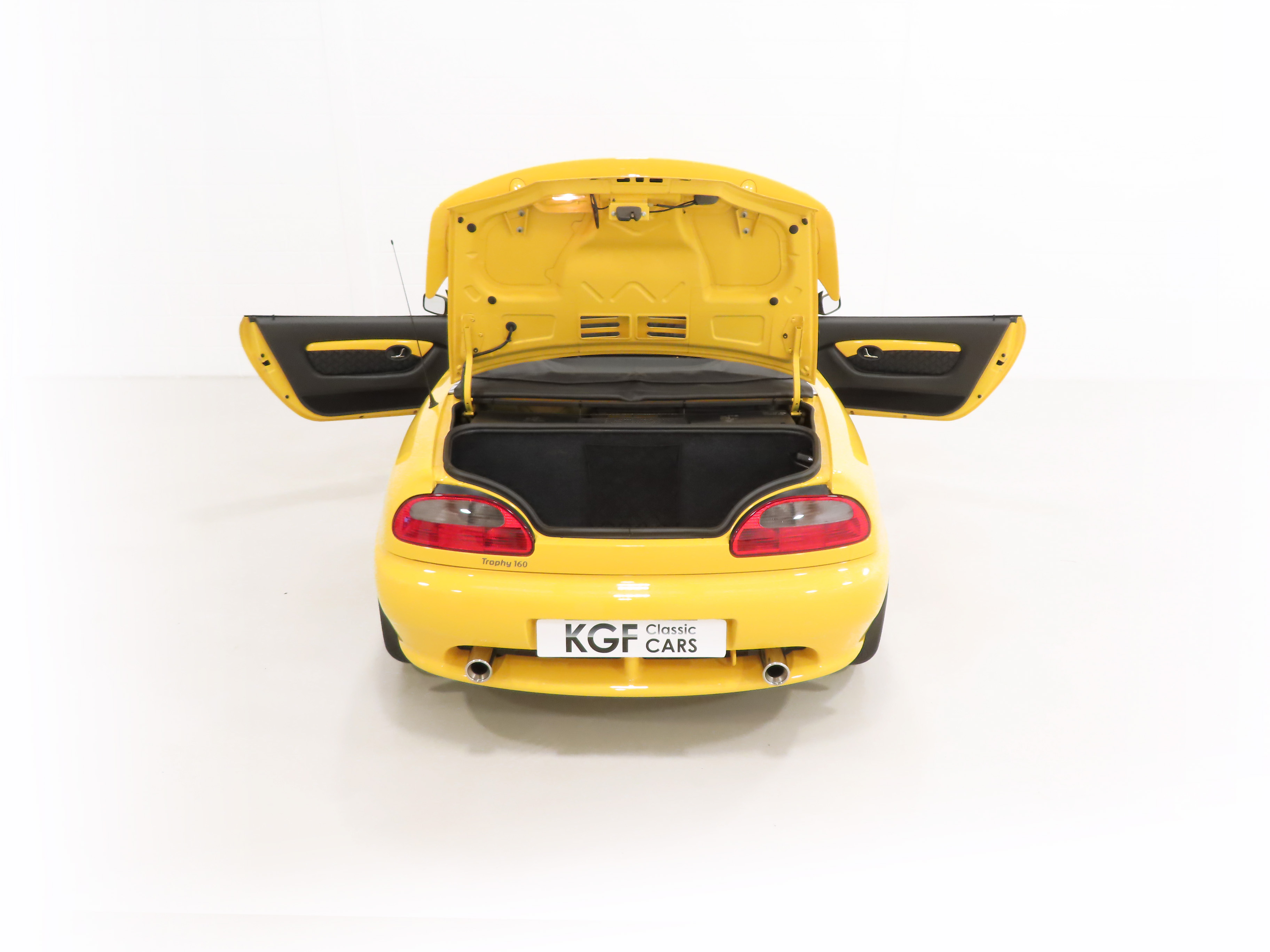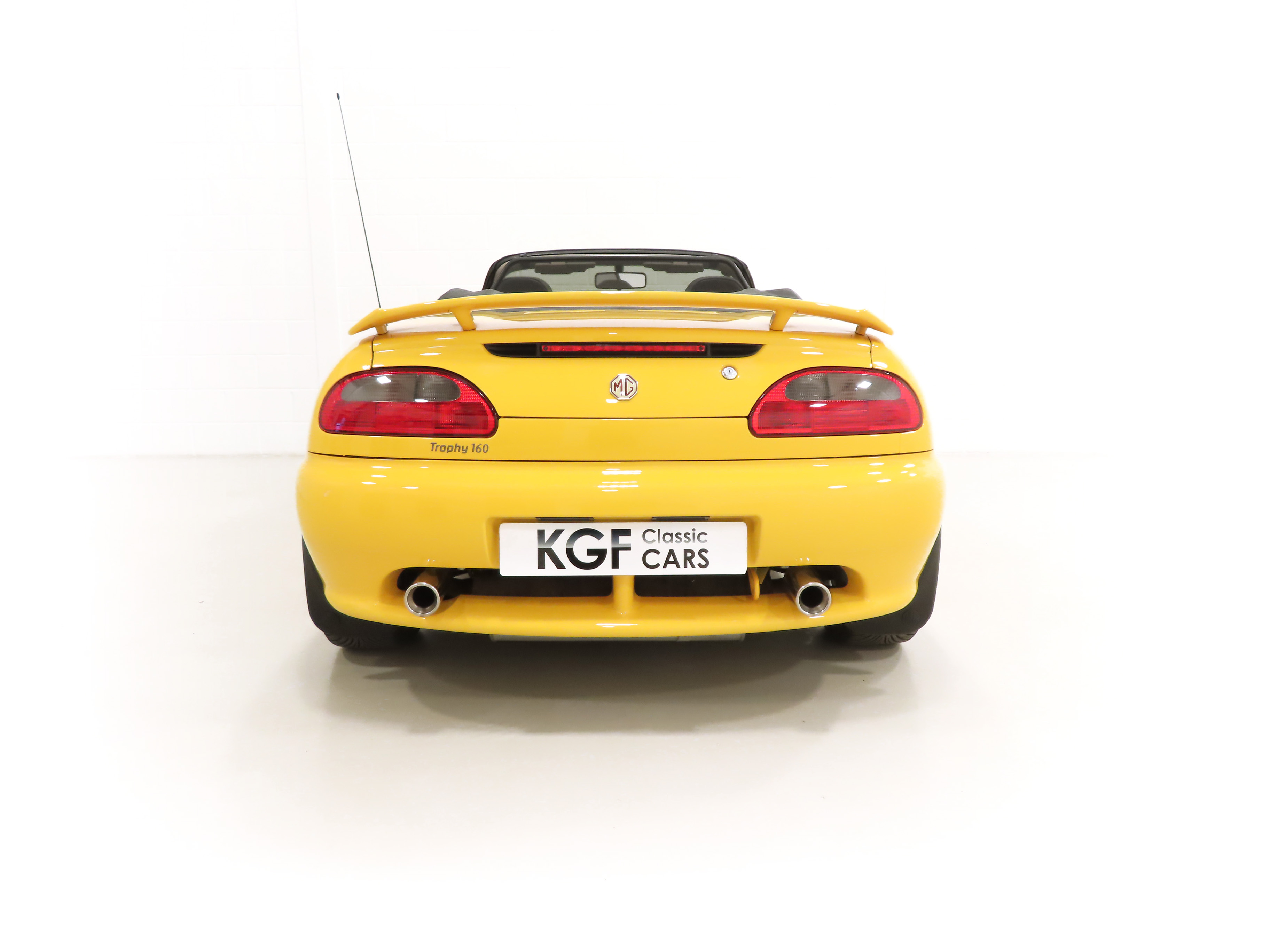 Just 1,430 limited edition MGF Trophy 160 cars were produced for the worldwide market and this example is one of the 804 UK examples. To create this range topping model the roadster was worked over by Peter Stevens, MG Rovers design chief and the man behind the McLaren F1. This prime example has covered an ultra-low 6,797 miles from new with just one owner, a retired gentleman, who was insistent on the best possible protection for his new car. To this end, he specified Supaguard protection treatment, MG headlamp protectors, MG fitted mud flaps, and both genuine MG rubber mats to protect the MG carpet mats! The car was strictly garaged and used sparingly in dry weather only, and the condition is absolute testament to this pampered existence. The stunning factory Trophy Yellow, (Code FAR), paint finish is virtually perfect with no fading or imperfections worthy of mention and the original black woven acrylic fabric hood is immaculate. All panels and shut lines are straight and even the boot lid is flush as opposed to often being raised due to the incorrect fitting of the tonneau cover. All trim is unmarked and the Trophy 160 rear badge is proudly displayed as are the supplying MG dealer number plates and tax discs holder. This example will satisfy the most fastidious fanatic and could be one of the best surviving examples anywhere in the world.