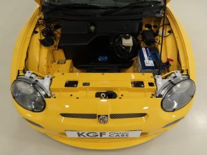 Body-colour bumpers, mirrors and door handles, tinted glass, bright sill finishers, halogen headlamps, hood cover, high level brake lamp, drivers’ airbag, remote central locking, perimetric and volumetric alarm system, speed sensitive power steering, electric windows, oil and coolant temperature gauge, drop down bin and cup holders. Trophy 160 SE Specification; 160bhp VVC powerplant, Forged Spun Ultra alloy wheels, ride height lowered by 20mm, Black bezeled headlamps, MG/AP Racing upgraded front brakes with Stop-Sign Red callipers, front bib spoiler, rear boot spoiler, bright grille and air intake mesh, sports exhaust with wide bore bright tailpipes, unique Sports cloth/leather seats, centre console and door casing inserts in body colour finish, leather steering wheel keyed to body colour, Trophy 160 rear badge. Dealership accessories; MG headlamp protectors, MG fitted mud flaps, MG rubber mats, MG carpet mats, wind deflector, Supaguard protection treatment.