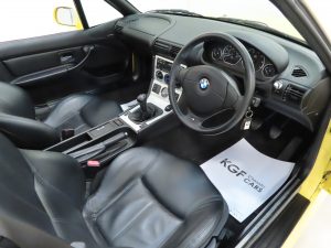 A hugely desirable and one of the rarest colours, this stunning Z3 Sport Edition Roadster is finished in factory original Dakar Yellow, (Code 337). The stunning paint finish has been very well preserved and boasts an exceptional uniform shine. Commensurate with the ultra-low mileage, there are no scratches, dings or imperfections worthy of mention. The original three-layer soft-top is in superb condition with perfect factory optional electrical operation. The Perspex rear screen has some very light scratches. Factory stickers and protective film in the spotless door shuts further affirm this as an unmolested example. The underside and wheel arch apertures are incredibly clean thanks to garage storage and mainly fair weather usage. This wide bodied Z3 is every inch a special edition and has been preserved exactly as BMW intended.