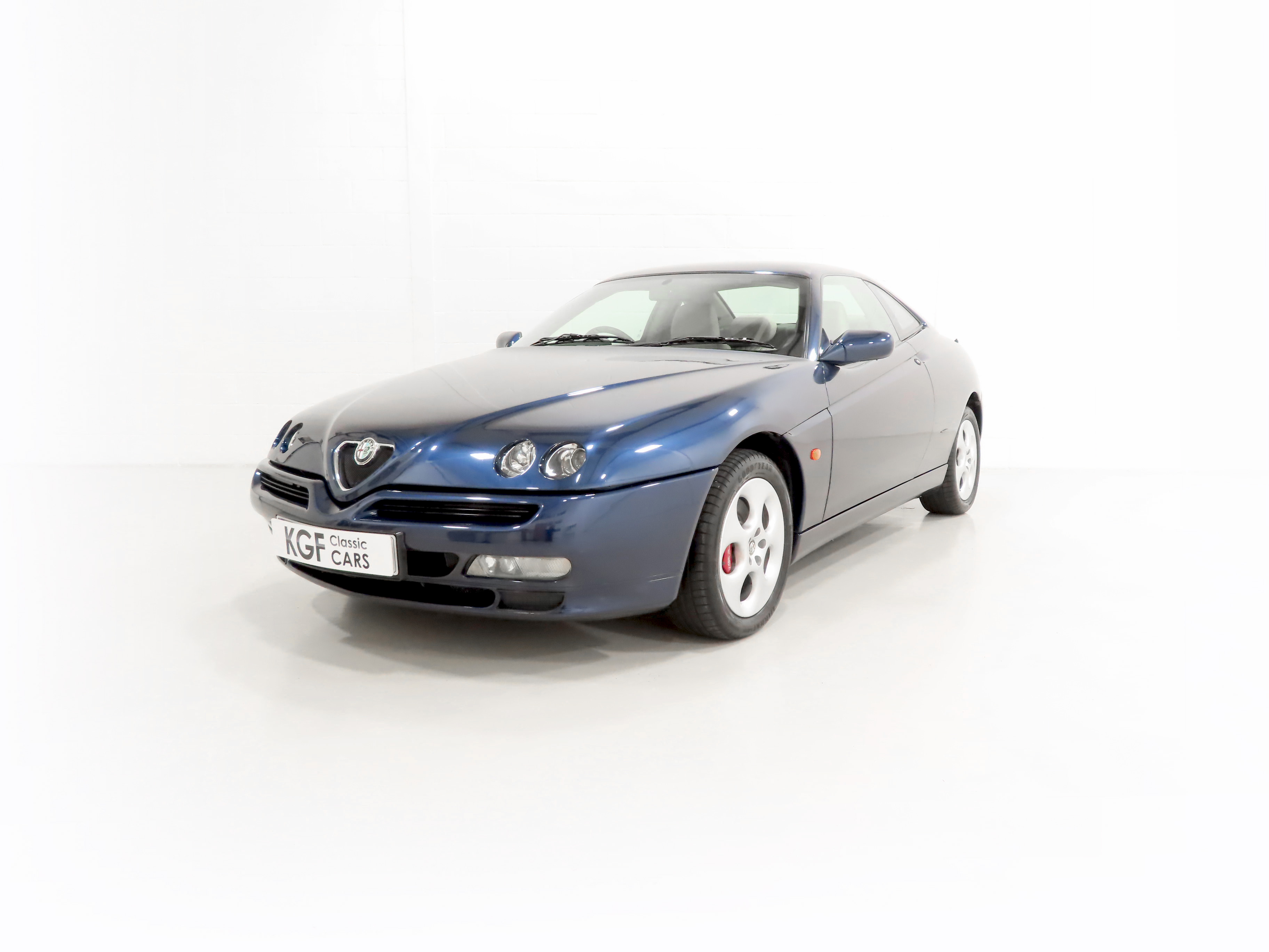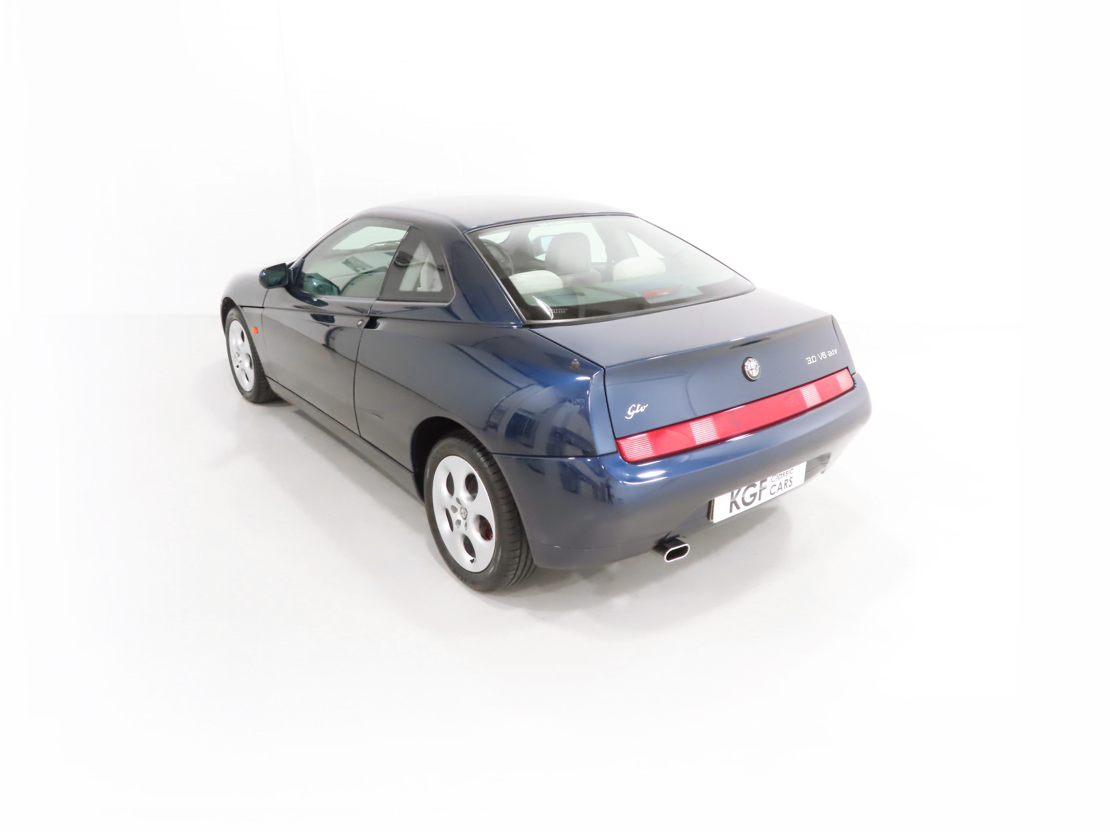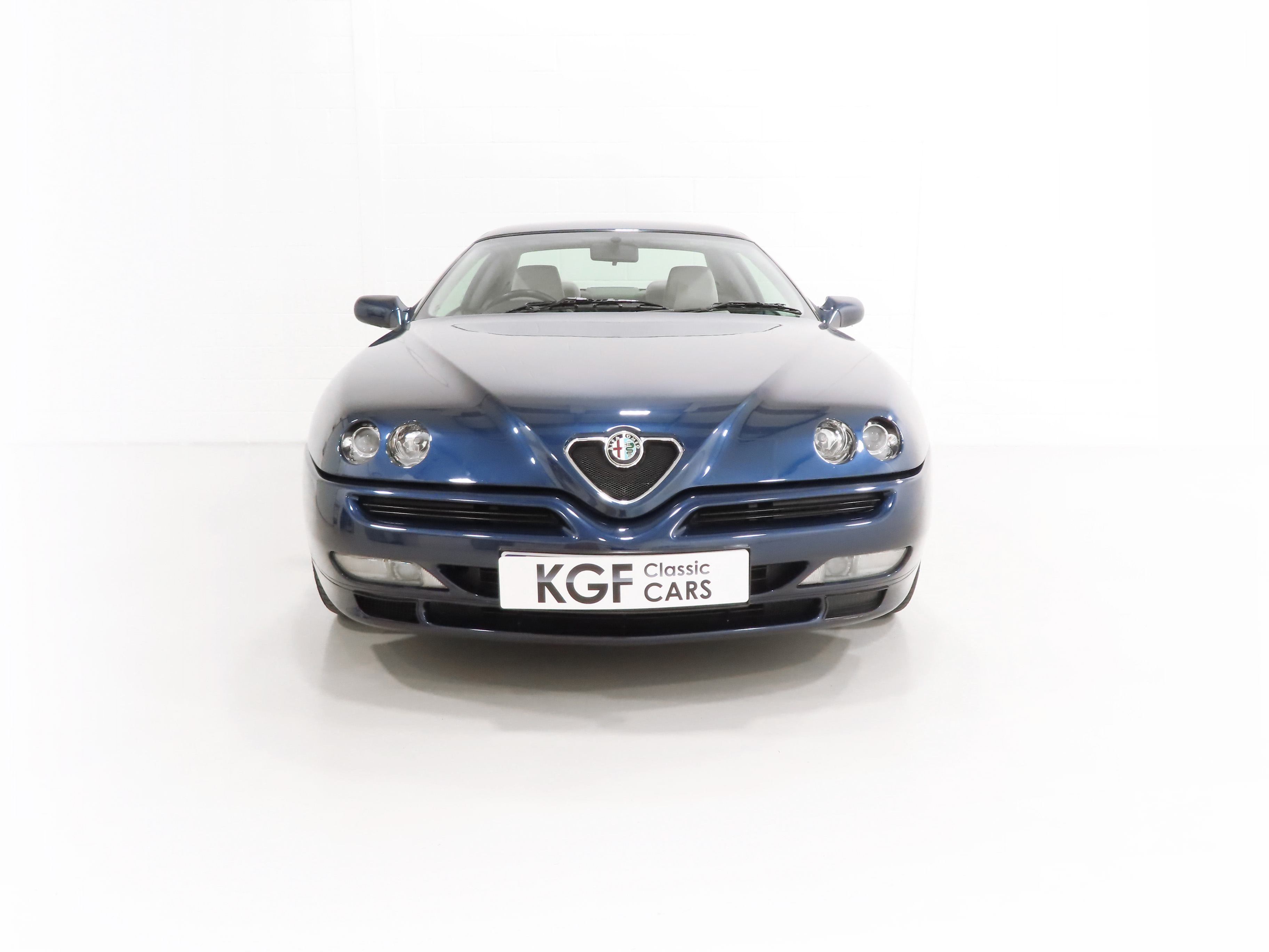 2+2 Pininfarina styled body, Pininfarina rear wing inscription, body-coloured bumpers and trim, third brake light, red brake callipers with white Alfa Romeo wording on front callipers, Alfa Code Immobiliser, FPS fire prevention system, Polyelliptical headlights, anti-skid system, Check Control (door and boot status), leather steering wheel with height and reach adjust, driver and front passenger airbags, automatic air-conditioned climate control, stereo radio cassette. Blue Style special interior Option 728; White seats and door inserts, blue fascia and door trim, blue carpets. Factory Options: Metallic paintwork. Dealer Accessories; Tailored Alfa GTV carpet mats, CD changer.