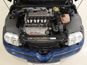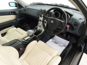 The flagship model, this GTV boasts the 3.0 V6 24V engine with plenty of Cuore Sportivo “Sporting Heart”. Specification includes a double overhead cam for each bank and Bosch Motronic ME 2.1 fuel injection to develop 220bhp and 270Nm of torque. The car accelerates 0-62mph in just 6.7 seconds and reaches a top speed of 149mph with the engine beautifully smooth with an intoxicating V6 throat. The clean engine bay displays factory stickers throughout and peace of mind is offered with comprehensive history including regular cambelt changes. The five-speed manual gearbox is light and precise. This outstanding GTV is archetypal Alfa Romeo, a true driver’s car.