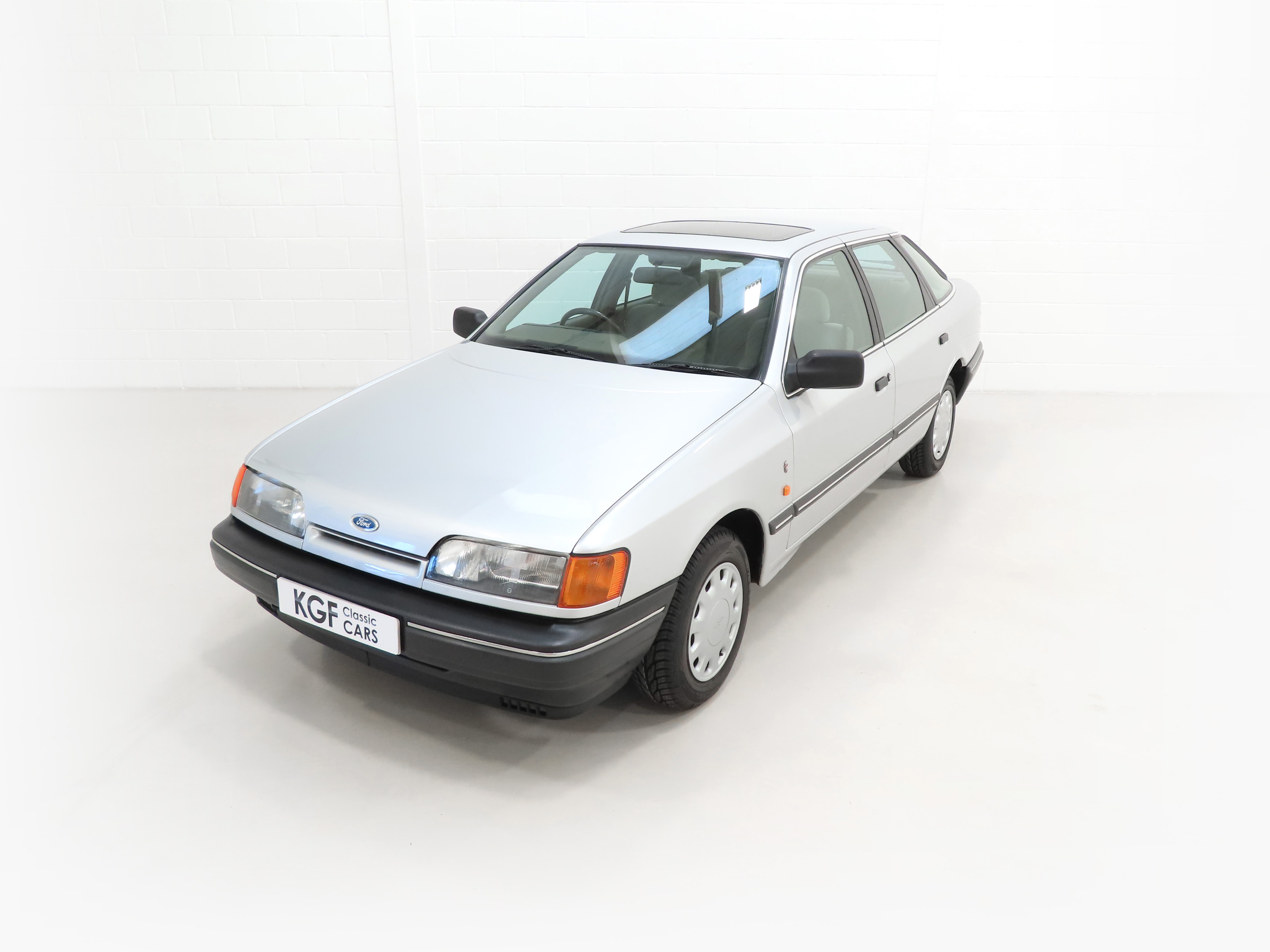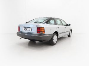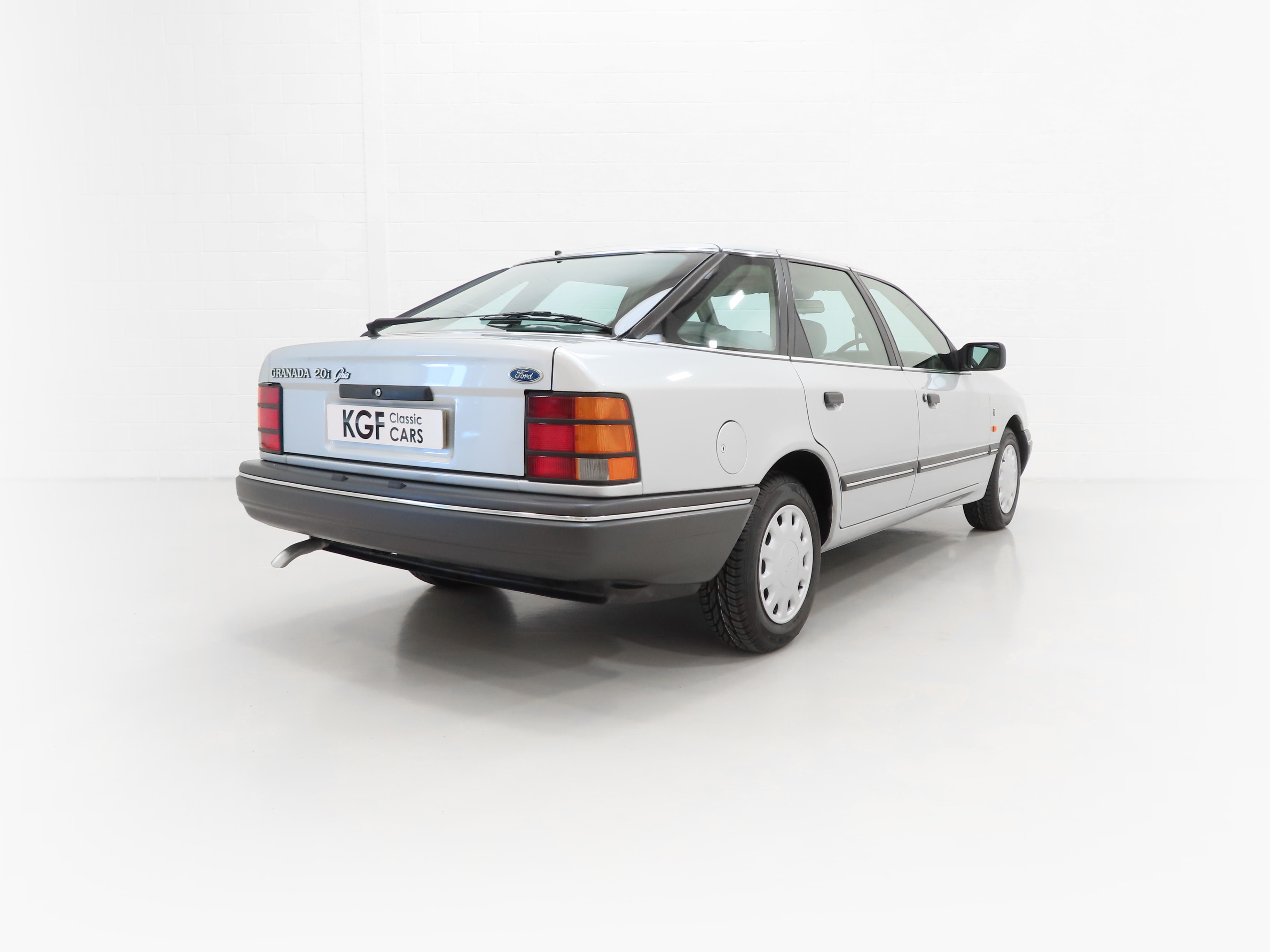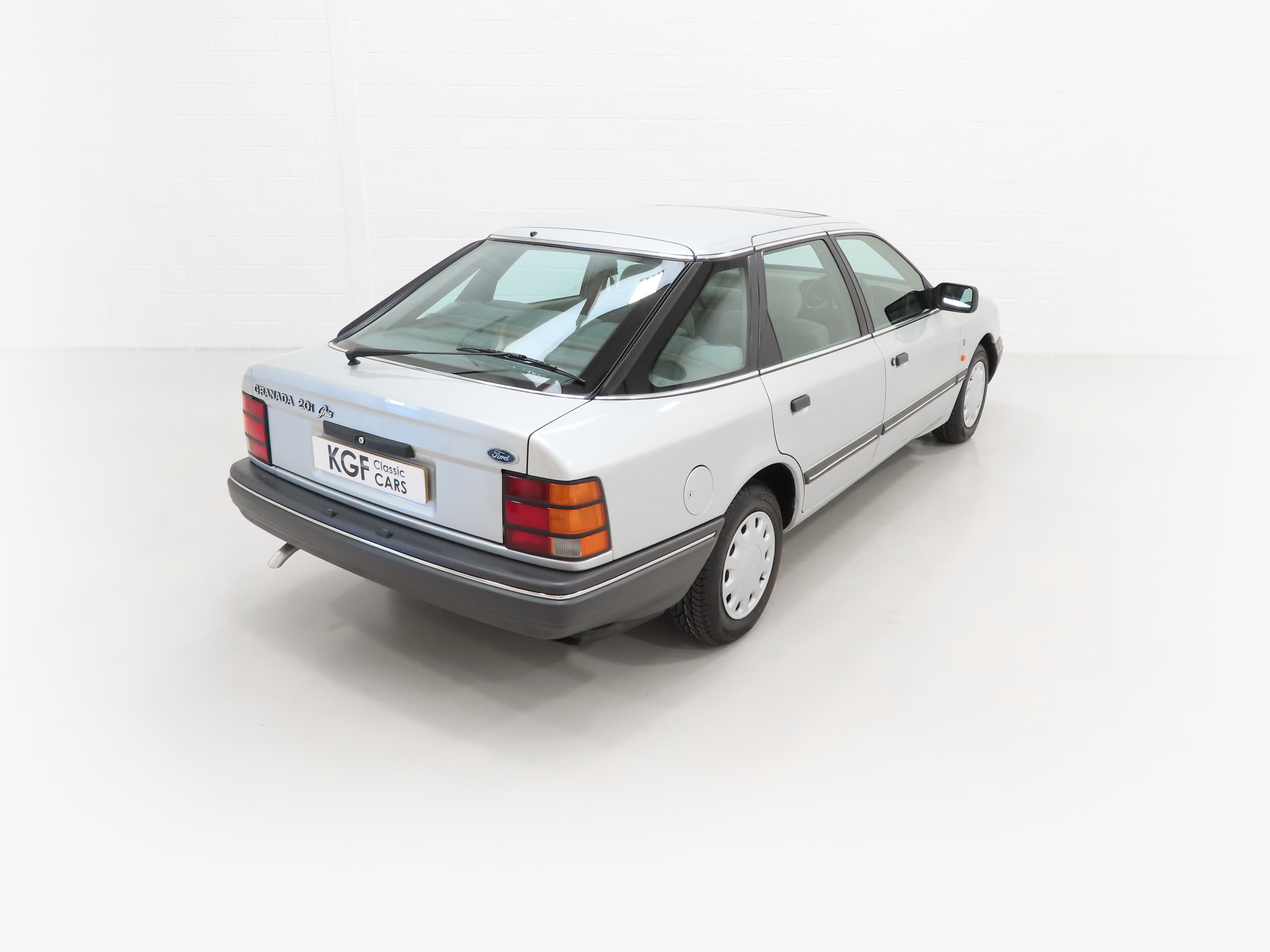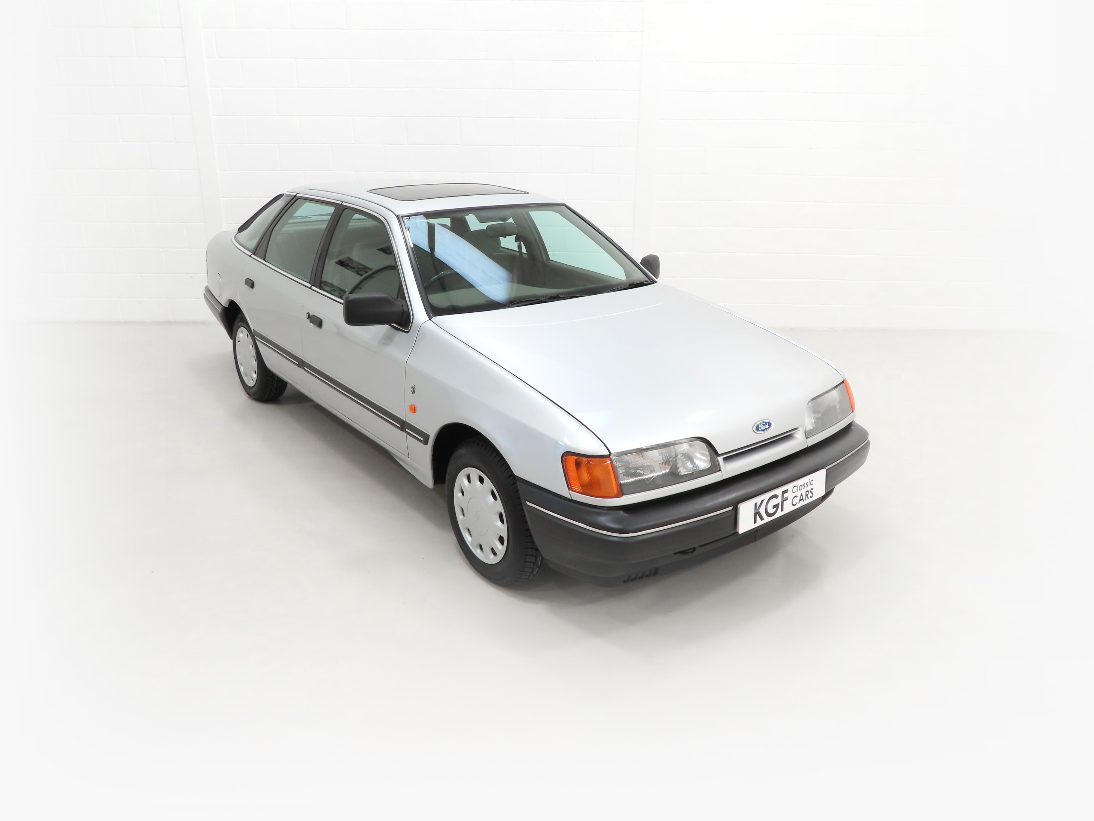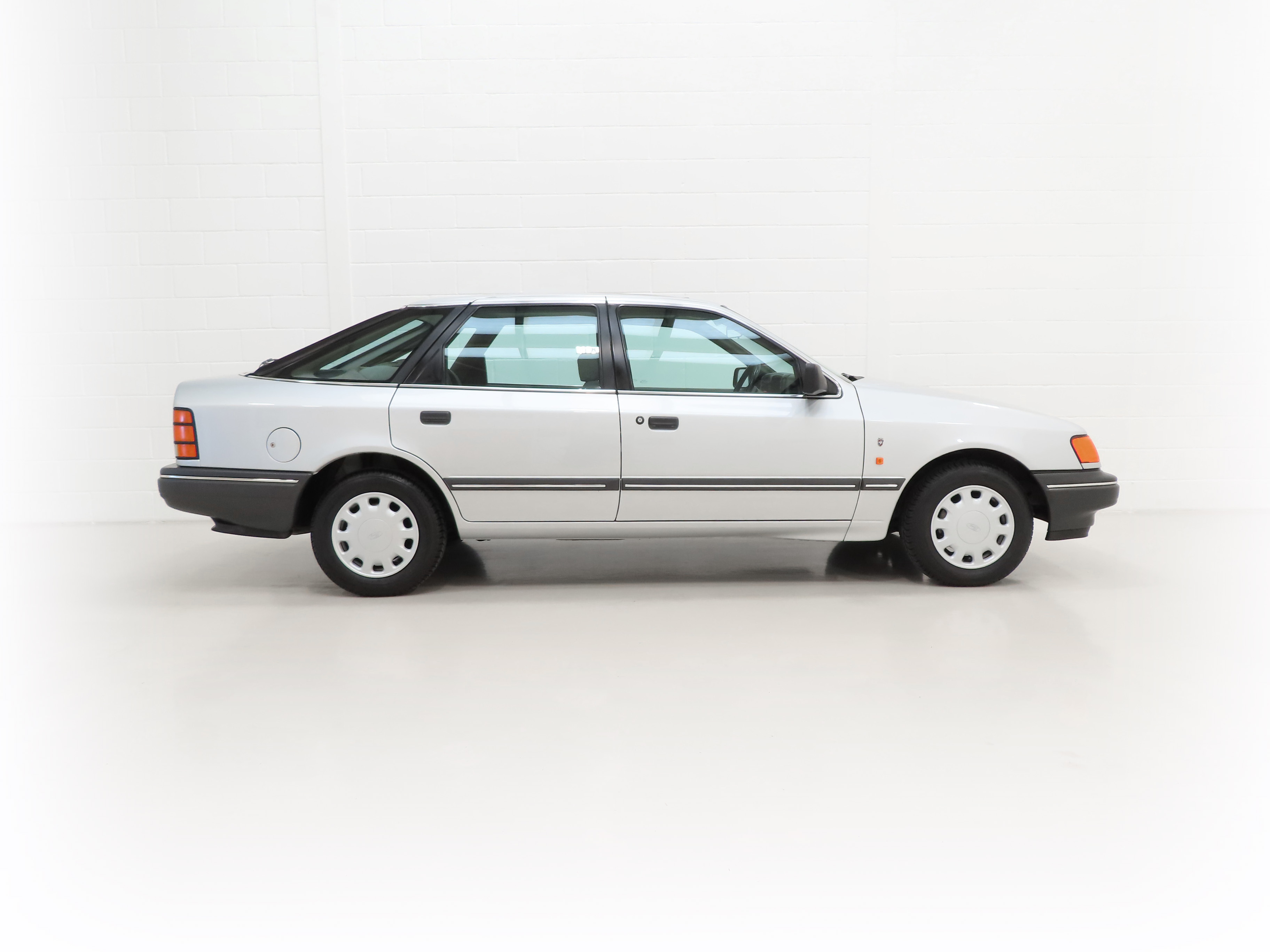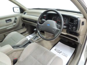 Body coloured grille, wide bodyside mouldings with bright inserts, remote control heated door mirrors, halogen headlamps, tinted glass, tilt/slide screened glass sunroof, multi-function quartz digital clock with ambient temperature readout, central locking, electric front and rear windows, tachometer, trip recorder, cigar lighters to front and rear, rear heater control, electronic model ERST-32PS stereo, graphic information module with monitors for door ajar, low air temperature and bulb outage. Factory Options; Metallic paintwork, 4-speed automatic transmission. Dealer Options; Tailored Ford front rubber mats, Ford jump-leads in spare wheel storage case.