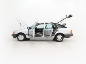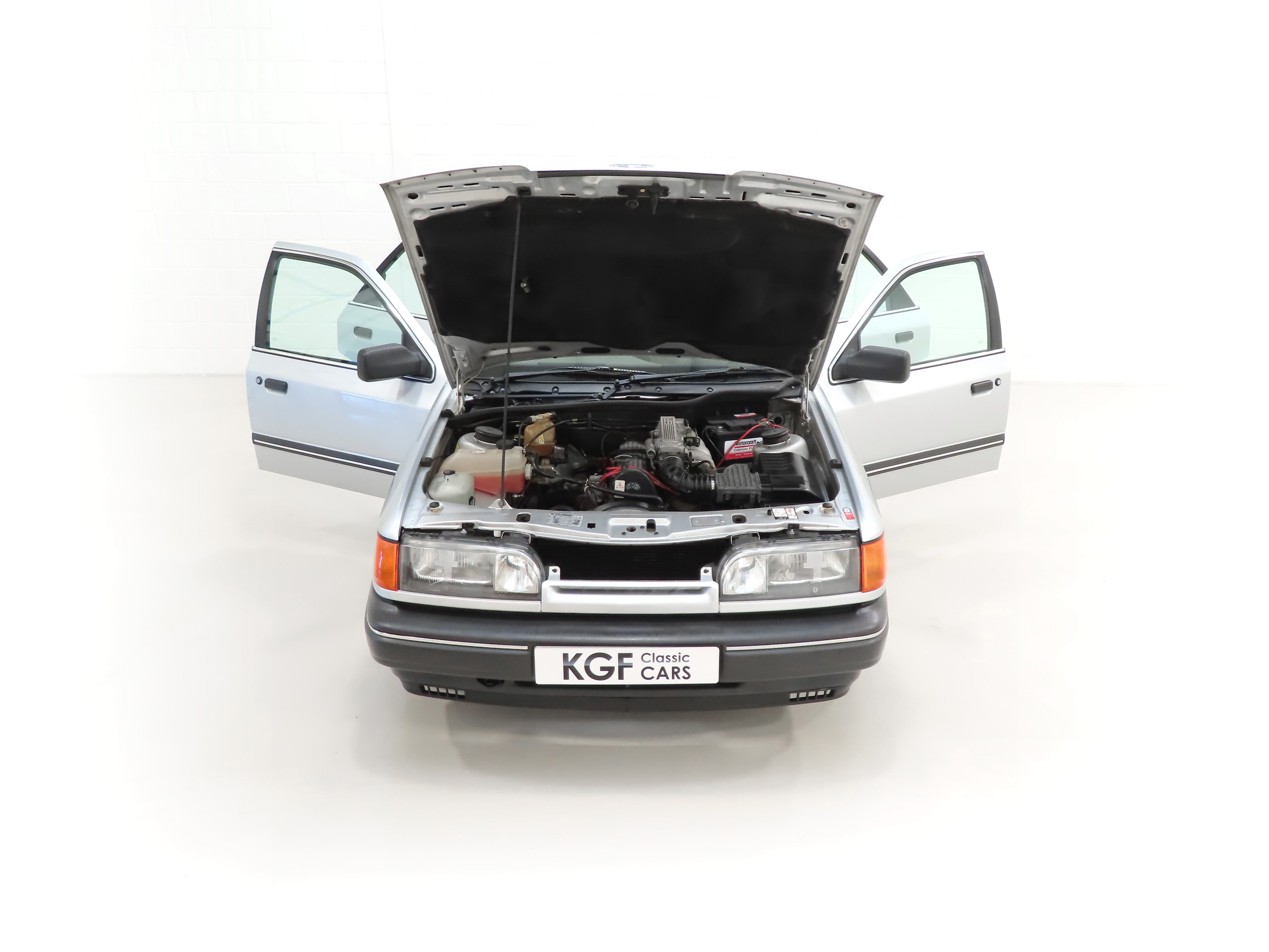 After a period of dry storage, the car has now undergone a full recommission to include a major service, all fluids, oils, cambelt and brand-new premium tyres. A full brake overhaul including discs and pads all round has been carried out too. Two keys are present along with the Ford book pack with service book, file of invoices and an early 1986 Ford range brochure.