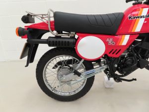 An invoice from Holmetech breaks down in detail the restoration with the cost of £9,680. Two genuine Kawasaki keys, a sales brochure and AE/AR workshop manual are present. With most AE’s abused and abandoned in fields, this bike is almost certainly the best AE50 on the planet, this is an unmissable opportunity and rarely offered. Perfect for the man cave!