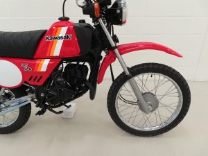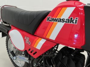 Registered in the UK on the 17th December 1982 with a frame number of 005044 this AE50-A1 variant is highly collectable. In the hands of just two keepers and having covered just 3,849 miles, this example was discovered by Phil Holme, owner of Holmetech Motorcycle Sales & Restorations and respected experts in the Kawasaki AR/AE model fraternity. A nut and bolt restoration involved Phil plundering his vast supply of NOS genuine parts to make this build as incredible and accurate as possible with just some of the new genuine parts to include mirrors, grips and throttle tube, cables, chain adjuster, Uni-Trak rocker arm bushes, inlet oil check-valve and ignition key which fits all lock barrels. This painstaking and meticulous build has been rewarded with the bike winning 1st prize in the 1980’s bike category at the Stafford Bike Show in 2023, a truly amazing accolade to win against the vast number of amazing machines in attendance.