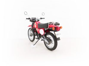 An affiliation of the AR models, the AE variant was the all-terrain styled version with the E denoting ‘Enduro’ as opposed to R for Roadrace. Finished in the original colour of Firecracker Red, the appearance of this successful and iconic motorcycle can only be described as stunning down to every nut, bolt and clip. This collectable AE50-A1 variant is from the models launch year in 1982 and the UK production frame number falls within the correct range for the A1. The Enduro styling of these early models are distinguished by unique decals and the paintwork to the tank and faring is flawless, the former having and ultra-rare clip holding the breather pipe. The black full cradle frame and racetrack proven Uni-Trak rear suspension are pristine. Industry leading Kawasaki AR50/80 AE50/80 UK Specialists, Holmetech of Chorley, are to be given full credit for this tremendous example whereby years of knowledge and painstaking sourcing of genuine NOS parts sets this build apart from the norm.