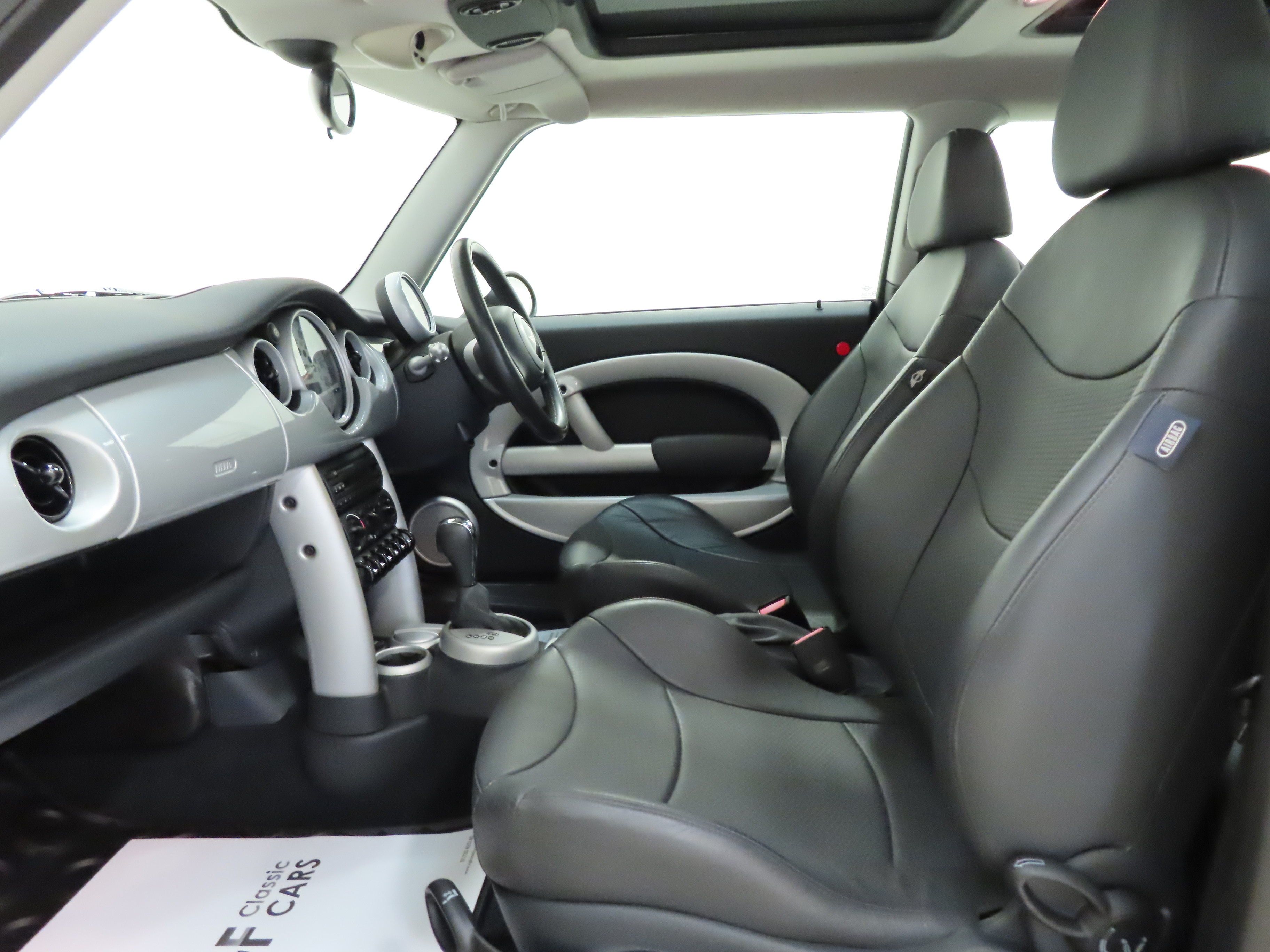 A very high specification example boasts the most expensive Chili Pack as well as many other factory options including the very rare electric panoramic glass sunroof. Having covered just 1,771 miles from new, the interior space is effectively as new. The expensive Profile black leather seats are perfect in every respect other than a few minor marks to the driver bolster. All trim and interior furnishings are pristine including the headlining and Brilliant Silver interior styling. The carpets and velour mats have been protected by the rare rubber gearmats from new. All switchgear and high use touch points such as the steering wheel and pedals have the pleasing lack of wear which is soon lost after a few thousand miles. Close scrutineers will notice nothing other than a small slit to the handbrake gaiter. All equipment operates seamlessly including the ice-cold factory optional air-conditioning and upgraded stereo system. The boot area is pristine with boot carpets and pin straight parcel shelf. An interior reminiscent of the all-new Mini launch in 2001!