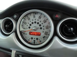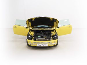 At the time of launch, the all new R50 Mini was available as the Mini One or the Mini Cooper which took its name from the iconic original Mini variant. This Mini Cooper has the more powerful 113bhp version of the 1598cc petrol engine. The front end lifts entirely including the headlights to reveal a clean engine bay still with factory labels, protective wax and strut top stampings clearly visible. The factory optional automatic transmission with switchable manual control operates perfectly having just been serviced with very expensive genuine BMW automatic transmission fluid.