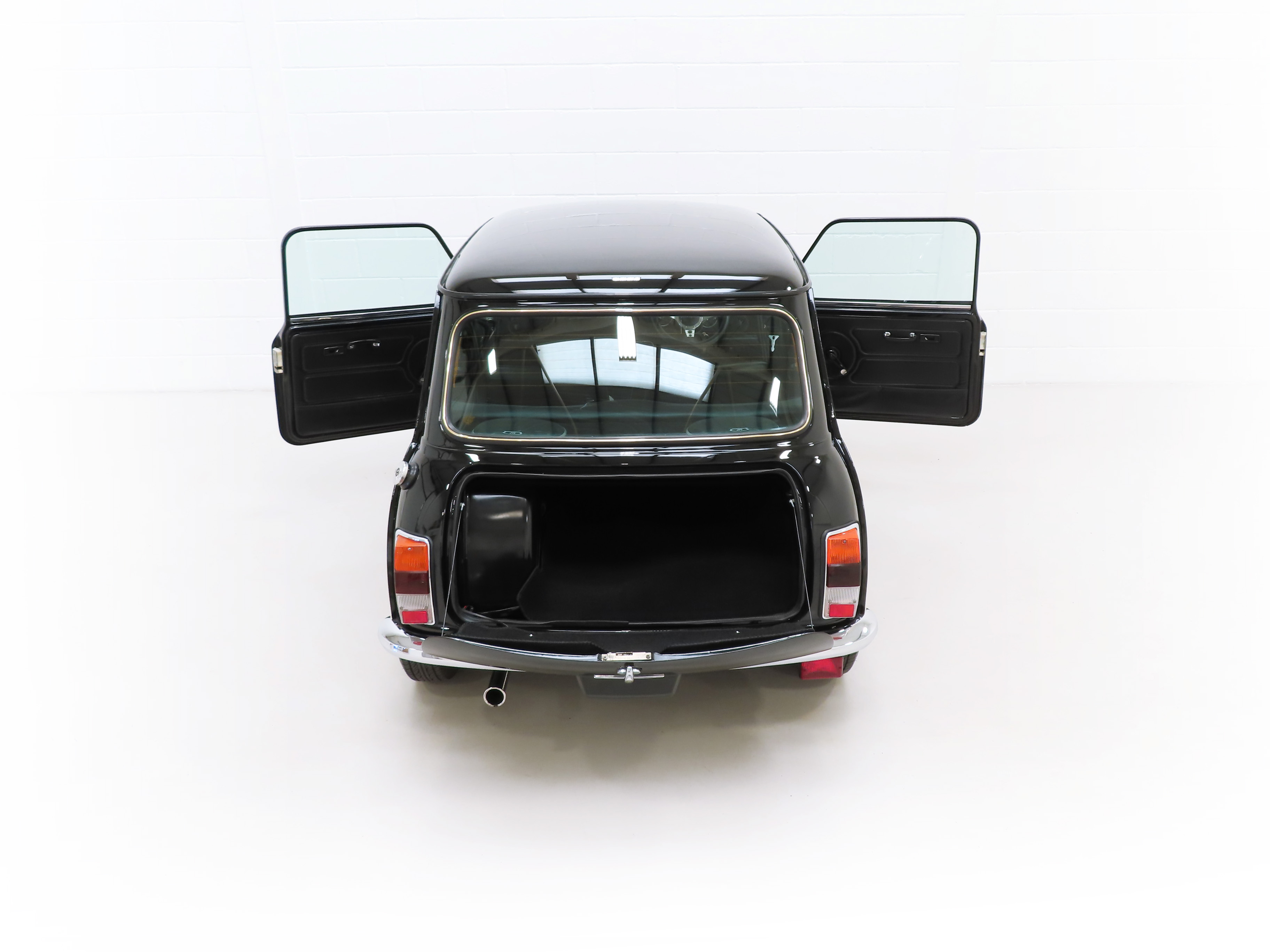 All steel unitary construction, Dunlop Denovo steel wheels with 1275 GT full wheel covers, independent cone rubber spring suspension, wind-down door windows, twin door mirrors, triple line side stripe with MINI 1275 GT model designation, hinged rear quarter windows, leather bound steering wheel, face-level fresh air vents, twin sun-visors with driver’s ticket flap and passenger vanity mirror, door slit pockets, rake adjustable front seats, front and rear ashtrays, revolution counter, electric washers, two-speed wipers, flick wipe, hazard warning lamps, courtesy light, electric heated rear window. Accessories; Stainless steel exhaust system, Sony Bluetooth stereo system with JVC 6×9 speakers, radio antenna, Motolita steering wheel, (original included), tailored carpet mats.