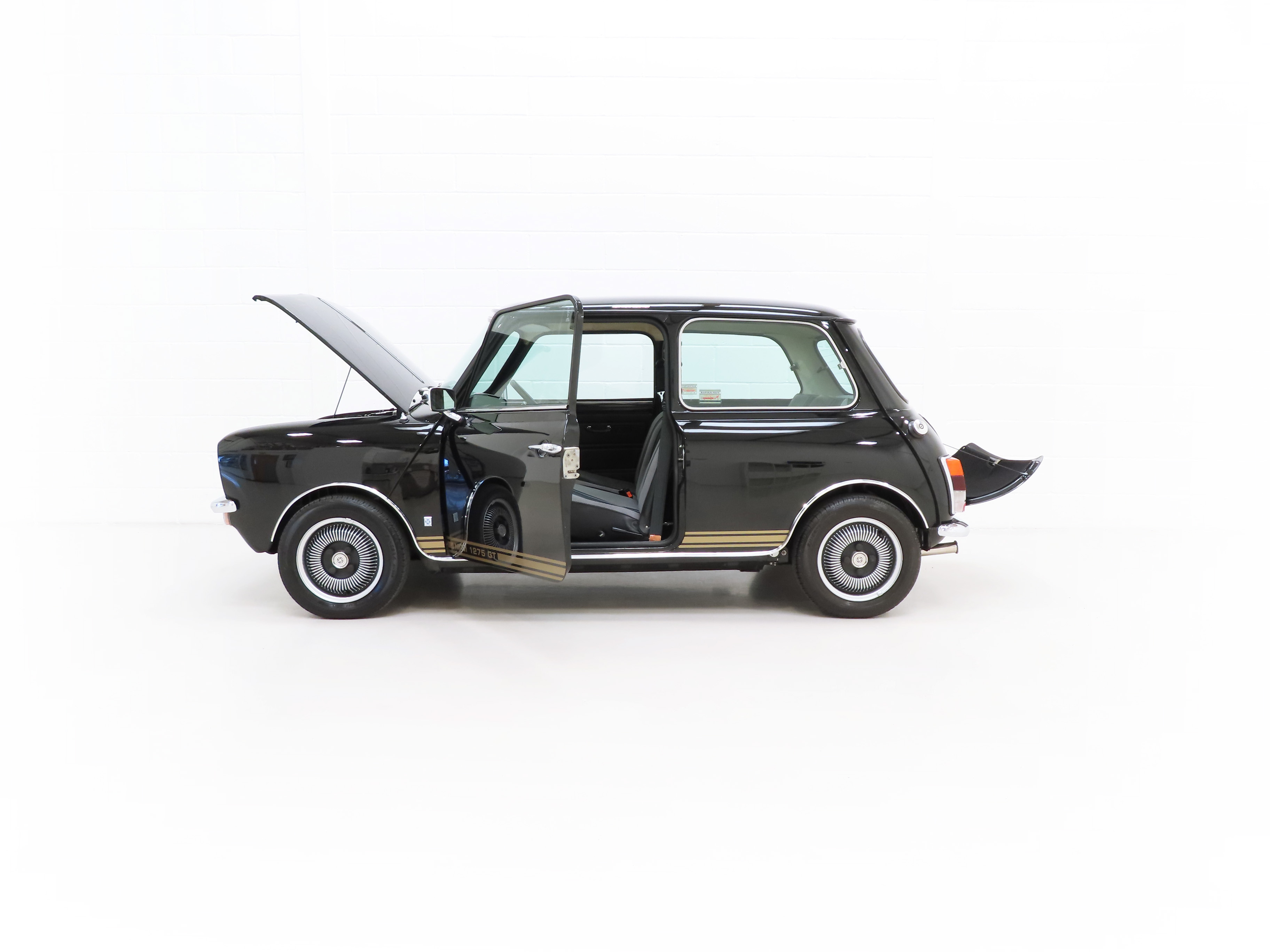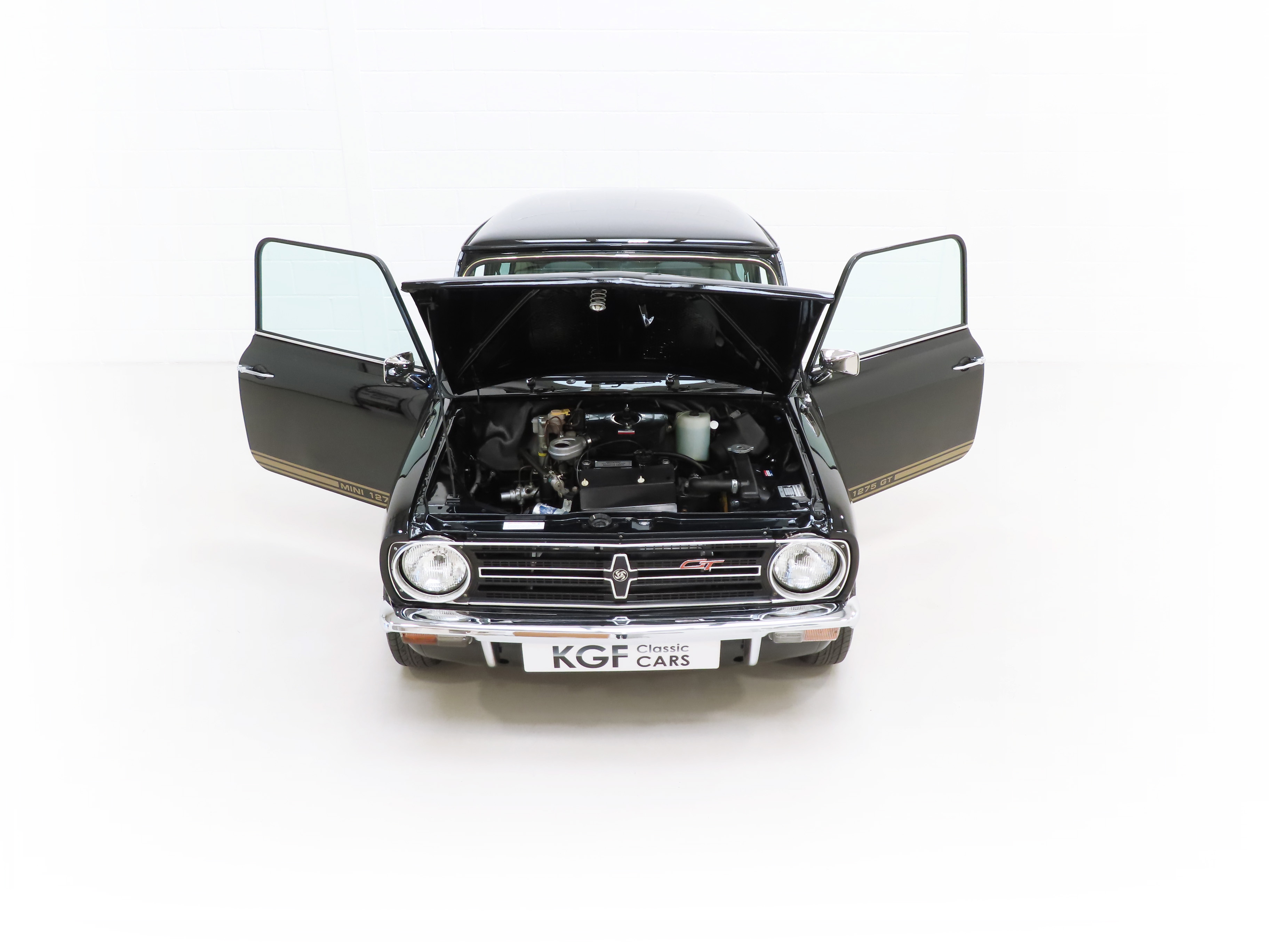 This flagship sporting Mini 1275 GT is one of the most desirable models in the iconic classic Mini history and this fully restored example is sensational. Finished in the original rare colour of Black Tulip, (Code KMA), the gleaming paintwork boasts a stunning deep shine. The bodywork is in amazing condition and all trim, brightwork and unique triple line side stripe with MINI 1275 GT model designation looks superb. The underside is stunning and allows clear inspection of the excellent structural integrity. The once controversial Clubman front end cars are now iconic, none more so than the legendary 1275 GT. A truly stunning example.