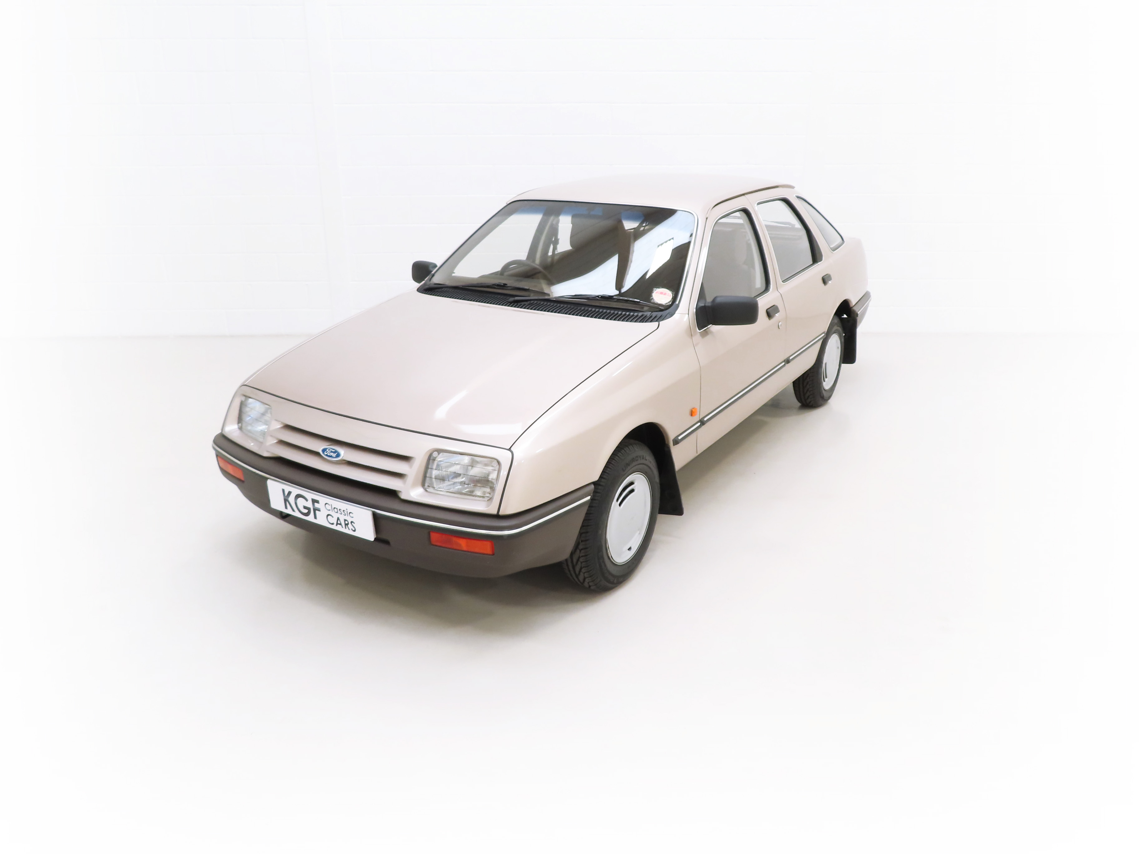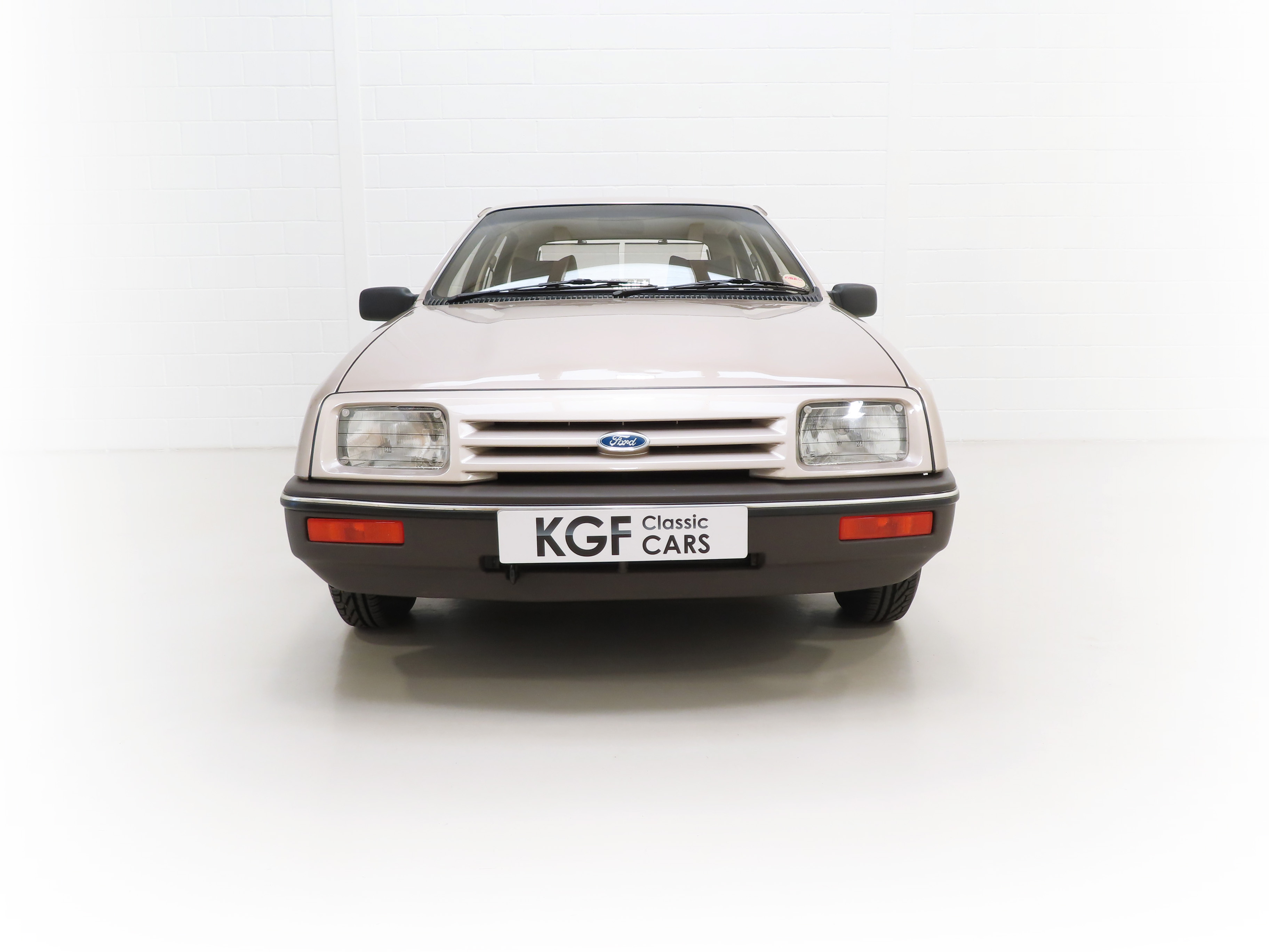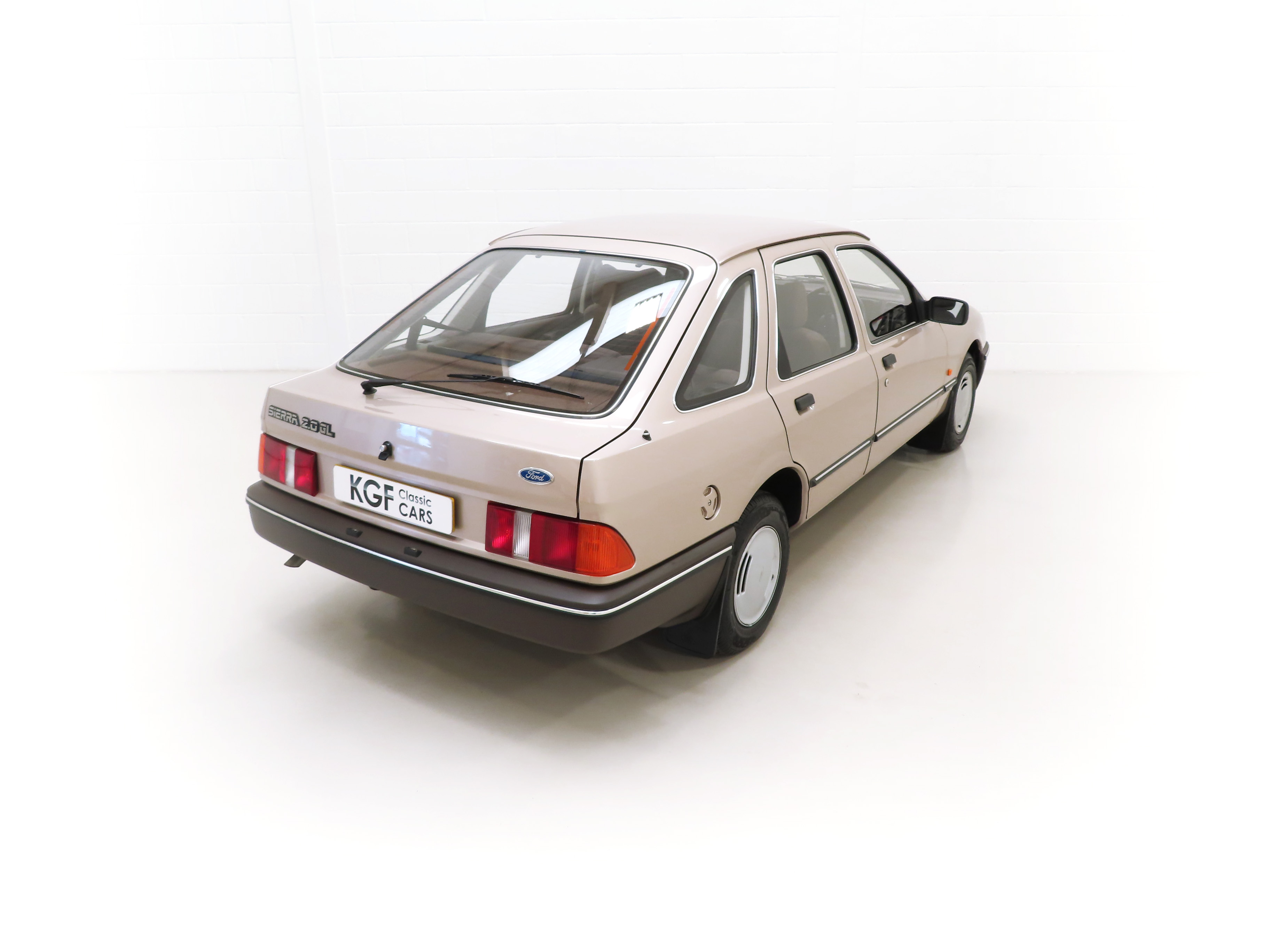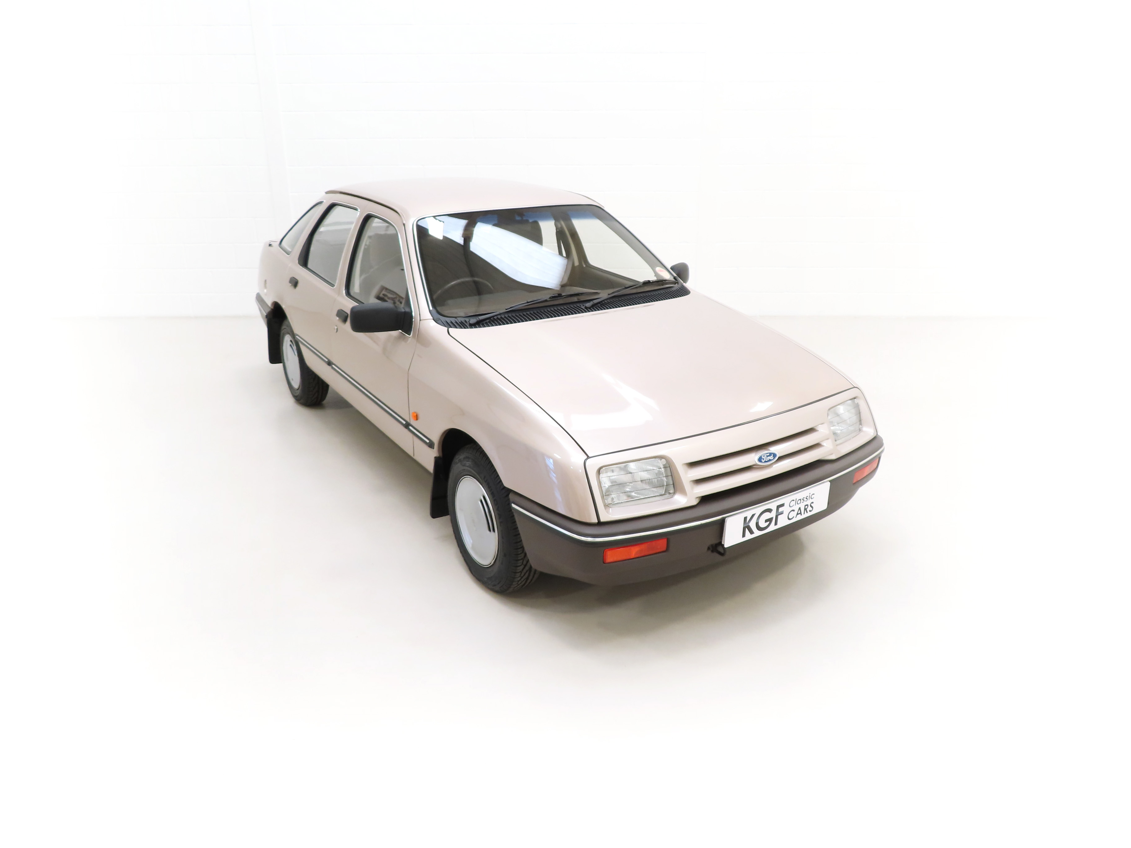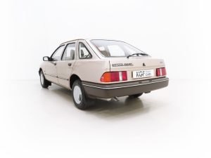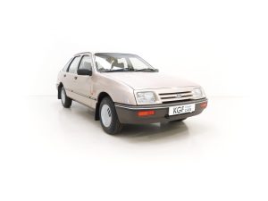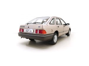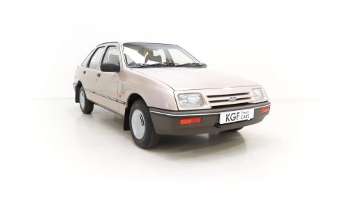 This exceptional and early Mk1 Ford Sierra 2.0 GL boasts impressive credentials of just two family owners and 27,013 miles from new. Finished in factory cost optional Metallic Champagne Gold, (Code O 3), the original finish is quite incredible with a rich and uniform shine. All factory panels remain fitted and the underside is in perfect structural order thanks to garage storage from new. A few markings to the excellent finish are barely worthy of mention such as some touched in chips to the bonnet and boot lid edge. All glass and rubbers are perfect factory fitment as are the light clusters and Lucas headlights with have been protected from new with optional Smoothy Light Guards. Original badges and model designation are in excellent condition and the supplying Ford Main Dealer number plates and tax disc holder remain with even the very first 1983 disc still in situ! One feature of this desirable early car is the absence of the D-Pillar Aerostrakes that were later fitted to the Sierra range in order improve crosswind stability. This car is an absolute credit to the two family custodians from new.