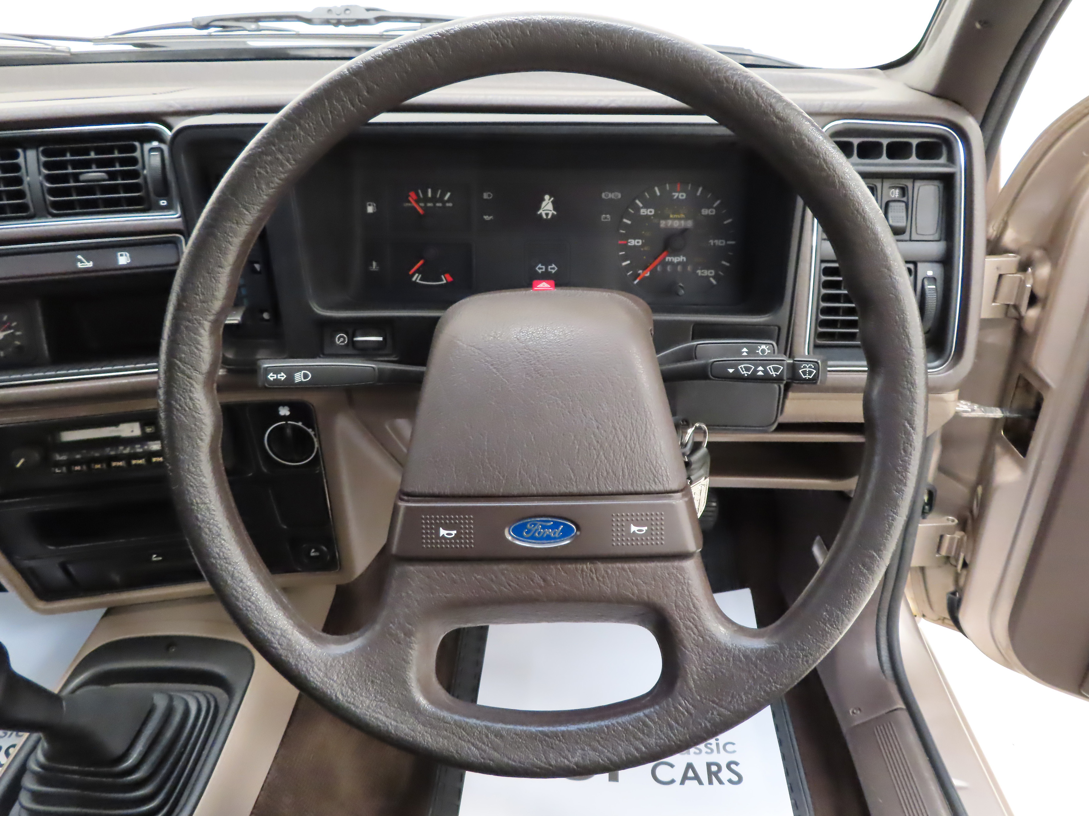 Manufactured in June 1983 and supplied new on the 1st August by Ford Main Dealer, Busseys of Norwich to Mr Dennis Vaughan. The car has had just two registered keepers in total with ownership passing to his son, Allen Vaughan, of same address in 2019. The history file is amazing with a huge file of paperwork spanning the entire life of the car and starting with the original purchase documentation. The vehicle order form and sales invoice are made out to the first owner and confirm the price paid of £6,222.89 less part exchange allowance of £1,922.89 for his 1979 Ford Cortina MK4 2.0S, clearly a Ford fan! The incredible history file includes the PDI checklist from the supplying dealer and receipts for accessories such as the headlamp guards and rear blinds. Even the cold start guide, recall letters and tax discs dating back to the very first issue in 1983 have been kept. The folder continues with a huge file of service receipts and invoices dating back to the first service in 1984 as well as comprehensive MOT records to warrant the 27,013 miles. All handbooks, guides, service book and spare keys are present. In April 2024 a major service was carried out with all fluids changed as well as a cambelt and water pump replacement and full brake overhaul. The car is in prime working order to make sure it drives as good as it looks and is ready for the show circuit!