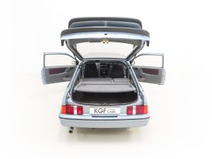 Correct and undamaged factory fitted 15 X 7 inch aluminium alloy (ATS) wheels with immaculate locking centre discs are shod in period Dunlop SP Sport D40 205/50 R15 tyres in excellent condition. The spare is the original and never used Dunlop SP Sport D40 205/50 VR15 tyre with Ford weights. Four wheel disc brakes with ABS and a hydraulic booster stop the car with confidence.