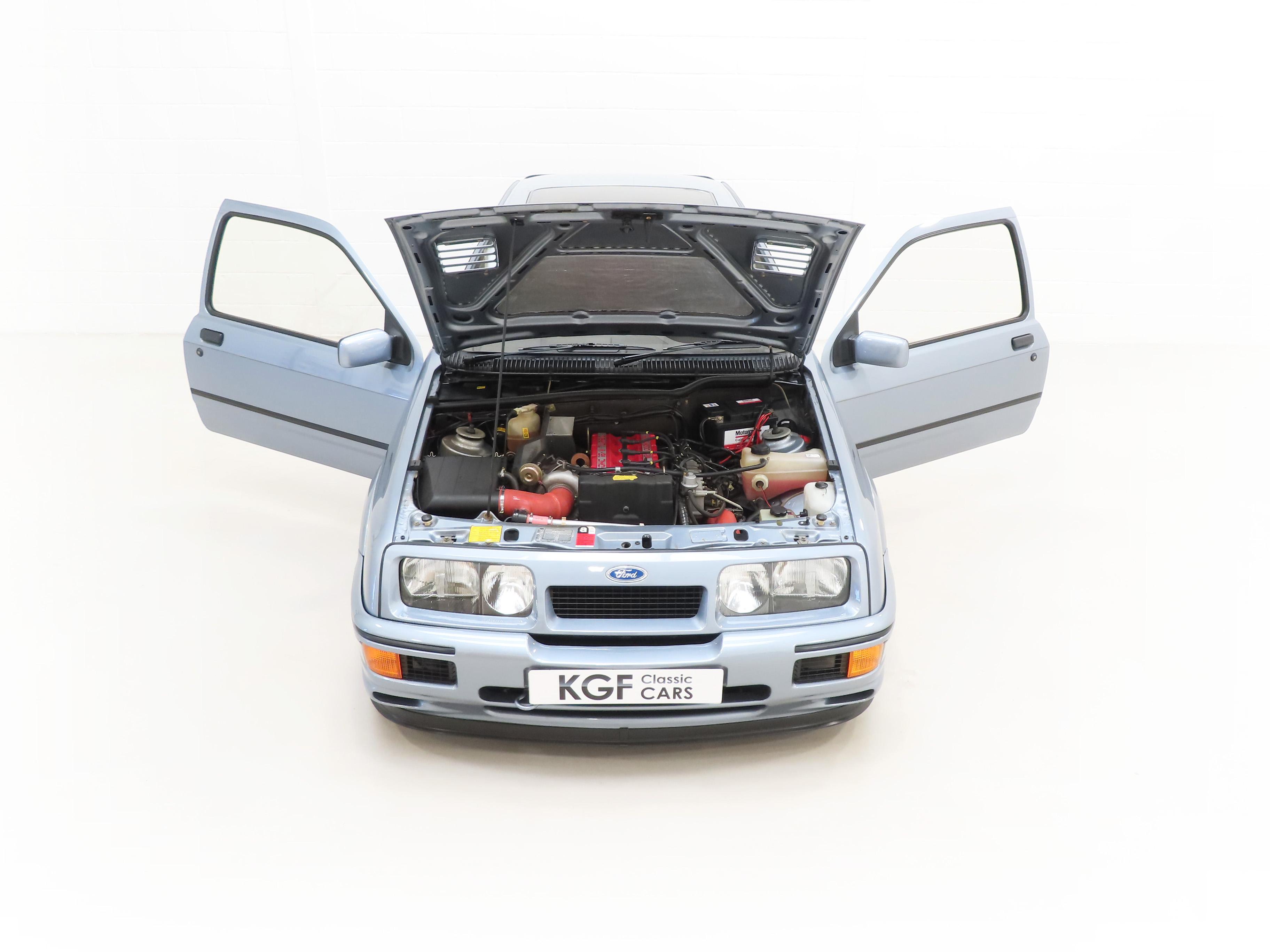 The new vehicle sales invoice reveals a price paid of £20,249.55 with a subsequent invoice for £332.48 for a Ford remote alarm, (now removed and replaced by a Thatcham Category 1 Toad alarm in 2011). Subsequently and without any doubt, Mr McIntosh was a fastidious owner retaining every document from Ford recall letters to regular service invoices and MOT certificates. This record keeping even extends to neatly filing every insurance cover note, tax disc and SORN letter. The history file not only confirms his care and upkeep for this pampered car but also his dedication for the RS brand by keeping annual RS Owner Club Membership letters and reaching milestone certificates and memorabilia for continual membership. Not one for public displays or shows, the vehicle was rarely seen out of his property but is obviously known and registered with the RS Owners Club. Such was his protection for the vehicle that when a house renovation commenced in 2022 and in fear of it being seen or worst still, damaged, he placed the car in secure temperature controlled storage locally. With the ongoing rise in values and public interest combined with poor health the very difficult decision was made to sell the vehicle and upon purchasing, KGF Classic Cars embarked on the Specialist Cosworth services of Harvey Gibbs at Supreme Car Services. A major service and cambelt change along with all fluids have been changed making the car A1 mechanically and ready for immediate enjoyment should the next lucky owner wish.