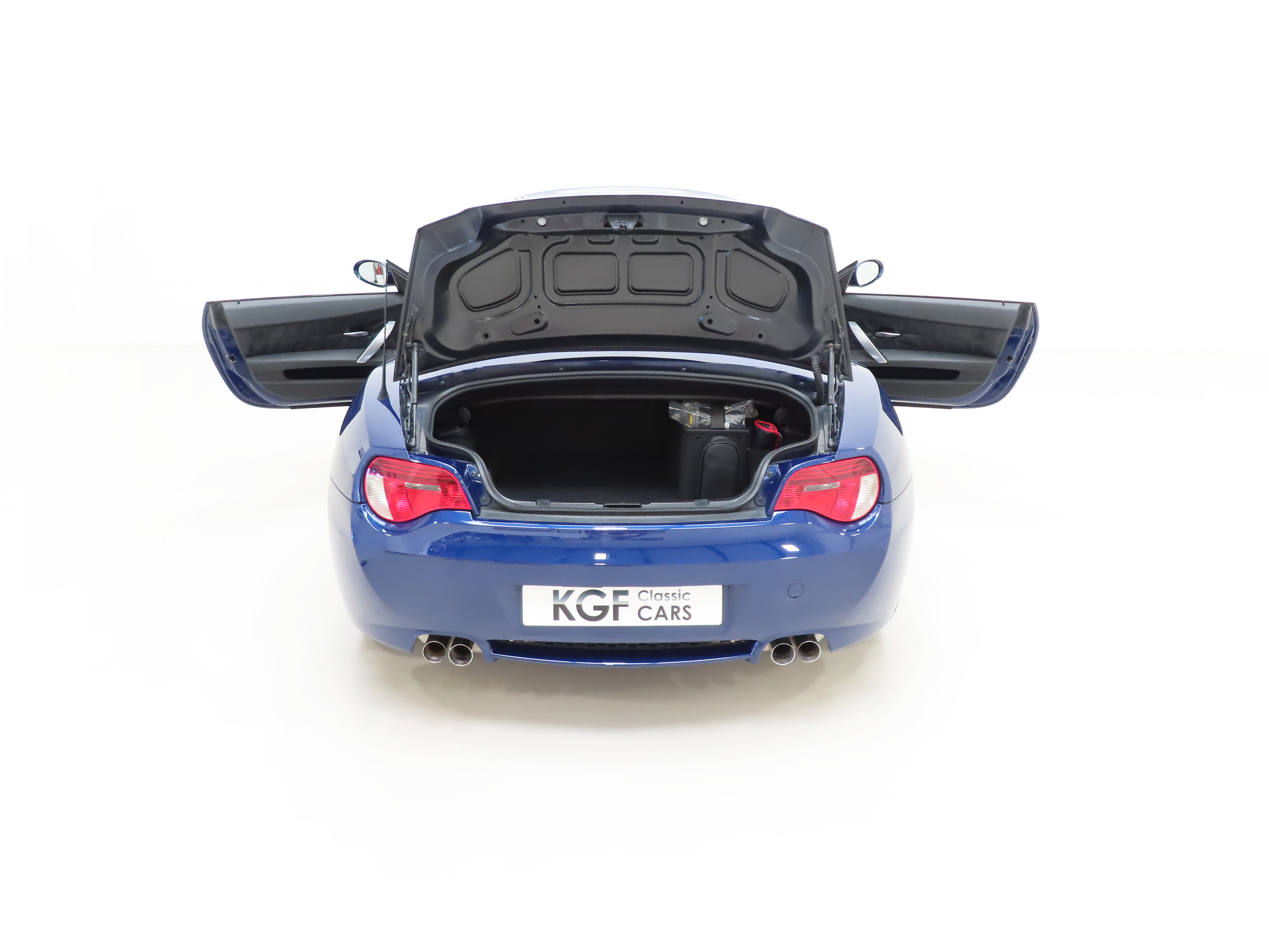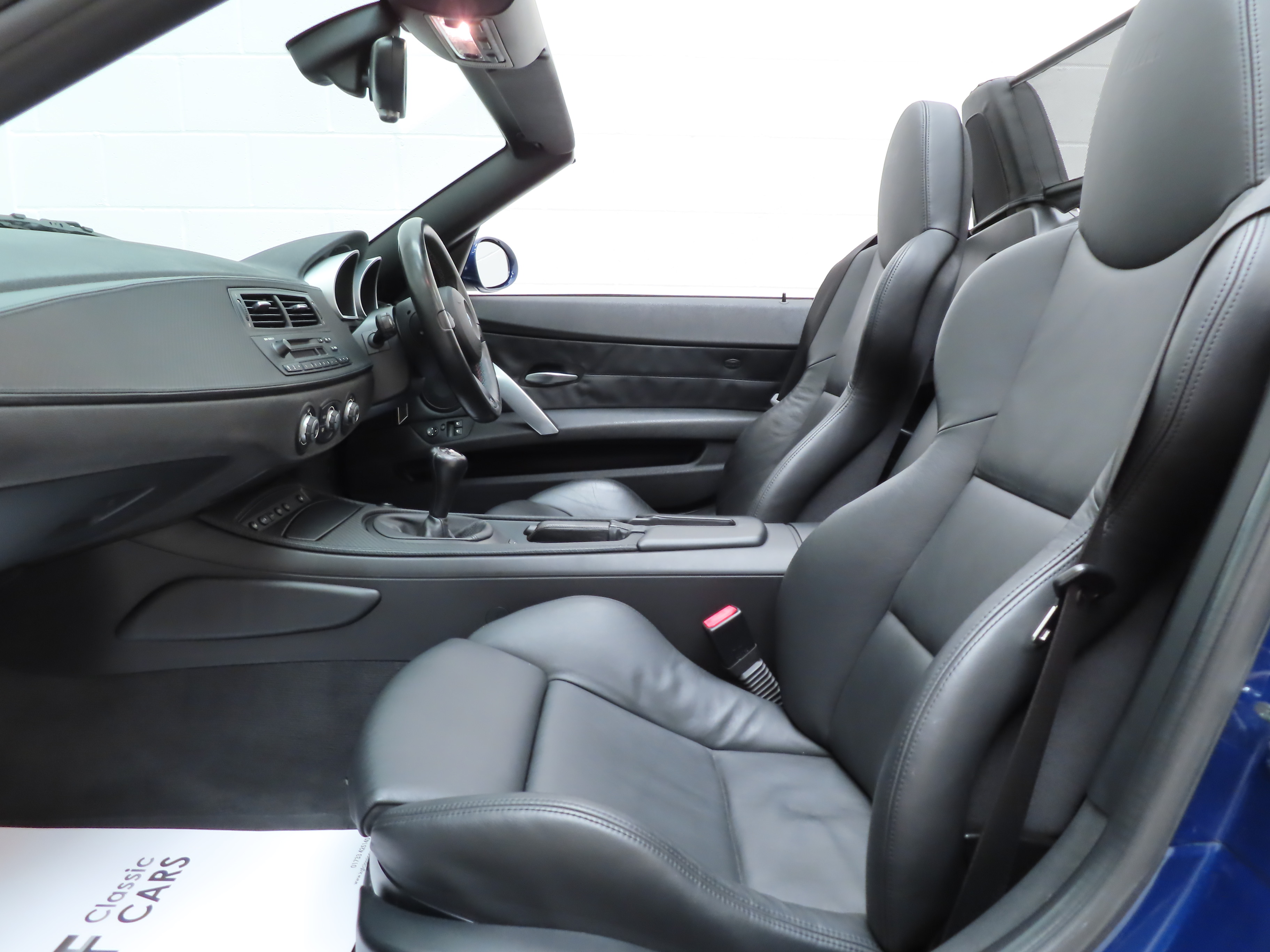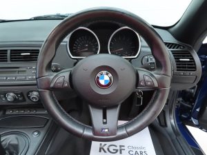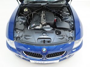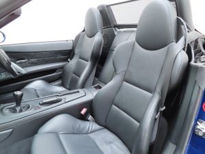 Full Black Nappa Leather, (Code LSSW), was specified as a factory optional extra with additional seat heating and electronic adjustment with driver’s memory function. The interior space is excellent throughout with the leather is fine condition and bolsters firm and shapely. Original BMW over mats are still fitted and the BMW M signature twin-blue and red styling cues throughout underline this car performance pedigree. The fascia and centre console are swathed in perfect Black Carbon-structure leather and all interior controls and functions operate seamlessly including the ice-cold air conditioning. The clean boot area houses the BMW air compressor and unused tyre sealant and spare oil case. A superb Z4M interior throughout.