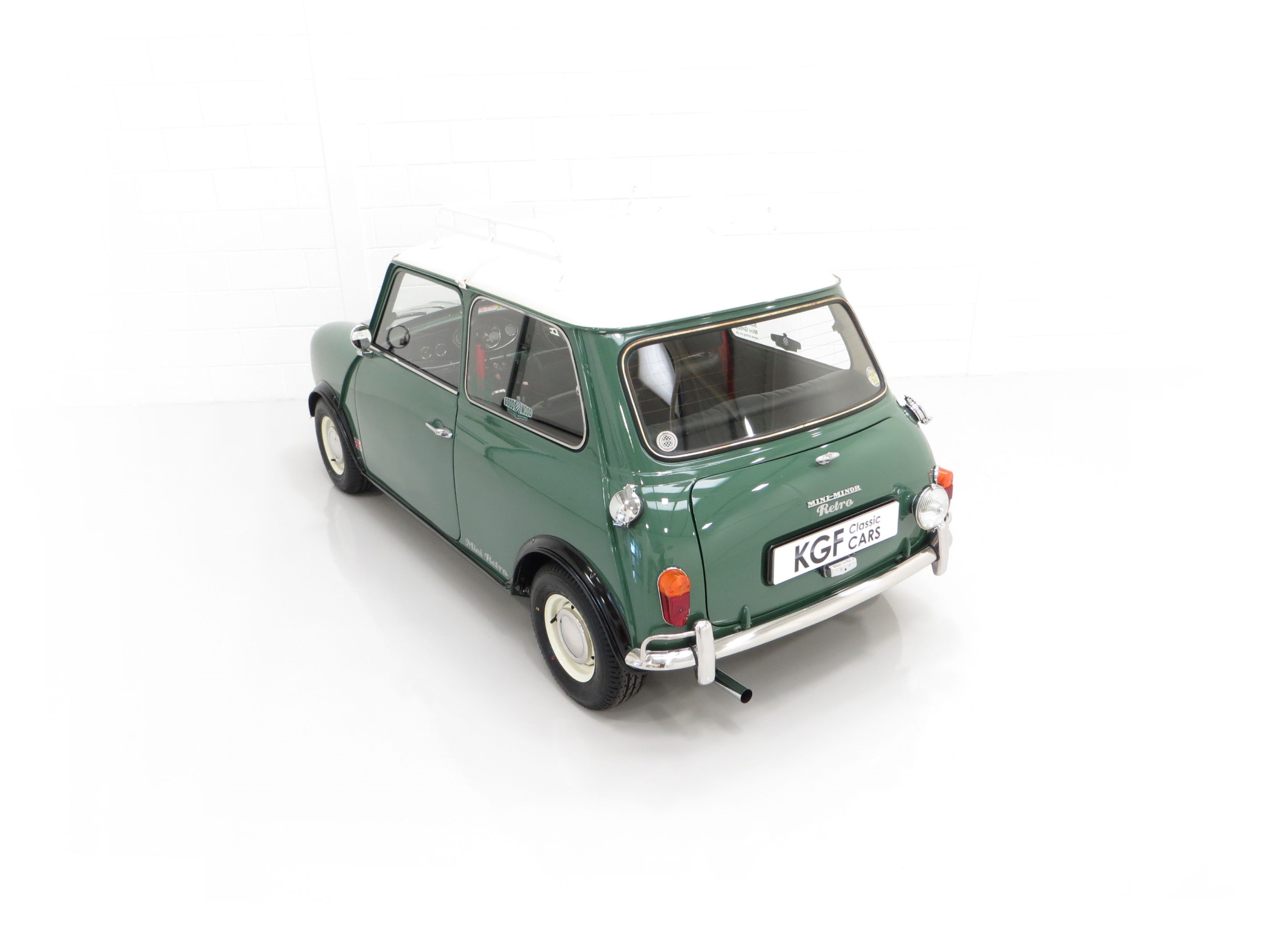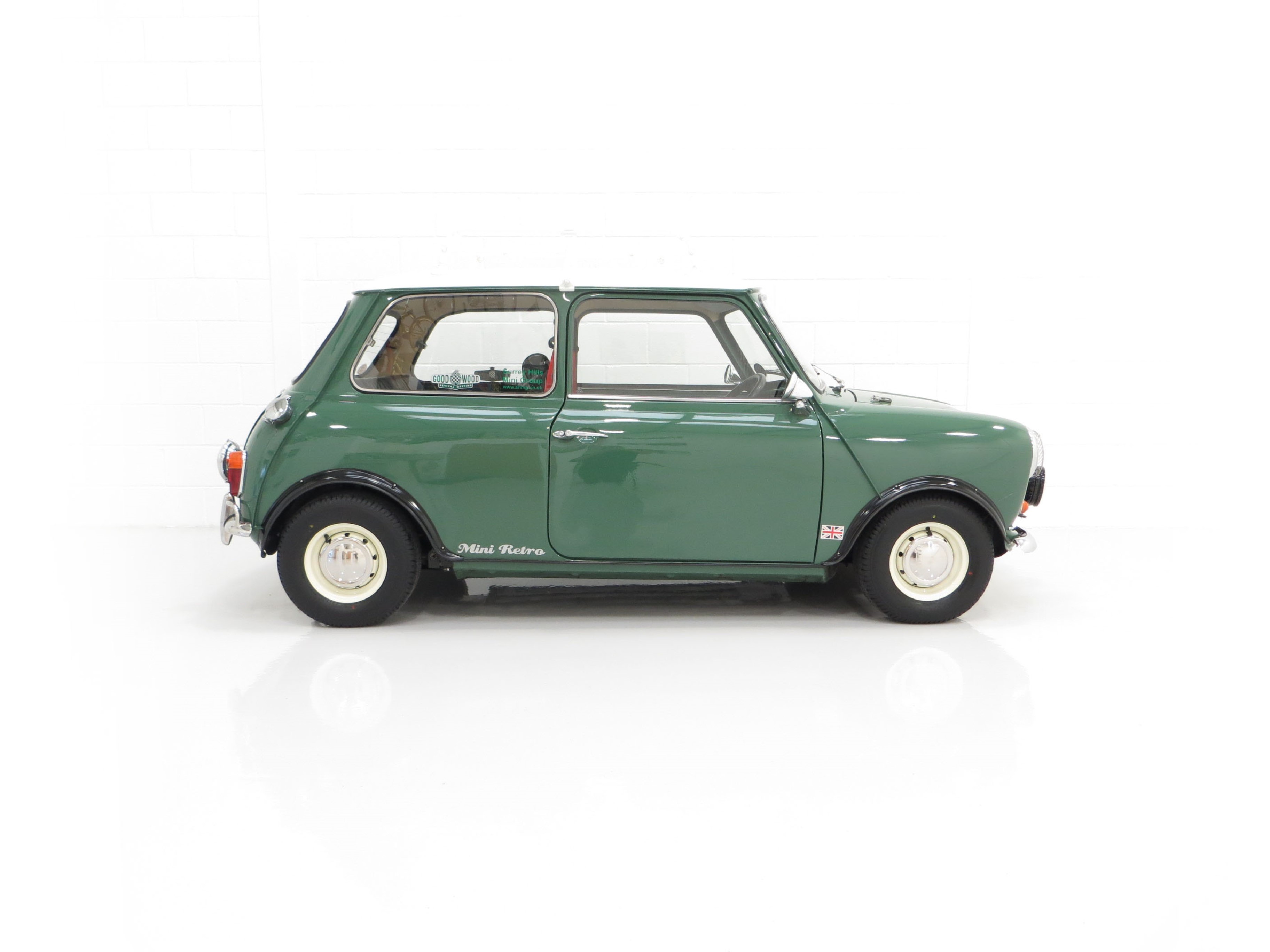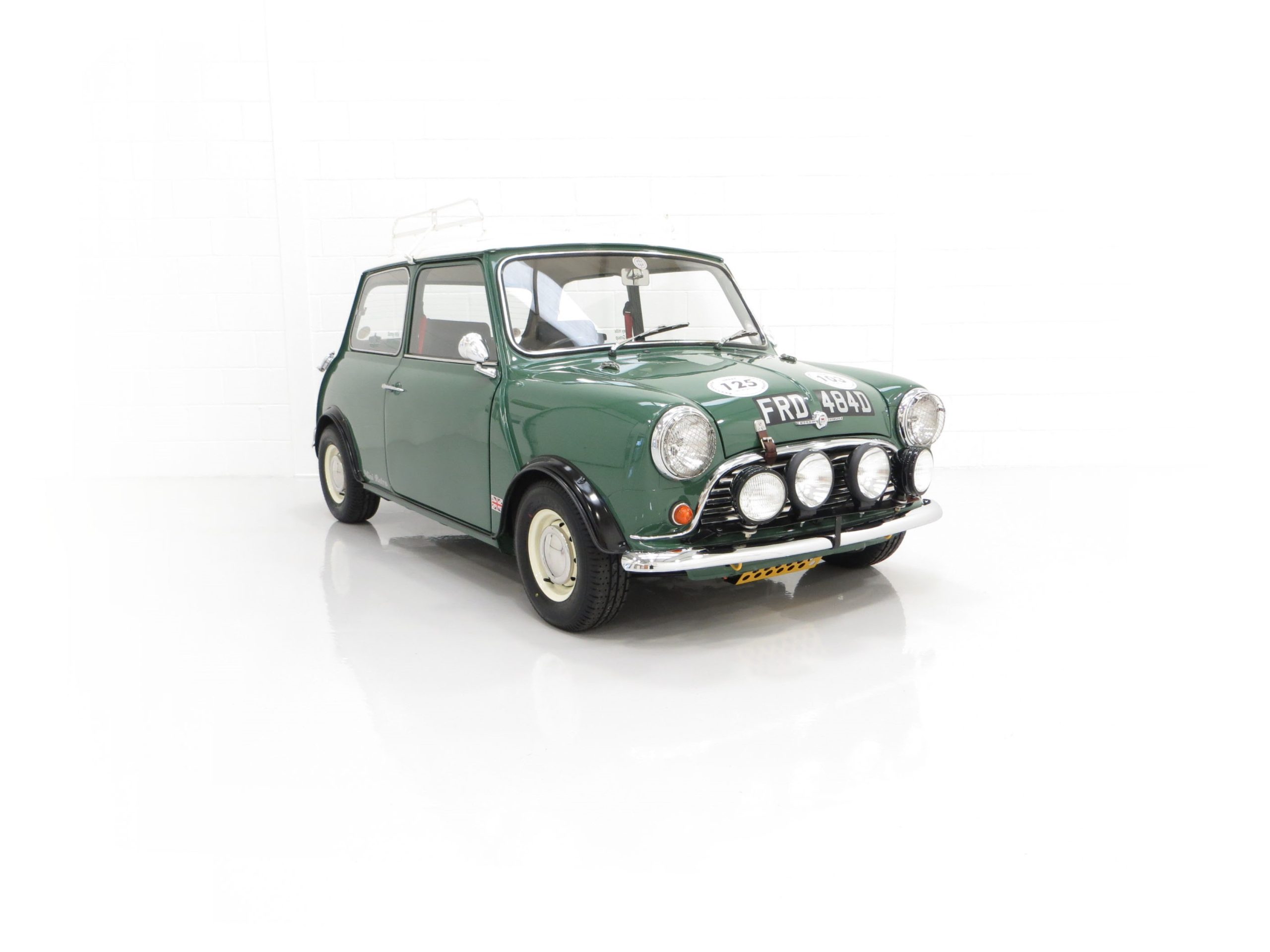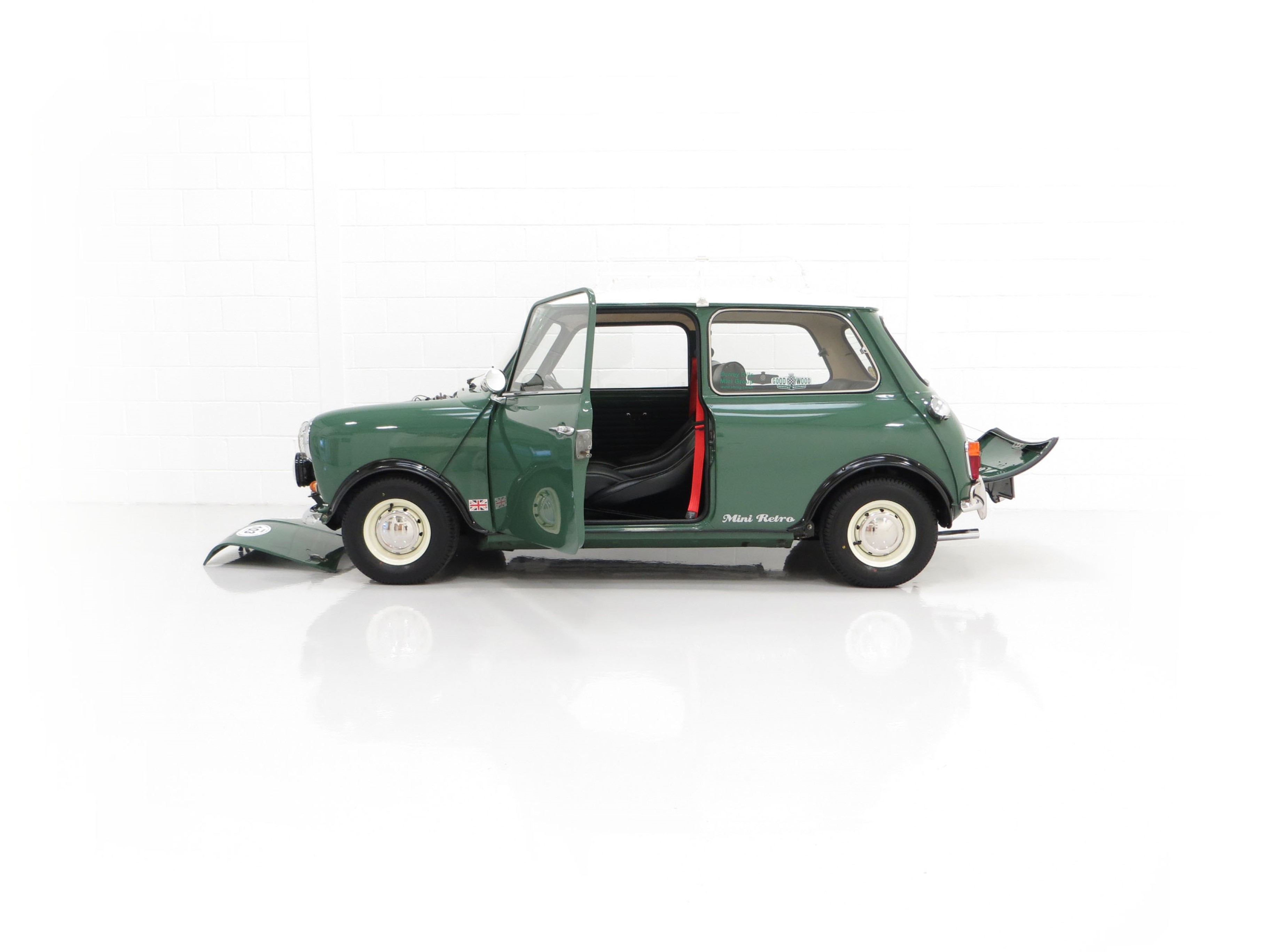 Built at eye-watering cost and fully documented and photographed, the vision behind this unique Cooper S Recreation was quite clear, regardless of cost the car had to look and drive incredibly. Finished in Almond Green with Old English White Roof, the classic Cooper look is complimented with period accessories and rally car styling to include the purposeful working front lamps, bonnet numberplate siting, reversing lamp and twin working fuel tanks. The paintwork boasts and beautiful uniform shine with excellent panel gaps to further affirm the very high standard to which this build has been executed. This 1966 Morris Mini Minor has taken on a new lease of life and is simply brilliant.