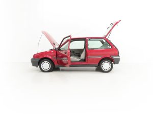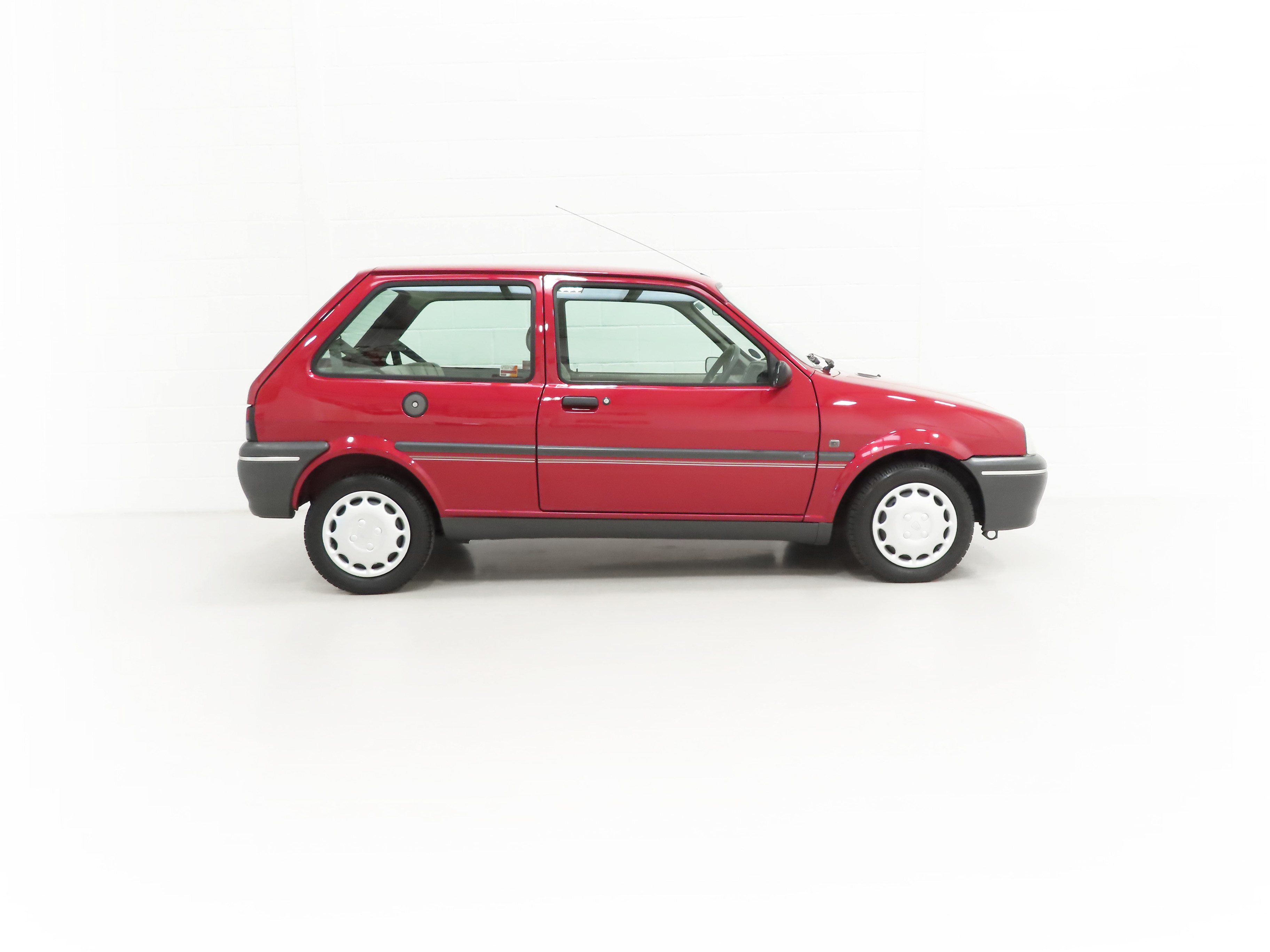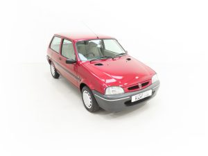 This delightful special edition Rover 100 Ascot has covered a miniscule 12,179 miles from new and remained in family ownership until 2022. Finished in factory optional Nightfire Red Pearlescent, (Code CAQ), the original paintwork gleams and all factory panels are straight with uniform gaps. There is none whatsoever of the common bodywork issues and corrosion found on most examples and even the pristine wheel arches still have factory spot weld dimples. The underside is structurally perfect with the light factory wax still visible. Close scrutiny reveals nothing other than a few very light dings barely worthy of mention. The unmolested appeal of this charming baby Rover is further emphasised with standard trim sections and Ascot badges all present and correct. All glass and even the headlights are etched with the registration number. Supplying dealer number plates, rear screen sticker and tax discs holder remain fitted. Hugely superior in condition to the usual offerings and one for continued preservation, enjoyment and retro outings!