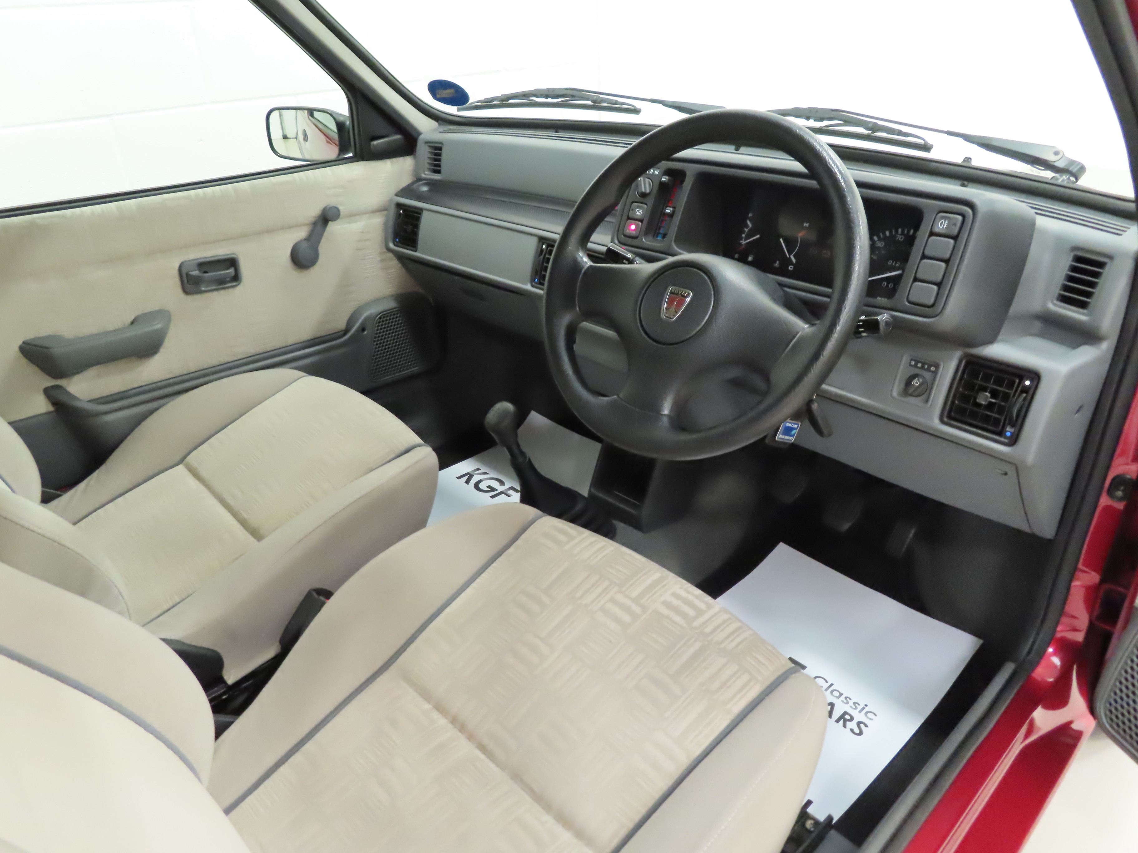 The special Ascot interior of this remarkable example is in wonderful condition and exactly as Rover intended. The plush upholstery in Oyster, (Code RPI), is spotlessly clean and unworn, as are the matching door cards. The seats display firm bolsters and tight coverings commensurate with the ultra-low mileage. The headlining and soft grey carpeting are immaculate, the latter having been protected from new by genuine Metro rubber over mats. The fascia is perfect and all switchgear is fully functional and retains the showroom fresh feel. The standard Rover Model R660 radio cassette and the factory fitted remote alarm system remain functional operating seamlessly. A pristine boot area completes this very special interior, a rare find in a beautiful preserved state.