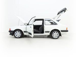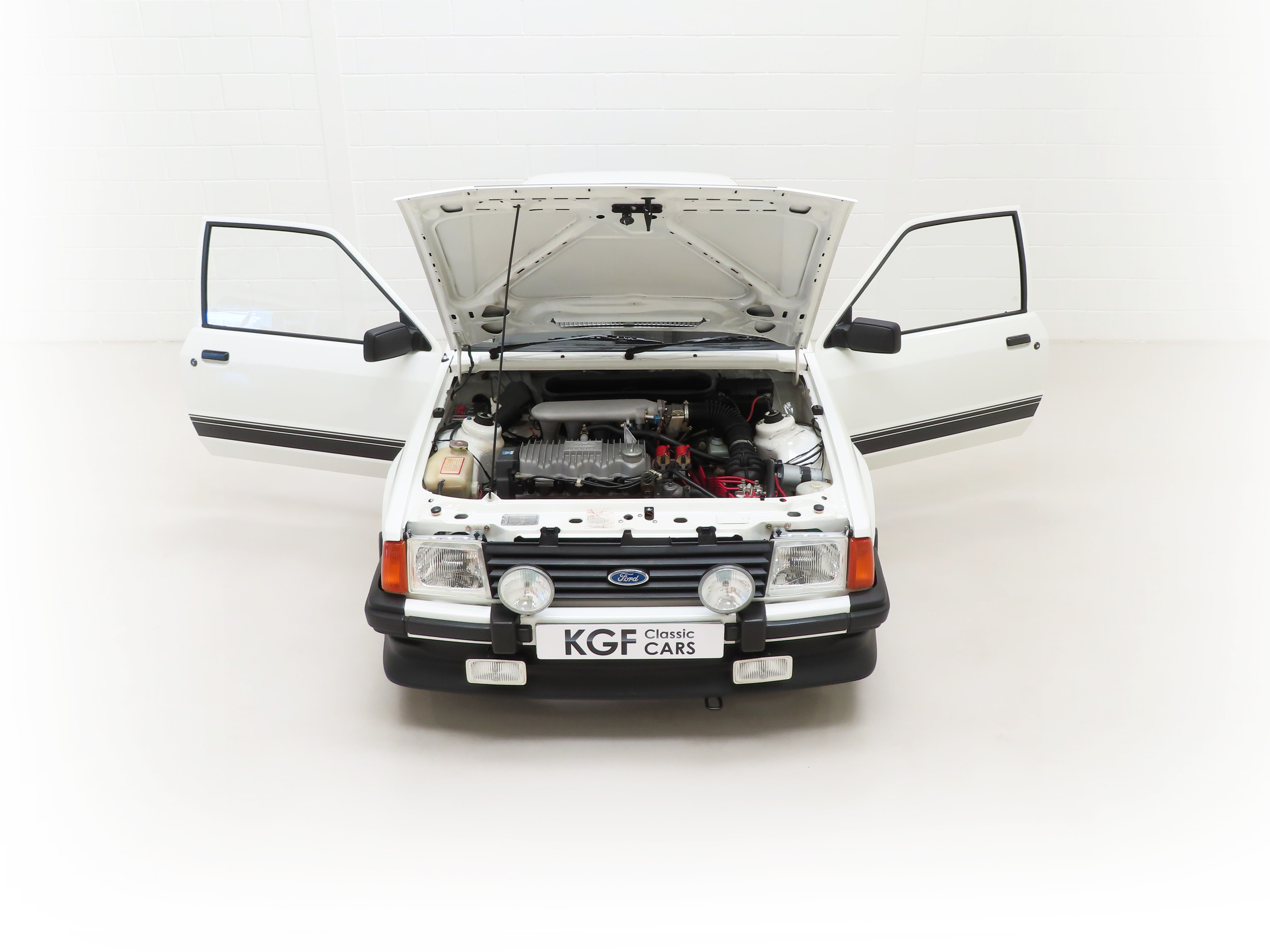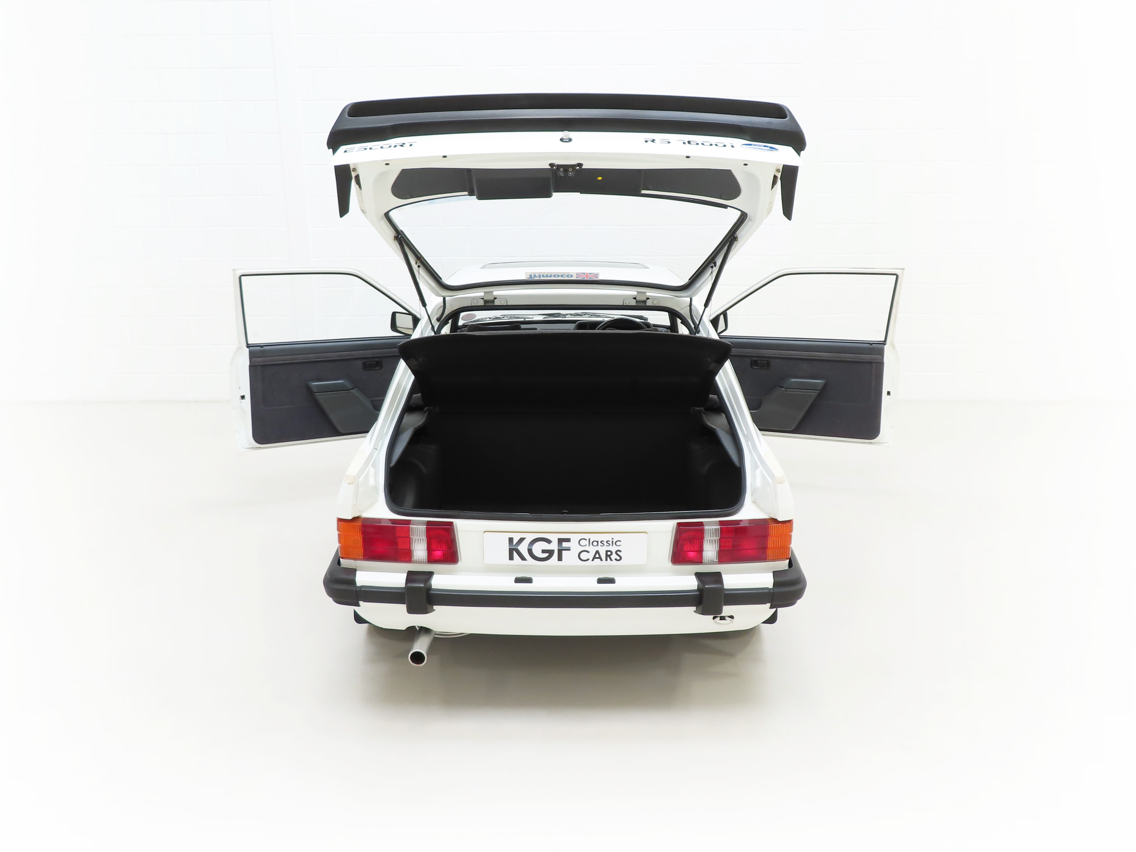 Introduced in September 1981, this stunning example was built in April 1983 and is one of 2,600 UK examples and just one of 530 in Diamond White. (Source: RS Owners Club). Registered new on the 26th May 1983 by the Ford Motor Co Ltd in Brentwood Essex, it had one private owner, Mr Rose until September 1984 when Mr Robbert Goddard purchased it. Mr Goddard paid £6,700 plus £100 for the warranty Care Car Plan, (the same price the car cost new over a year earlier!), from Tower Garage (Stokenchurch) Ltd. Incredibly, the Goddard family remained the cars custodians until 2019 after Geoff Goddard inherited the vehicle from his father in 2012. Mr Goddard seniors ownership is beautifully detailed by his son in writing explaining fully his life with the car during their 35 years of ownership. The car has since been owned by RS Owners enthusiasts including Mr Gary Ball who had five White performance Escorts from the Mk1 Twin Cam to the mighty Mk5 RS Cosworth, all making the front cover of Classic & Sports Car in December 2020, a copy of which is included in the history file. Many historic invoices, emails between owners and a full complement of handbooks are contained within the blue Trimoco A5 folder. This example will please the most discerning collector wanting one of the very best examples in existence.