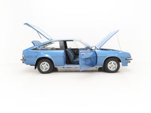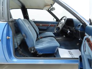 A functional and retro Vauxhall interior is certain to amaze fans of the Griffin badged cars. The original ribbed velour interior trim in Blue, (Code NN375), is in excellent order with only a neat seam repair to the driver’s seat base. The coverings to the matching door cards show no shrinkage and the wood veneer inserts are as new. The matching blue dashboard and switchgear are perfect and all functions operate flawlessly including the Phillips 880 push button stereo cassette. The headlining is fully intact and the gear stick has some tiny chips to the gloss black finish. All gauges in the ‘six pod’ dash exclusive to the GLS Coupe and Sports Hatch models show healthy readouts. The boot area is very clean with jack present and some minor marking to the side trim. A wonderfully preserved classic Vauxhall interior.