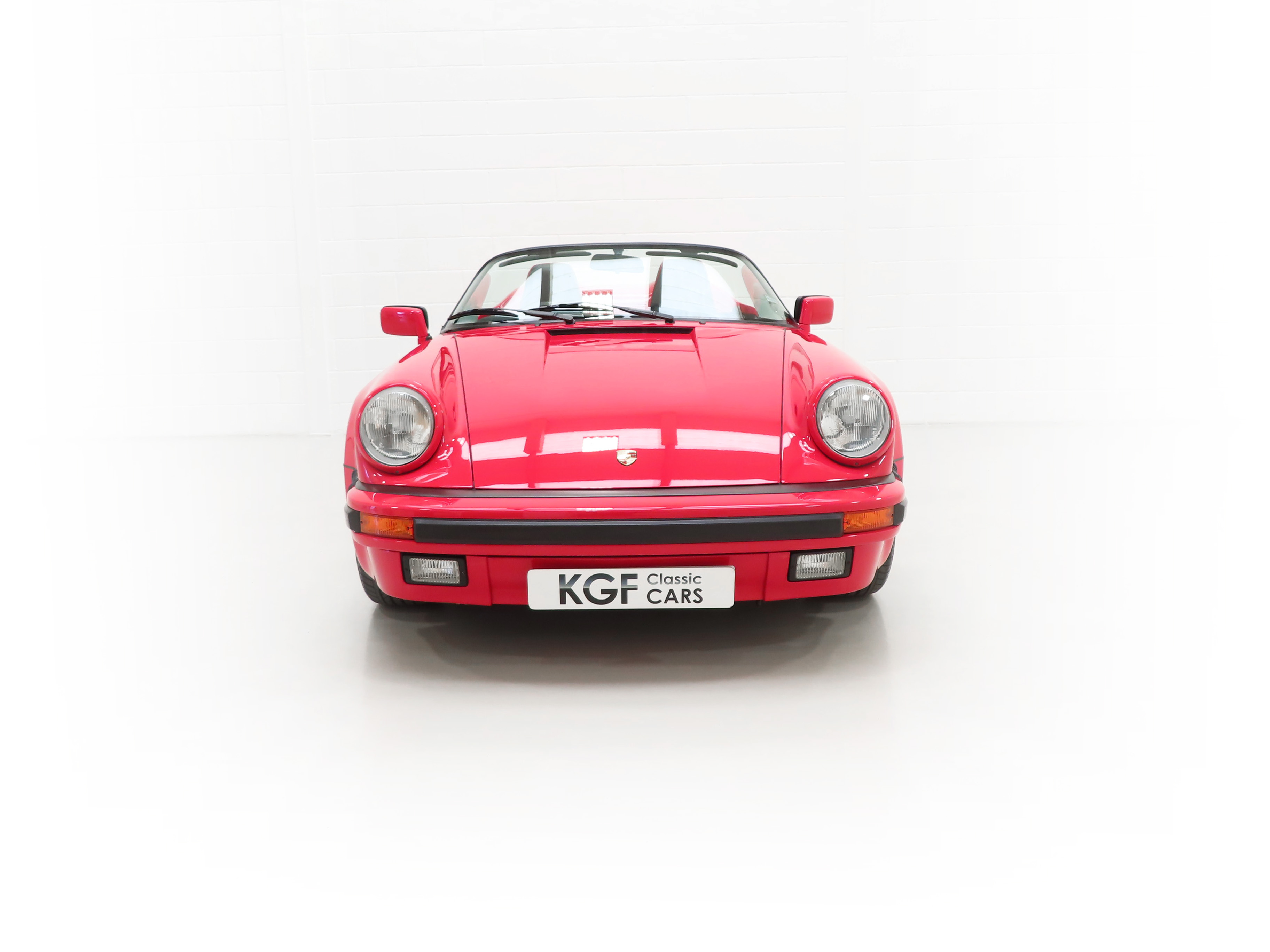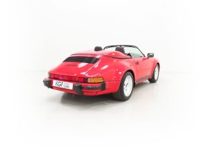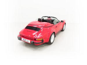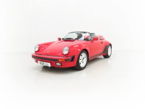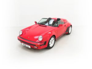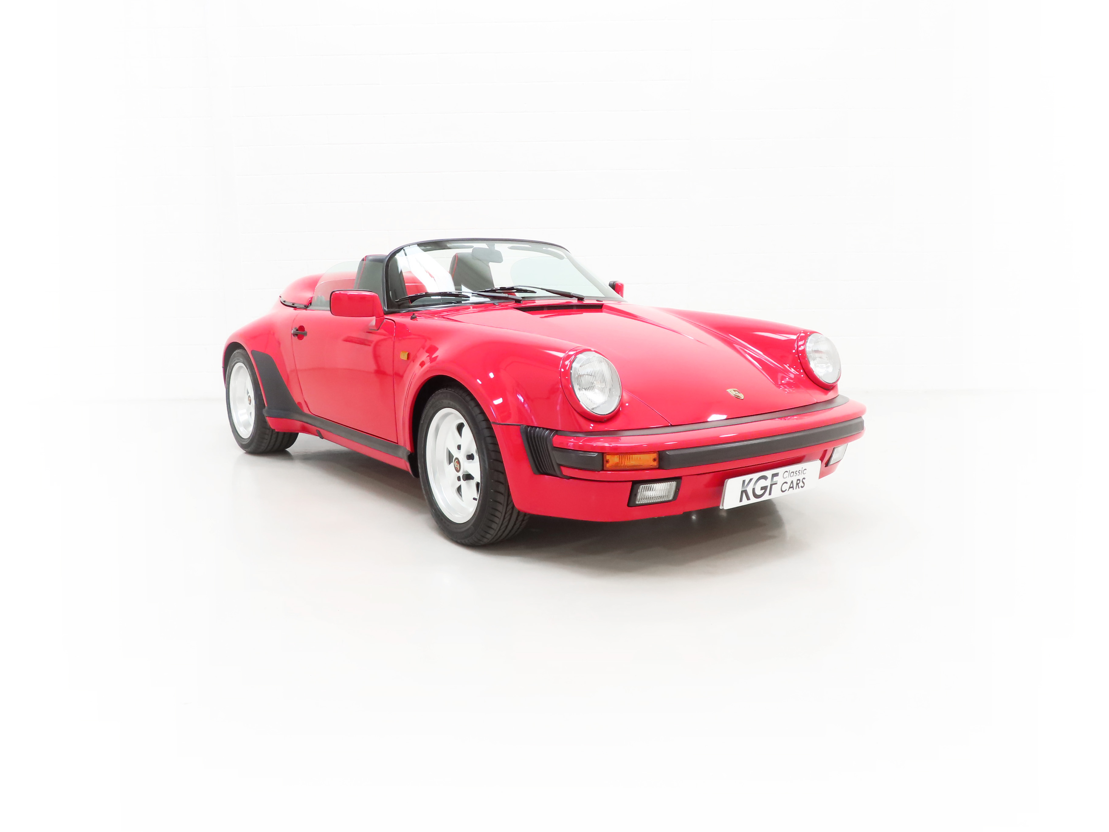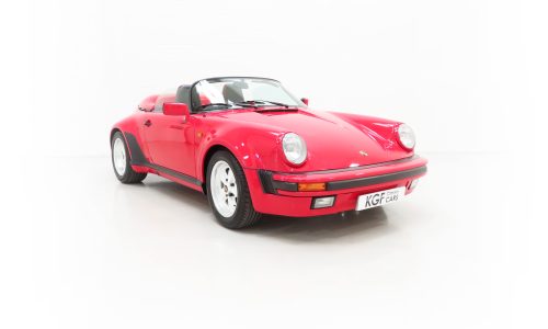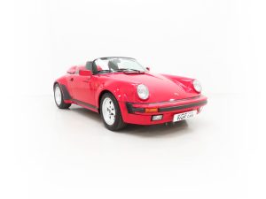 Supplied new by Merlin Chesterfield Porsche on the 1st September 1989 to Mr Taylor, this is one of just 2,103 Speedsters produced of which 129 were RHD and only 64 were to UK `C16′ specification. This prime collector example has covered just 4,178 documented miles with 13 dealer visits. The last being in July 2024 to Porsche Centre Cambridge at 4,168 miles for a major service to include brake fluid change with an accompanying invoice for £3331,57. Such was the appeal of this rare car, the dealer contacted the owner while at the facility to ask if it could be included in their Destination Porsche site launch along with five other exclusive high value Porsche models. As the star attraction the service Manager of 32 years wrote to the owner after the event stating that this is ‘one of the best examples he has ever come across,’ the letter is included in the history file. Last sold in 2016 as an Approved Porsche by Porsche Centre Leeds and supplied with all handbooks, manuals, Speedster supplements and spare keys, this example will appeal to the most discerning Porsche collector.