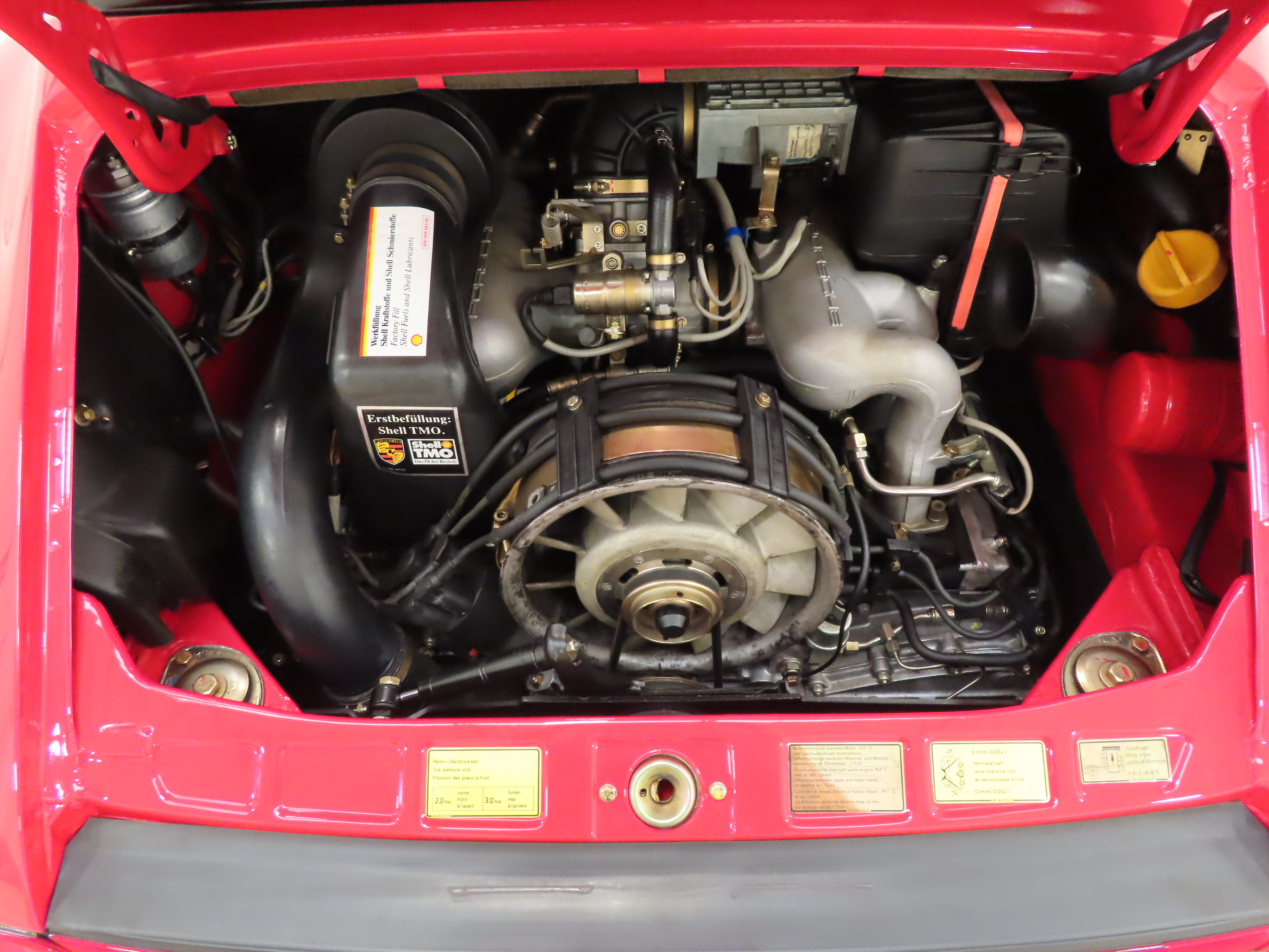 A matching numbers all-alloy, air-cooled, normally aspirated Flat 6 with single overhead camshafts per bank, two valves per cylinder and dry-sump lubrication produces 228bhp. This propels the car from 0-62mph in 6.0secs and on to an exhilarating top speed of 152mph. Comprehensive history including a recent visit to Porsche Centre Cambridge in July 2024 for a major service, ensures optimal driver enjoyment and reliability. The engine compartment is concours with components spotlessly clean and original stickers, plates and tags attached. The Getrag G50 5-speed gearbox with Borg Warner synchromesh and single-plate hydraulic clutch operates perfectly.
