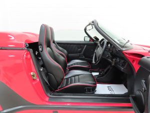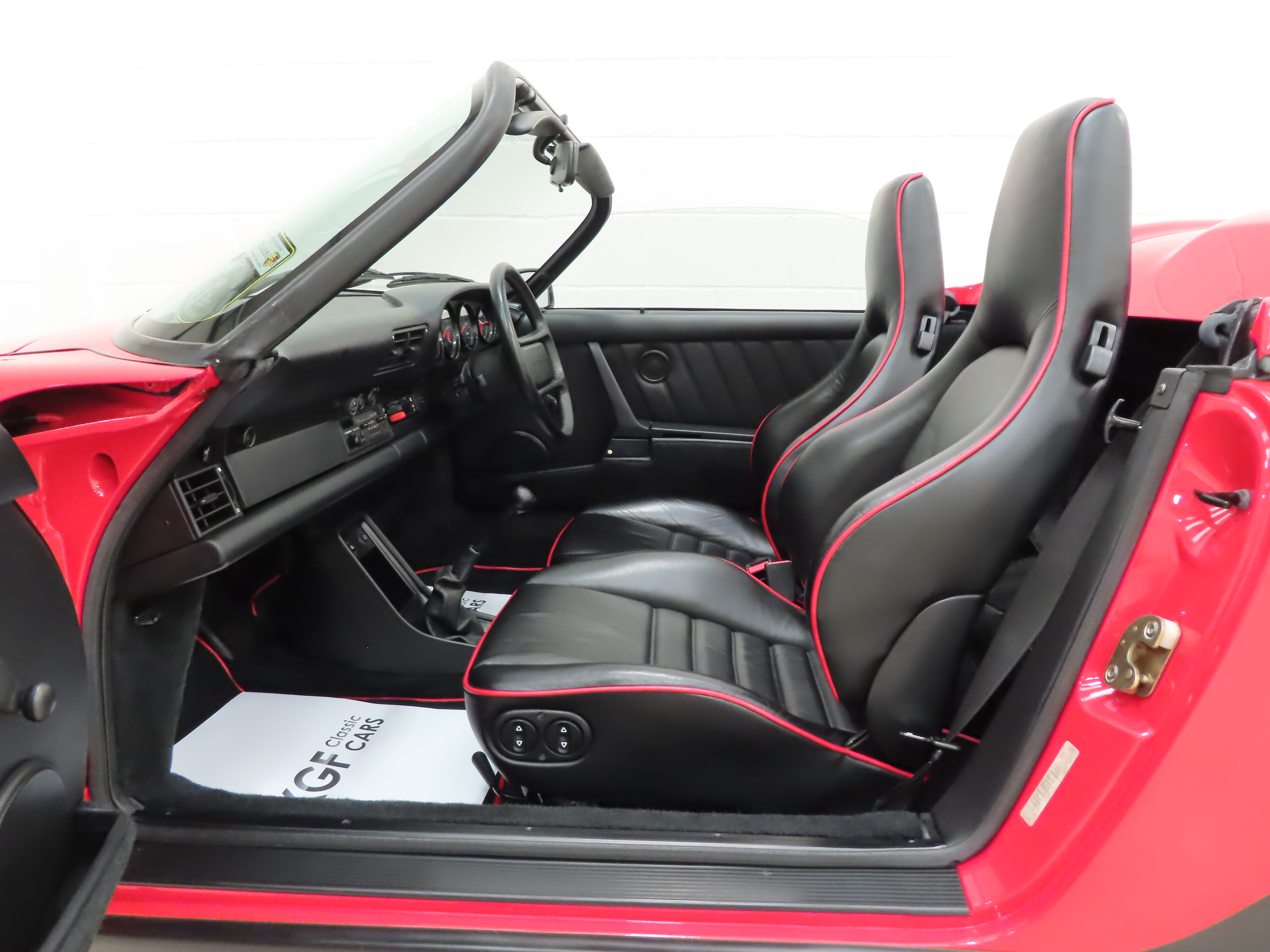 The crowning highlight of the discontinued G model generation and three decades after the 1954 356 Speedster, this rare UK RHD C16 911 Speedster is a prized collectors piece. Finished in iconic Guards Red, (Code L80K), the factory paint has a rich, deep gloss shine thanks to perfect dehumidified storage and a 911 Speedster car cover protecting it fully. Admirers will easily spot the unique double-bubble colour coded polyurethane tonneau moulding to conceal the lightweight roof and Porsche aficionados will note the exposed aerial on the nearside wing as the unique steeply raked windscreen was unable to accommodate an integrated radio aerial. The optional ‘Werks-Turbo-Look’ (factory wide body Turbo Look, WTL), shouts 1980’s supercar and all plastics, rubbers and trim are unmarked. All glass is original including the unique single-piece side windows without quarterlights and the front screen has minor delamination to the drivers lower edge. The underside, wheel arch apertures and all shuts reaffirm this example is virtually as good as the day it rolled out of Porsche’s Stuttgart factory in 1989.