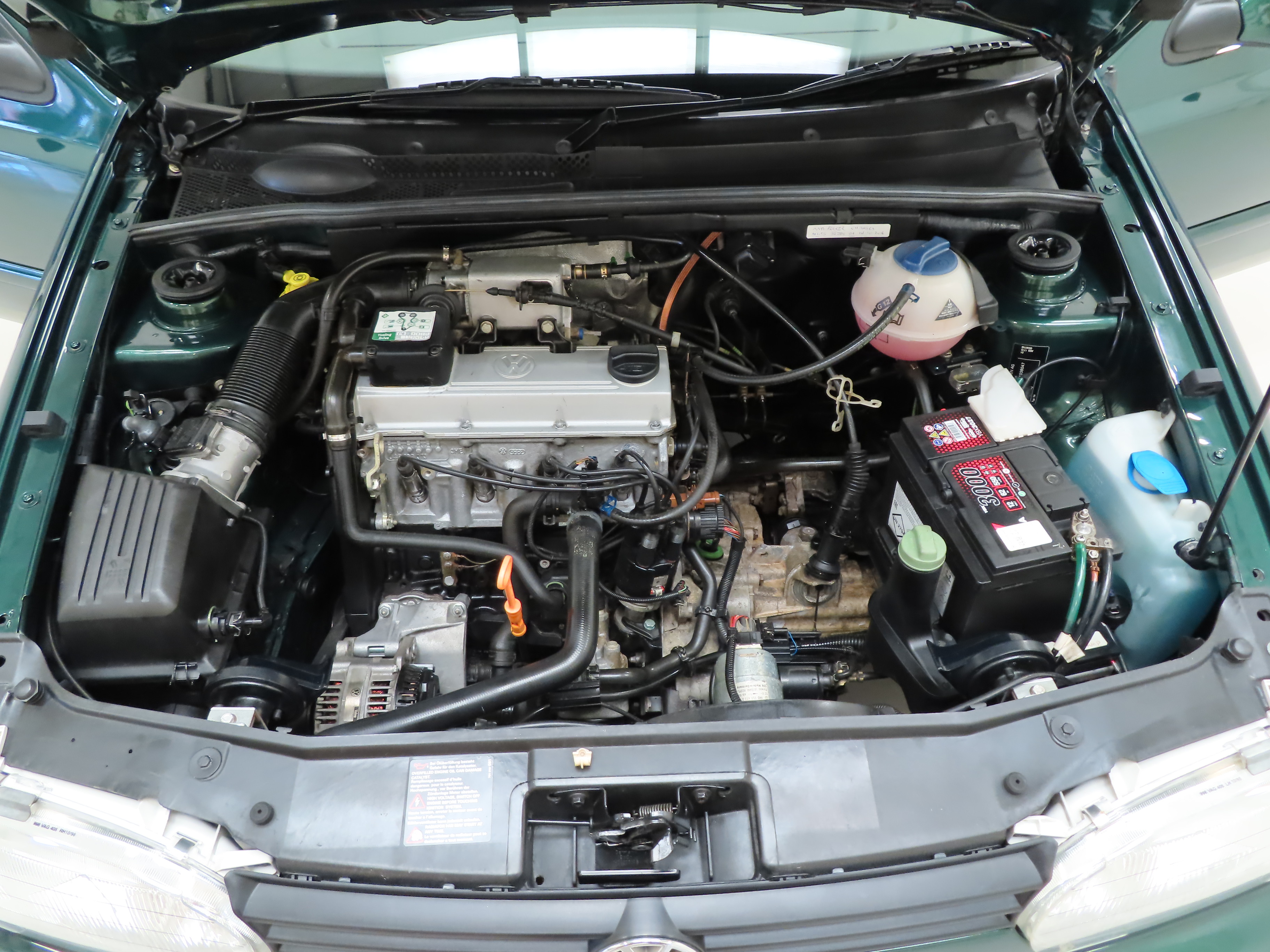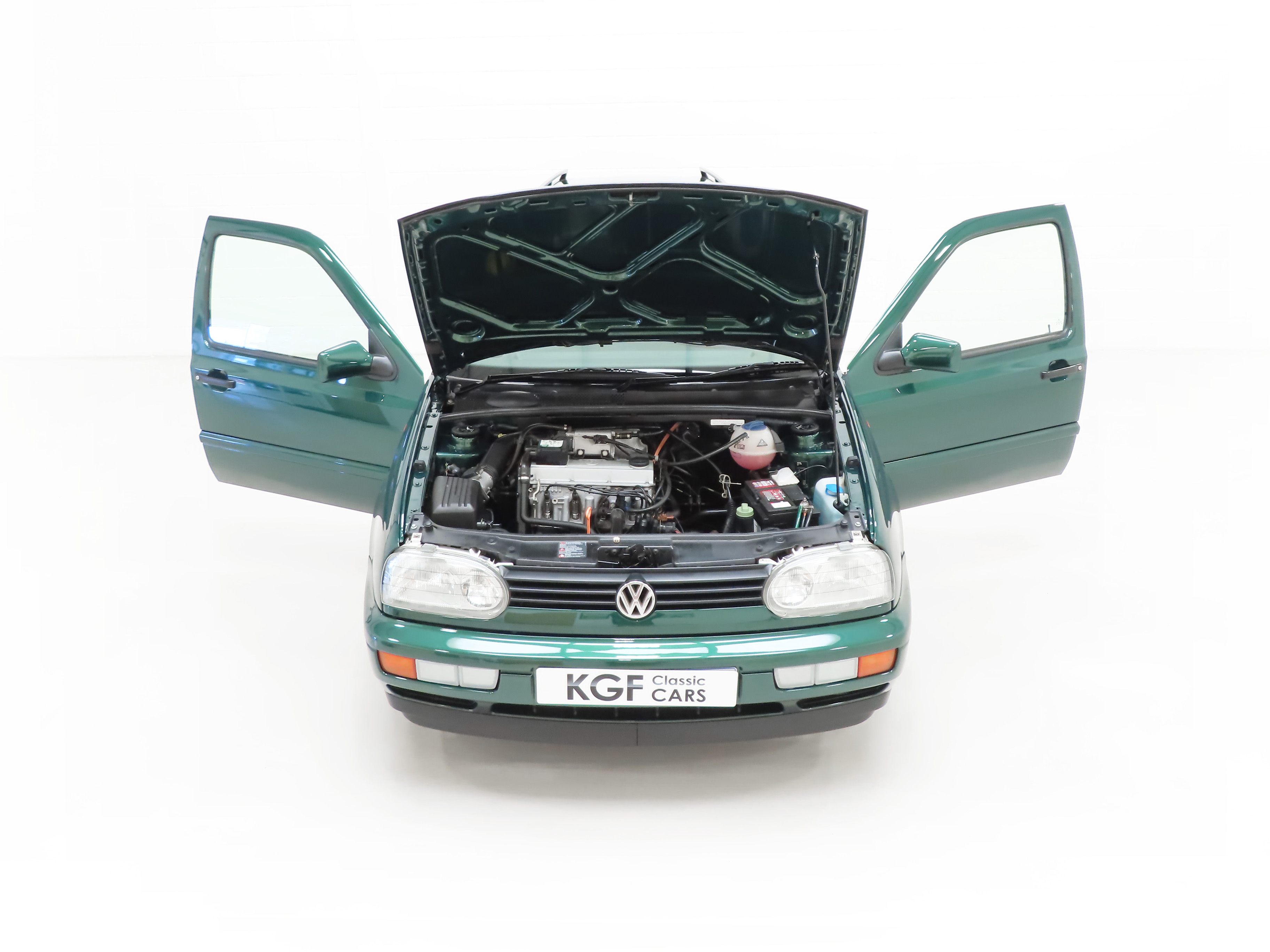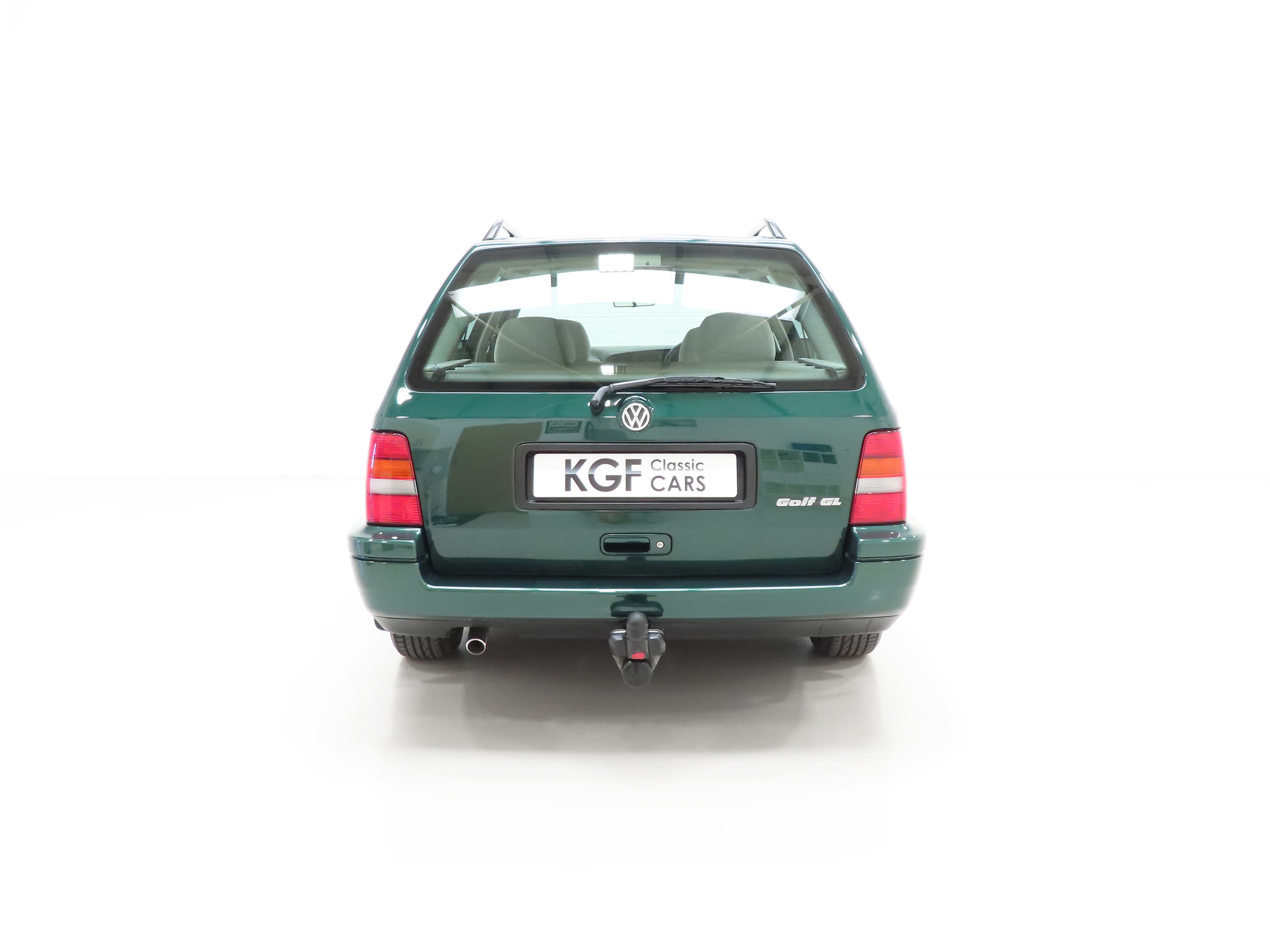 Strikingly boring and practical but now deliciously retro, this flagship VW Golf Estate looks amazing finished in cost optional Bright Green Pearl Effect, (Code LC6M). The deep lacquered factory paint finish is unmarked and being continually garaged stored from new and under soft Egyptian cotton sheets when not in use, the finish is simply outstanding. Genuine VW accessories such as the headlamp protectors and mudflaps remain fitted as do supplying dealer number plates. All trim is pristine including the GL specification colour coded side rubbing strips. All flush fitting glass has VW logos and the light clusters are crystal clear. Precise fitting body panels are free from marks, dings, scuffs and blebs. It is difficult to comprehend how a typically hardworking and load carrying workhorse can be so pristine!