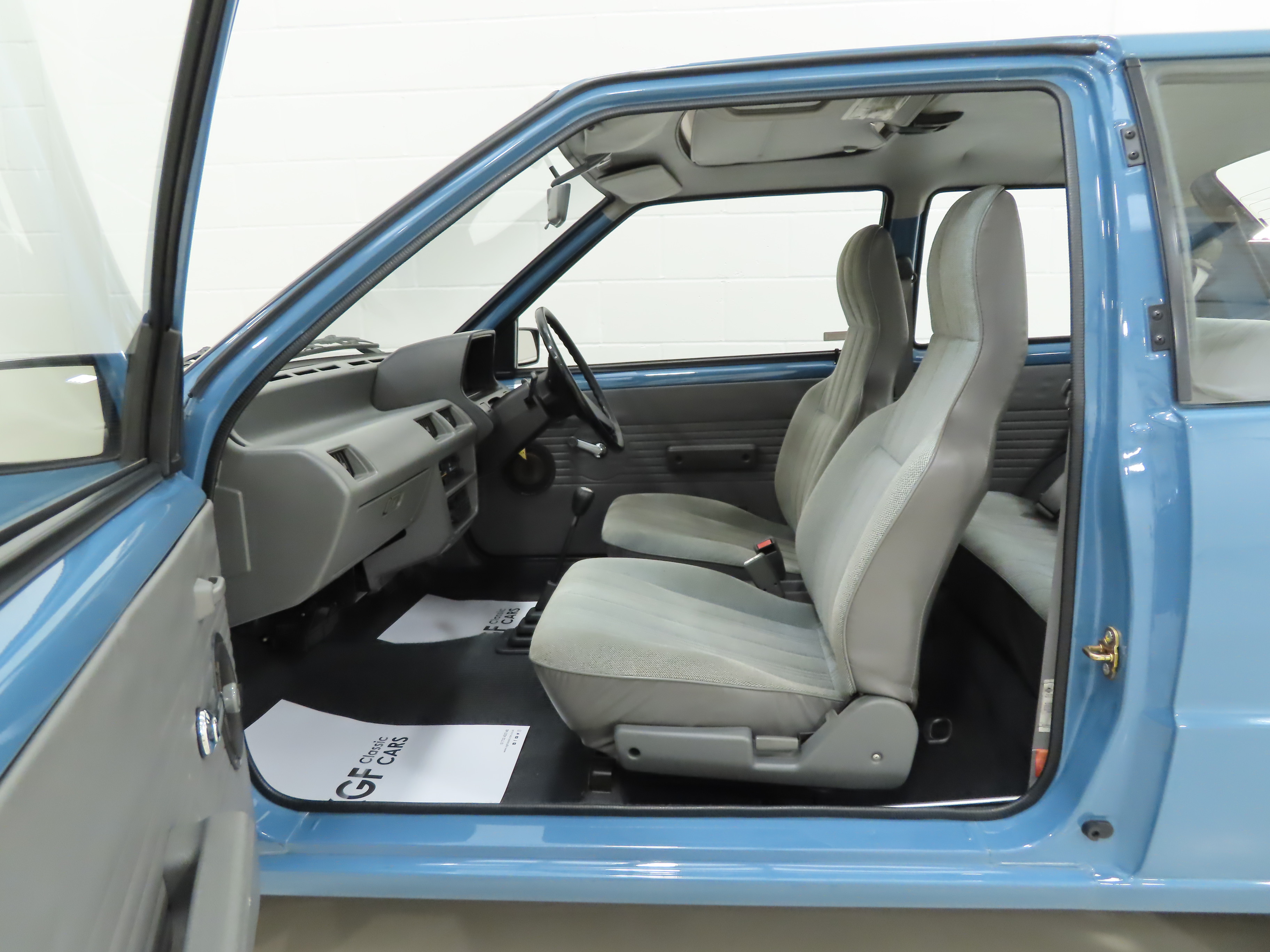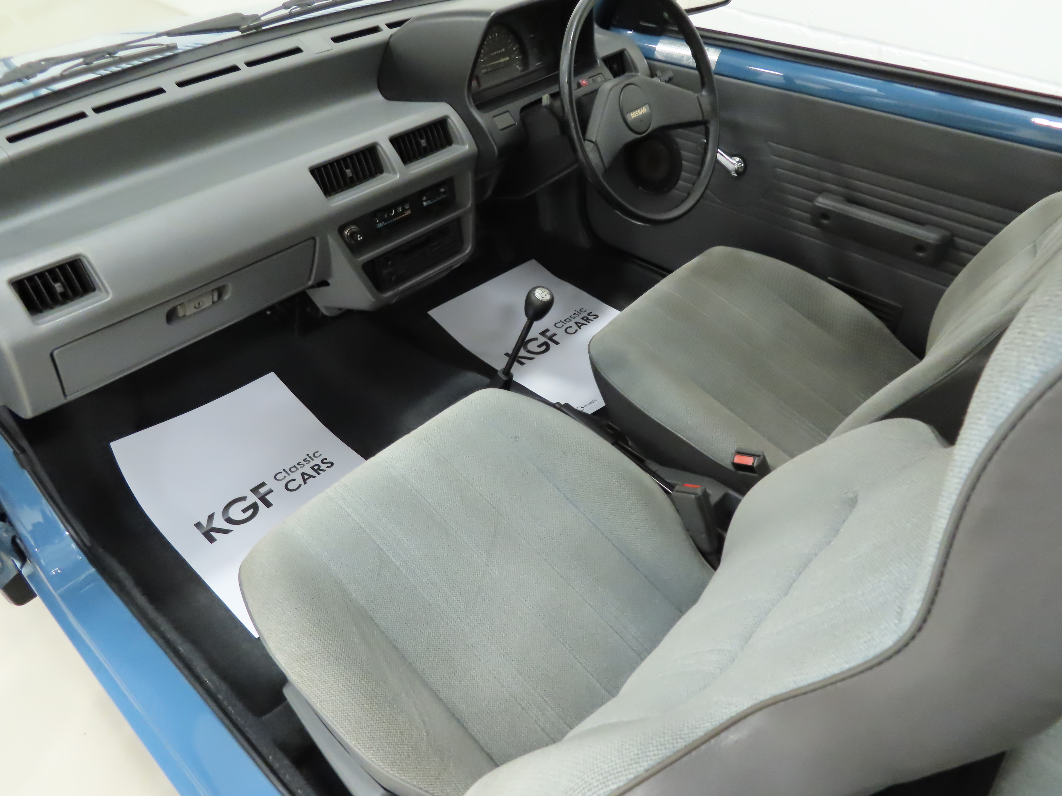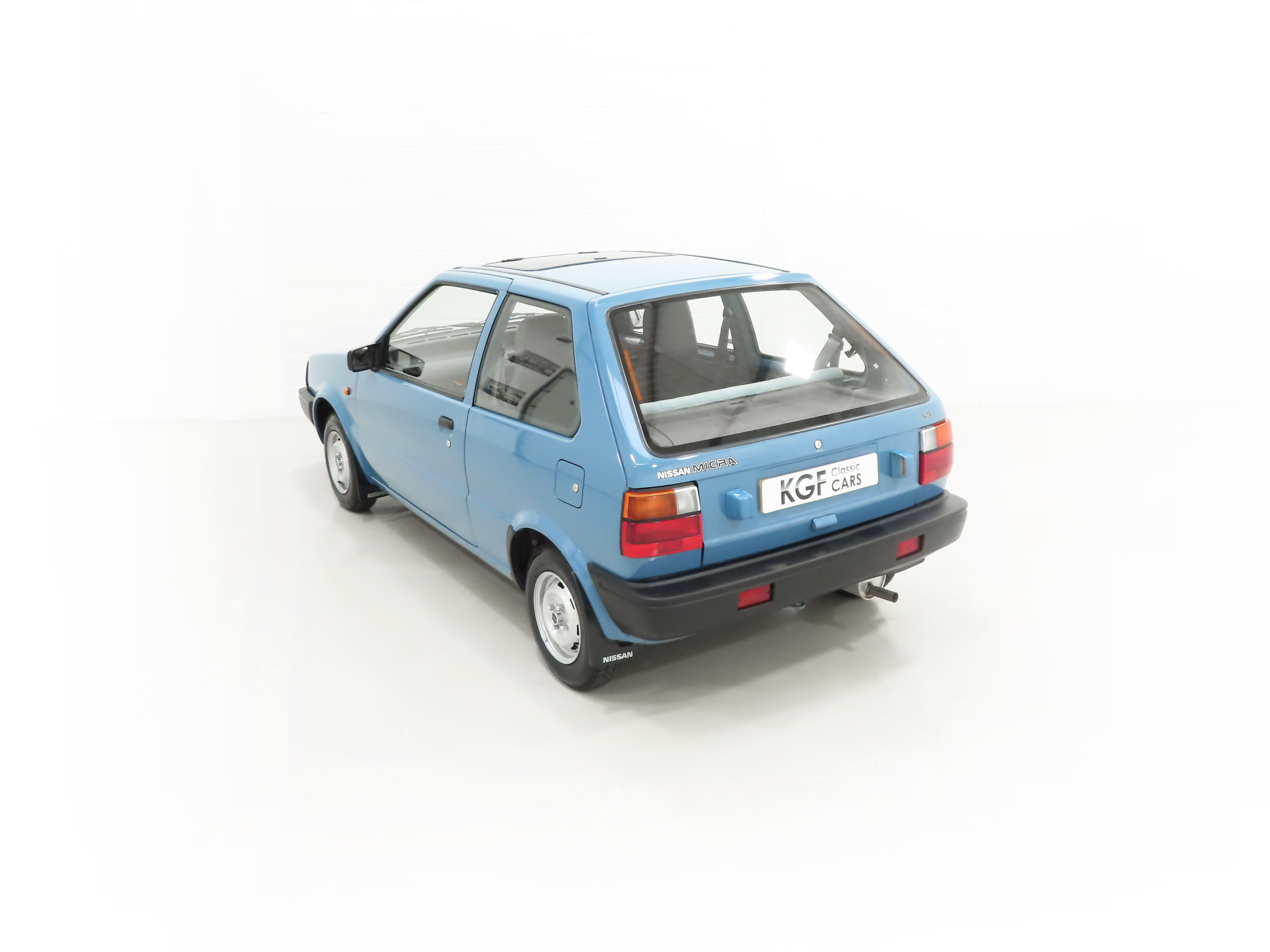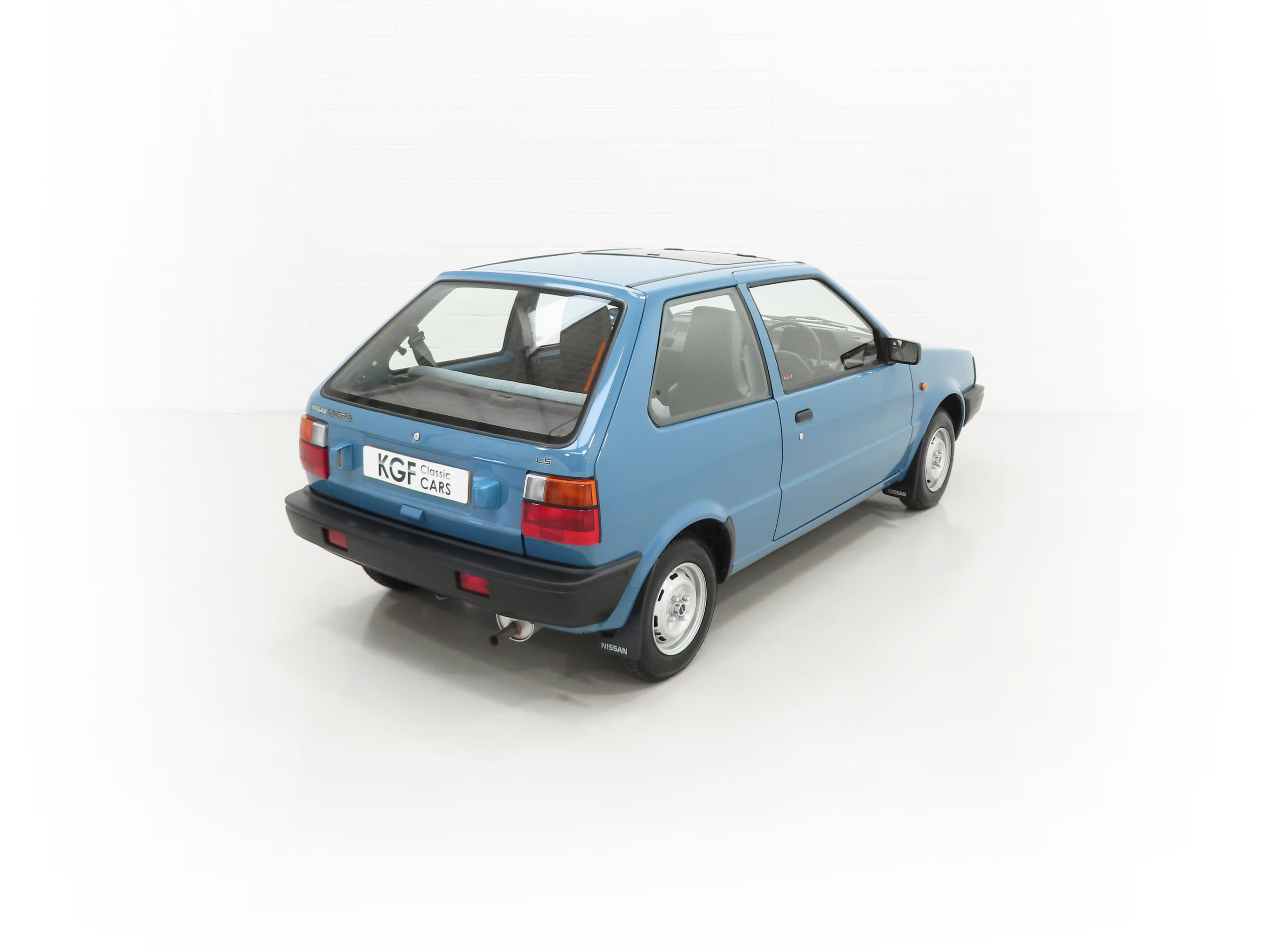 Truly astonishing and near perfect in condition and function. The higher grade Grey Tricot seat trim, (Code G), is in pristine condition and entirely commensurate with 8,355 miles from new. The interior trim and door cards are in amazing condition as are the carpets and headlining. Remarkably the often-discarded sunroof stowage bag and sunshade panel remain with the car. The wonderfully basic dashboard houses a full array of working warning lights to detect such things as oil pressure and low brake fluid and the dealer optional Philips AC760 radio cassette functions. The boot area looks virtually unused with a bagged pouch for the wheel brace and handle and factory paint stamp marking on the spotless boot floor. Even the spare wheel plyboard cover is undamaged! The Micra may only be 12ft long but the cleverly shaped interior affords ample room for adults and their luggage for reliable retro outings!