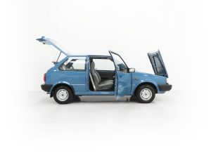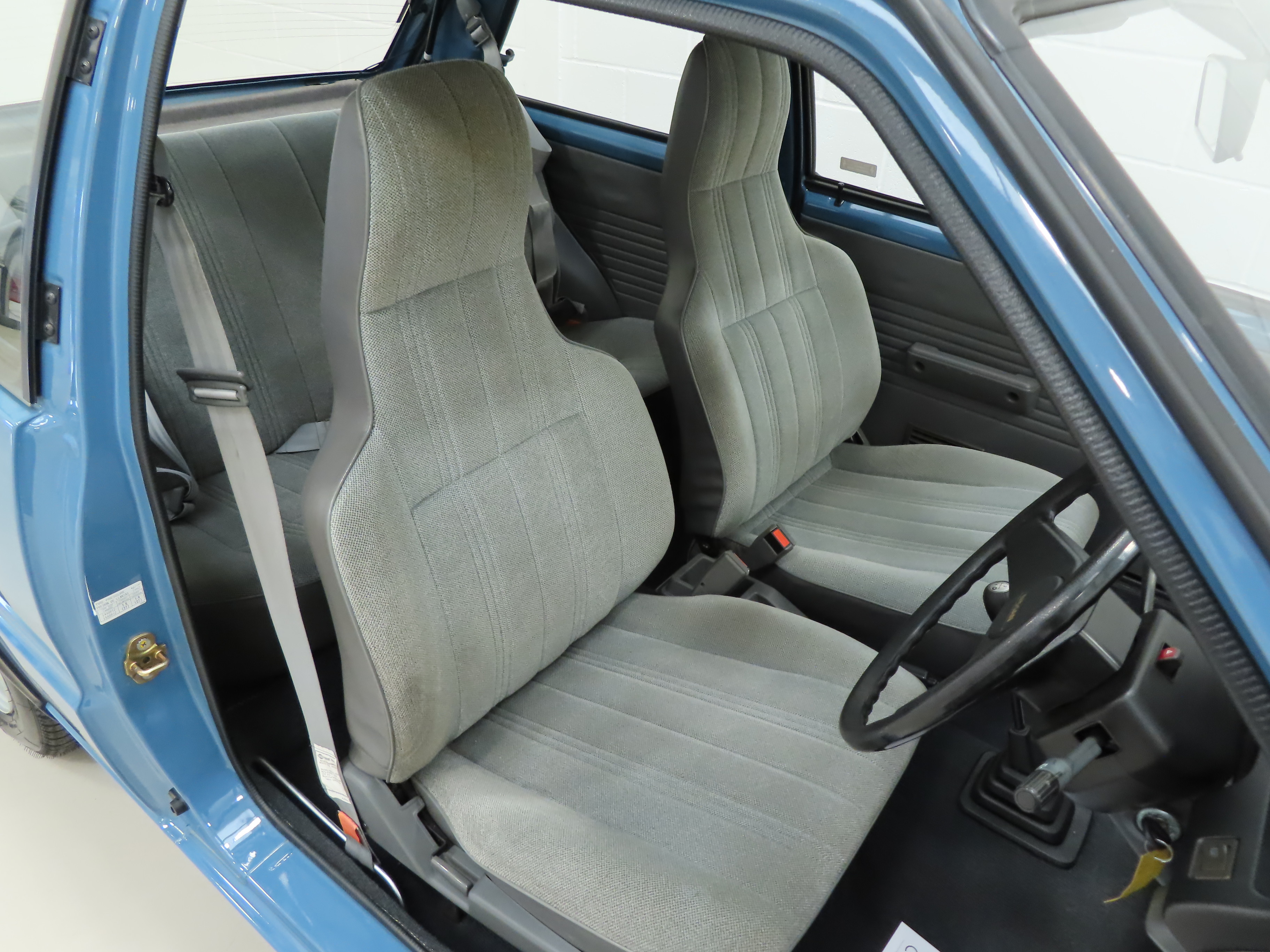 This fabulously frugal yet fun Nissan Micra epitomizes everything it was designed for, simplicity and basic economy motoring from a bygone era when even a passenger door mirror was a cost considered option! Once Britain’s best-selling one litre hatchback this prime example is finished in factory original Blue, (Code BG5). The paint finish looks amazing with a deep polished shine and only a few minuscule marks after 36 years. All factory fitted panels are straight with perfect panel seams and the underside and wheel arch apertures are very clean thanks to minimal use and indoor storage. The wrap around bumpers, colour keyed radiator and all trim is largely unmarked and the glass is number plate etched. Resplendently retro and utterly ordinary!