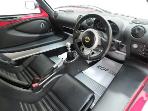 Engineering excellence is built into the interior with the aim to save weight and provide ultimate driver focused enjoyment with generous specification courtesy of the factory optional Touring Pack. The Touring Pack sports buckets seats are trimmed in Ebony Black leather to which the condition reflects the very low mileage. The exposed aluminium chassis and Elise carpet mats are super clean and unworn. The wide inner-sills are unmarked and all controls function correctly including the ice cold air conditioning and cruise control! A spotless rear luggage compartment houses the tyre repair equipment and toolkit. An interior Colin Chapman would be proud of!