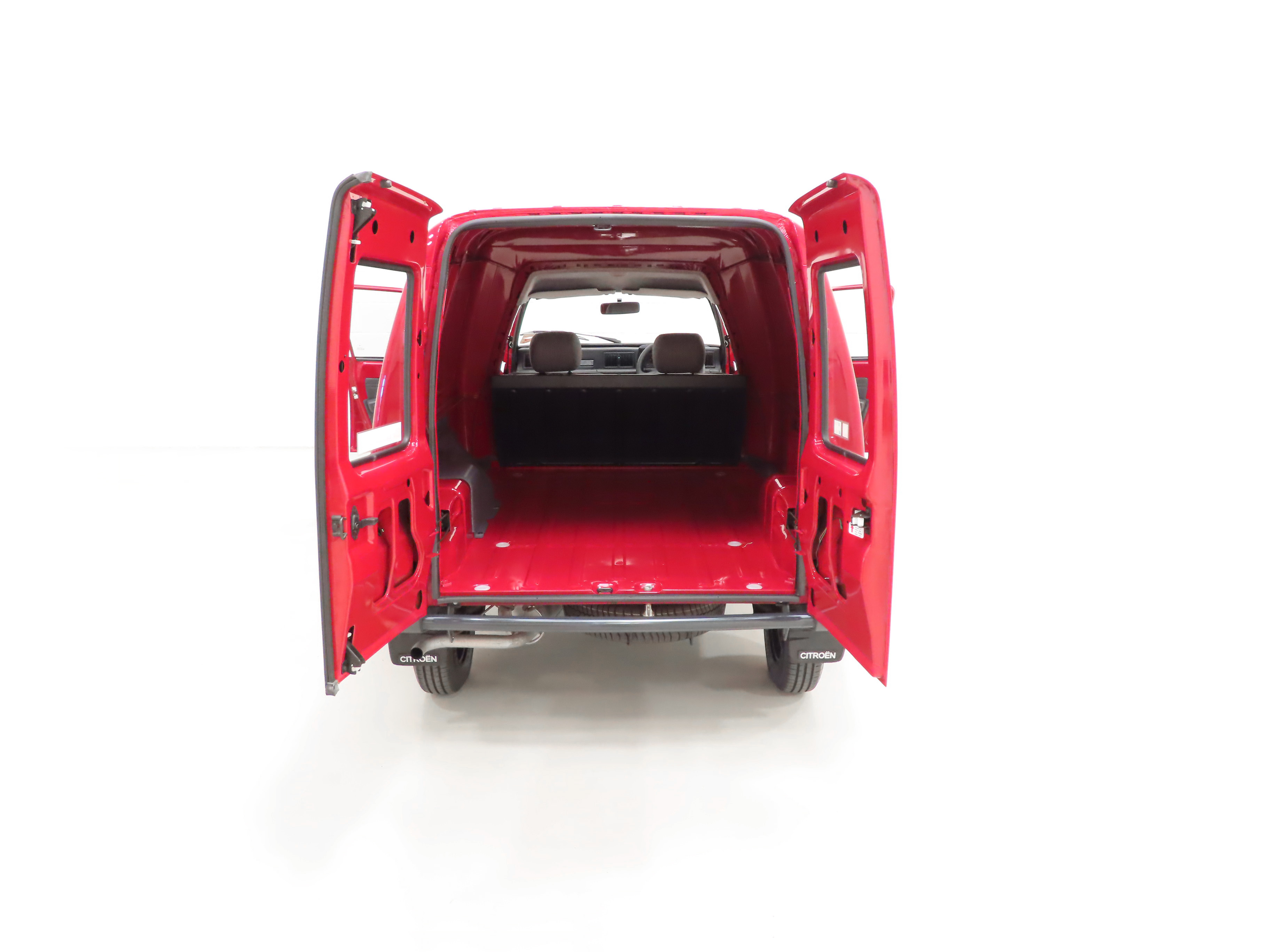Car-derived commercial vehicle with hi-cube load space, flat unobstructed steel floor, 600kg payload capacity, load space volume of 2.66m³, load floor length of 1.65 metres, load height 1.22 metres, internal load space width of 1.55 metres, powerful load compartment light, four cargo anchorage points, half-height steel cargo bulkhead, 90° and pallet-loading 180° rear door retaining clips, body-side rubbing strips, bonnet stone-chip guard, tubular steel rear bumper, wheel trims, door pockets, water temp and brake pad warning light, internal headlamp adjustment, twin adjustable sun visors, headrests, roof and two dash-mounted courtesy lights, 2-speed fan, side demisters, Blaupunkt Dublin C30 stereo cassette, floor carpet, cigar lighter, analogue clock. Dealer Accessories; Mud flaps, C15 tailored rubber floor mats.
