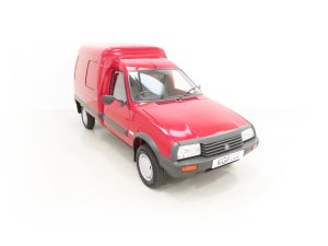 To claim a 23 year old Citroen C15 van to be in pristine original condition and effectively as good as new would seem rather farfetched, yet in this instance, the compliment is entirely justified. Having covered a genuine 3,633 miles from new, this almost inconceivable example is 100% original and arguably perfect. The Passion Red paintwork, (Code KJFB), is showroom fresh and the famously lightweight panels are pin straight with no dings or markings whatsoever. All trim sections are flawless as are every single fragile decal including the Club stickers, offside wing weights and distribution figures label and diesel sticker above the fuel filler. Further amazing originality features are the supplying dealer number plates, tax disc holder and dealer rear window and Citroen Total stickers. The underside condition is every bit as astonishing as the body! This must be the best in existence?!