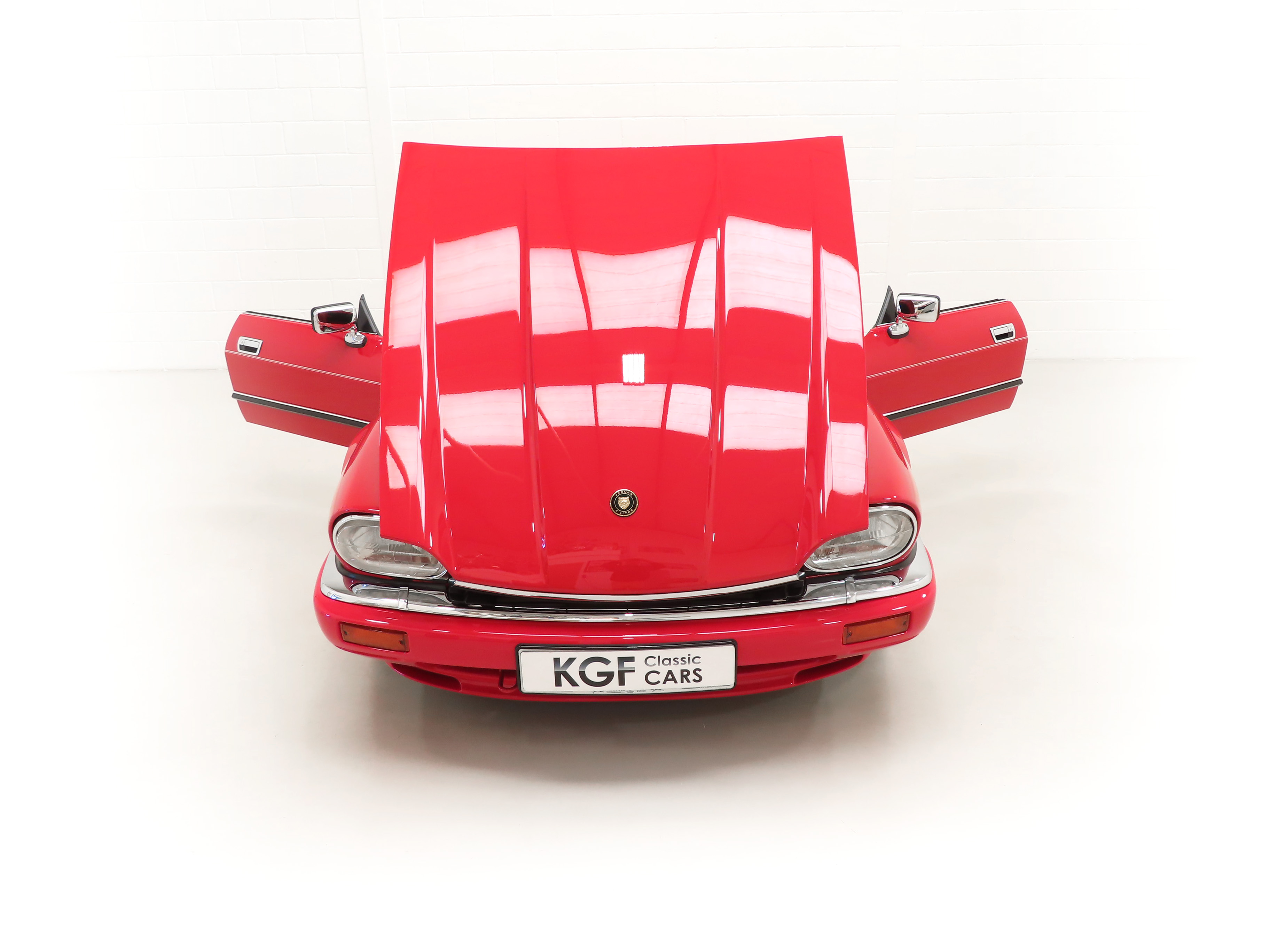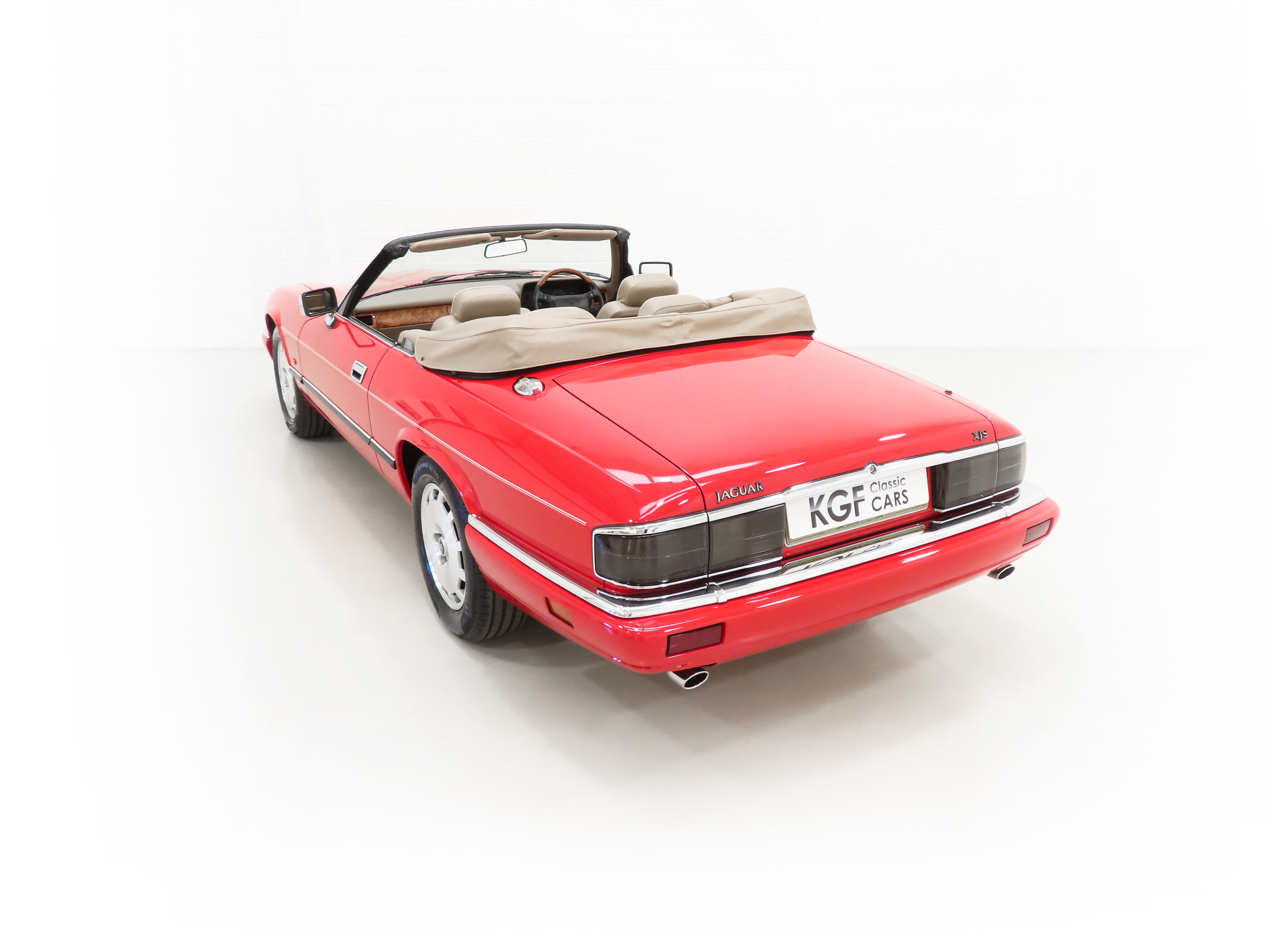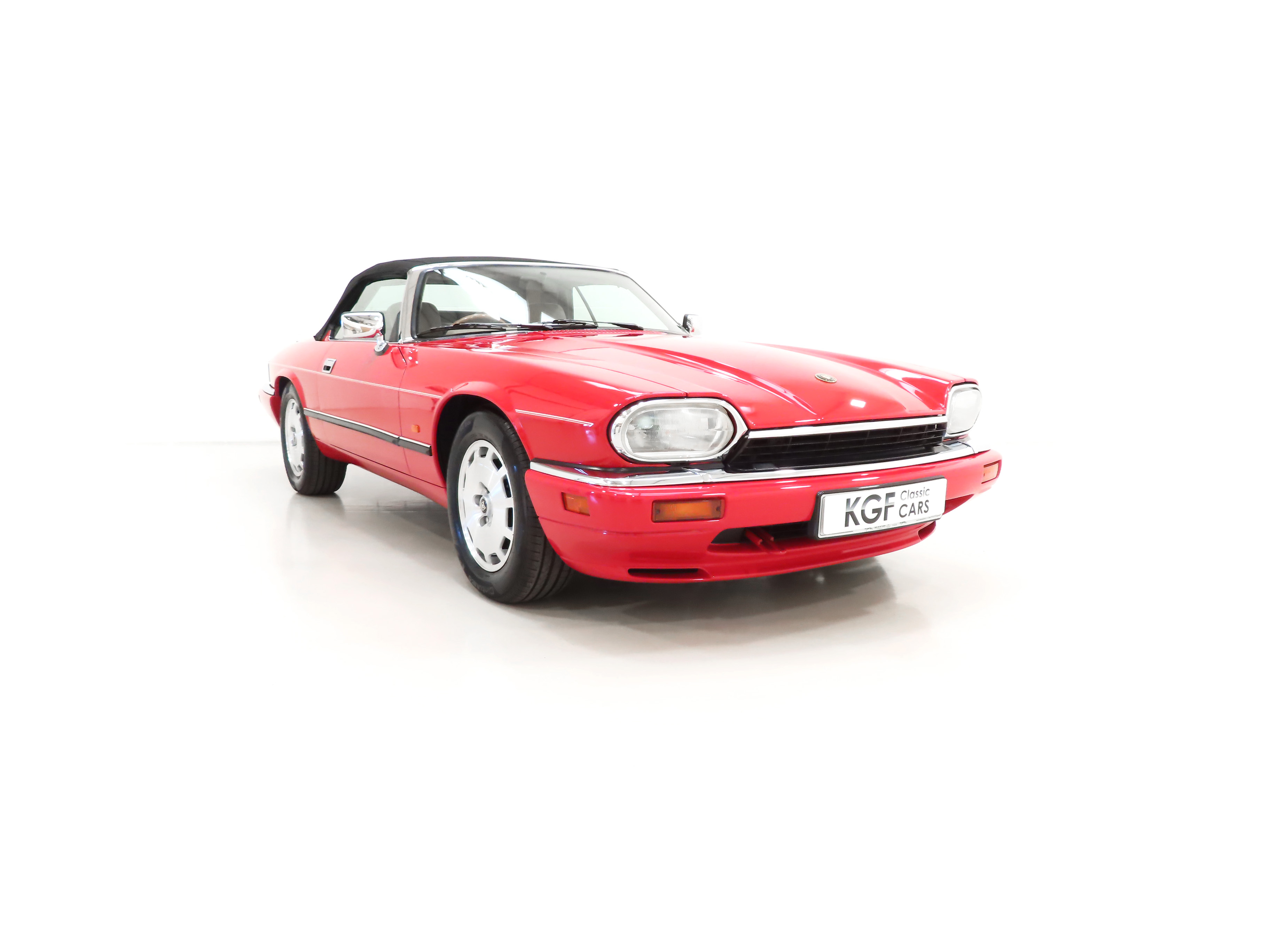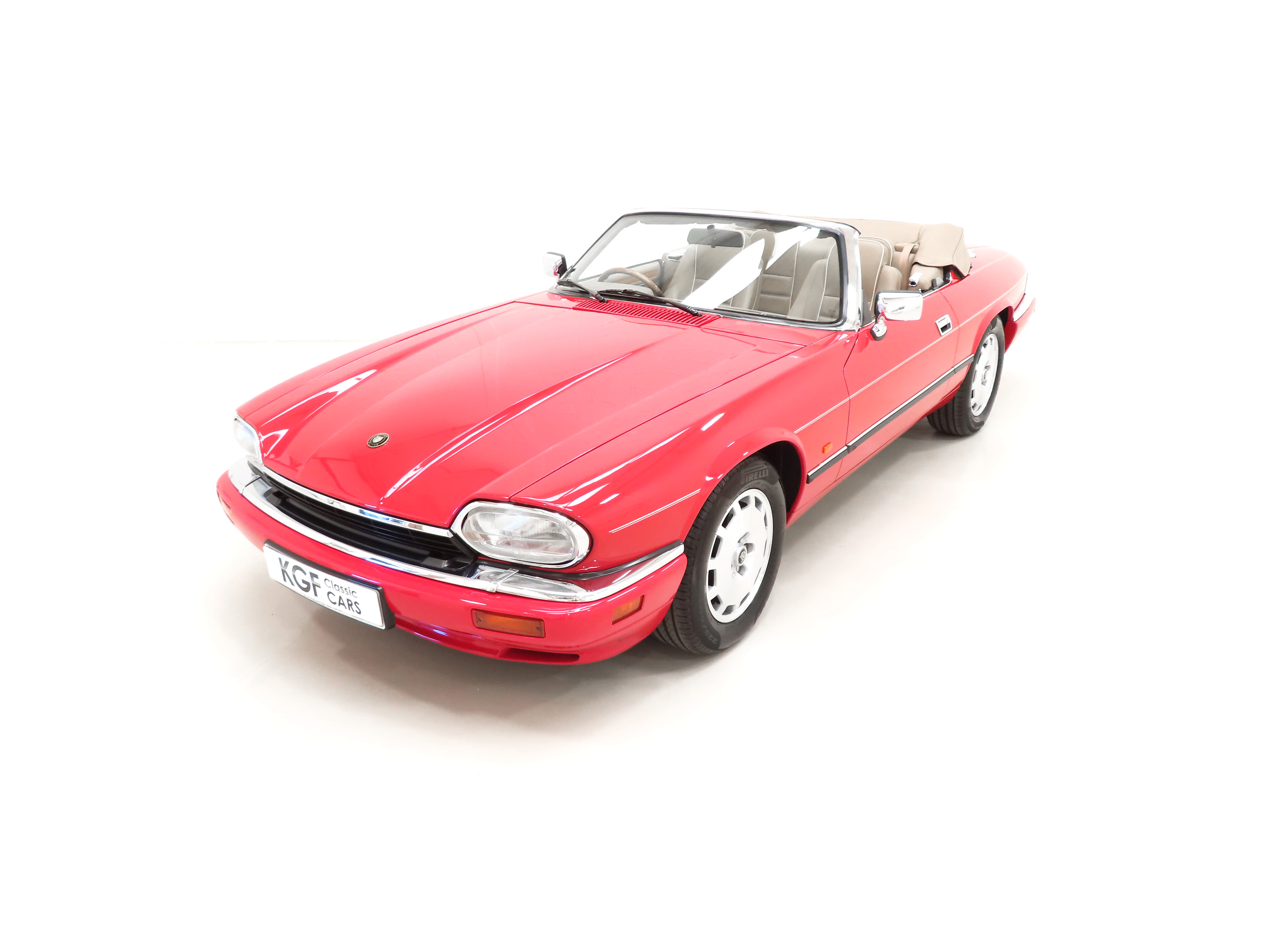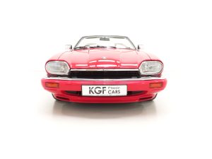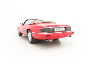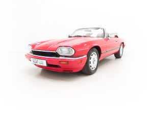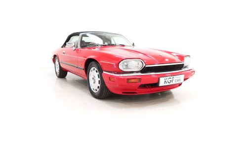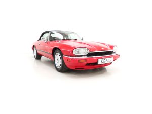 This exquisite example is the 2+2 Convertible finished in factory original Signal Red, (Code CFC), which compliments the elegant sporting lines of this classic drop-head. First paint credentials are rare and the Signal Red boasts an incredible deep glossy shine and uniform finish that will simply fascinate, even down to the original hand painted twin coachline. The beautiful quality chrome enhancements are mirror bright and the supplying dealer fitted number plates remain. The factory fitted hood with perfect tonneau cover presents as new, thanks to strict garage storage with an additional Jaguar soft cover to fully protect from sun fading. A final incarnation of the captivating XJS marque exceptionally represented in this pristine example.