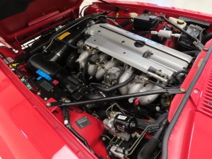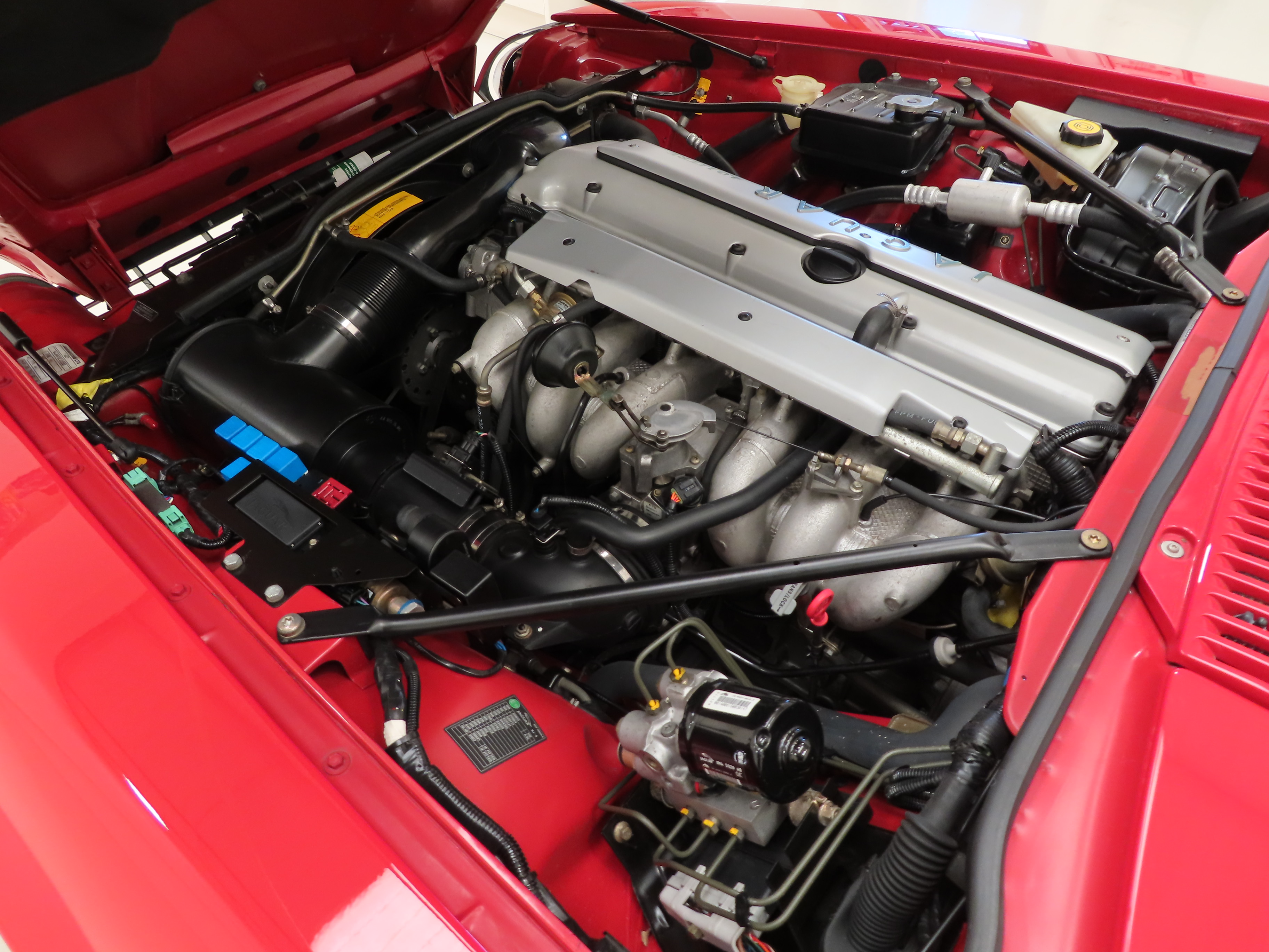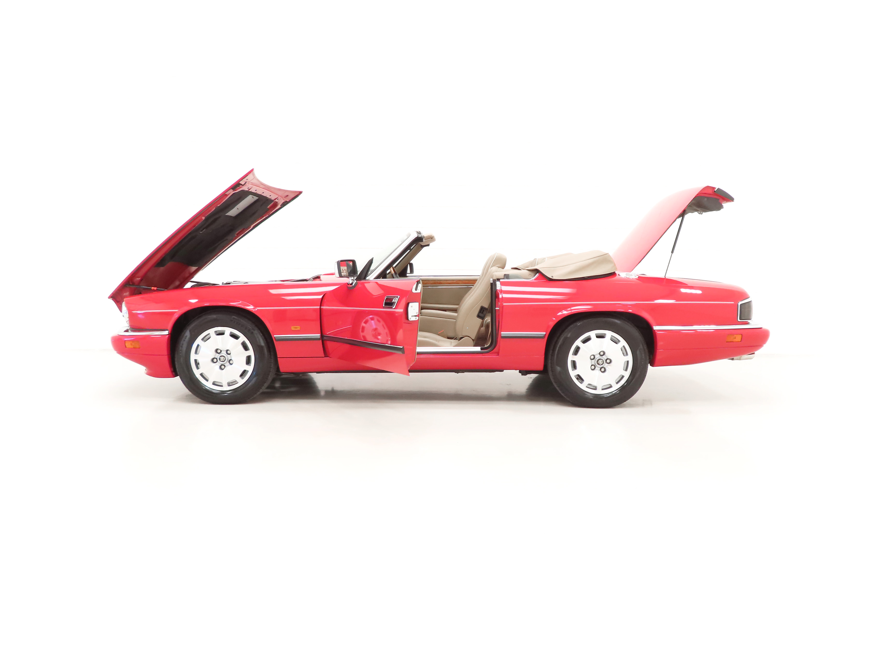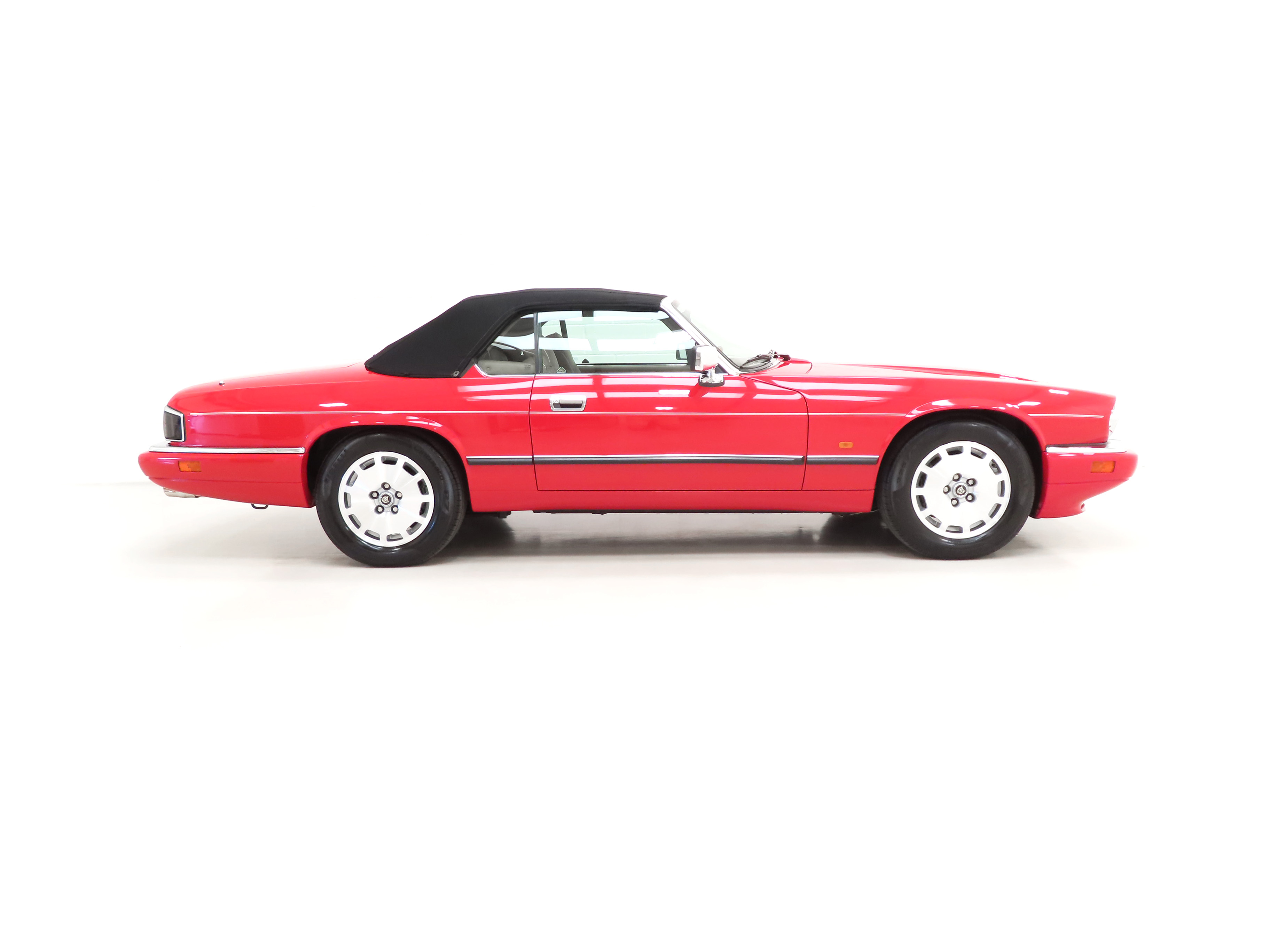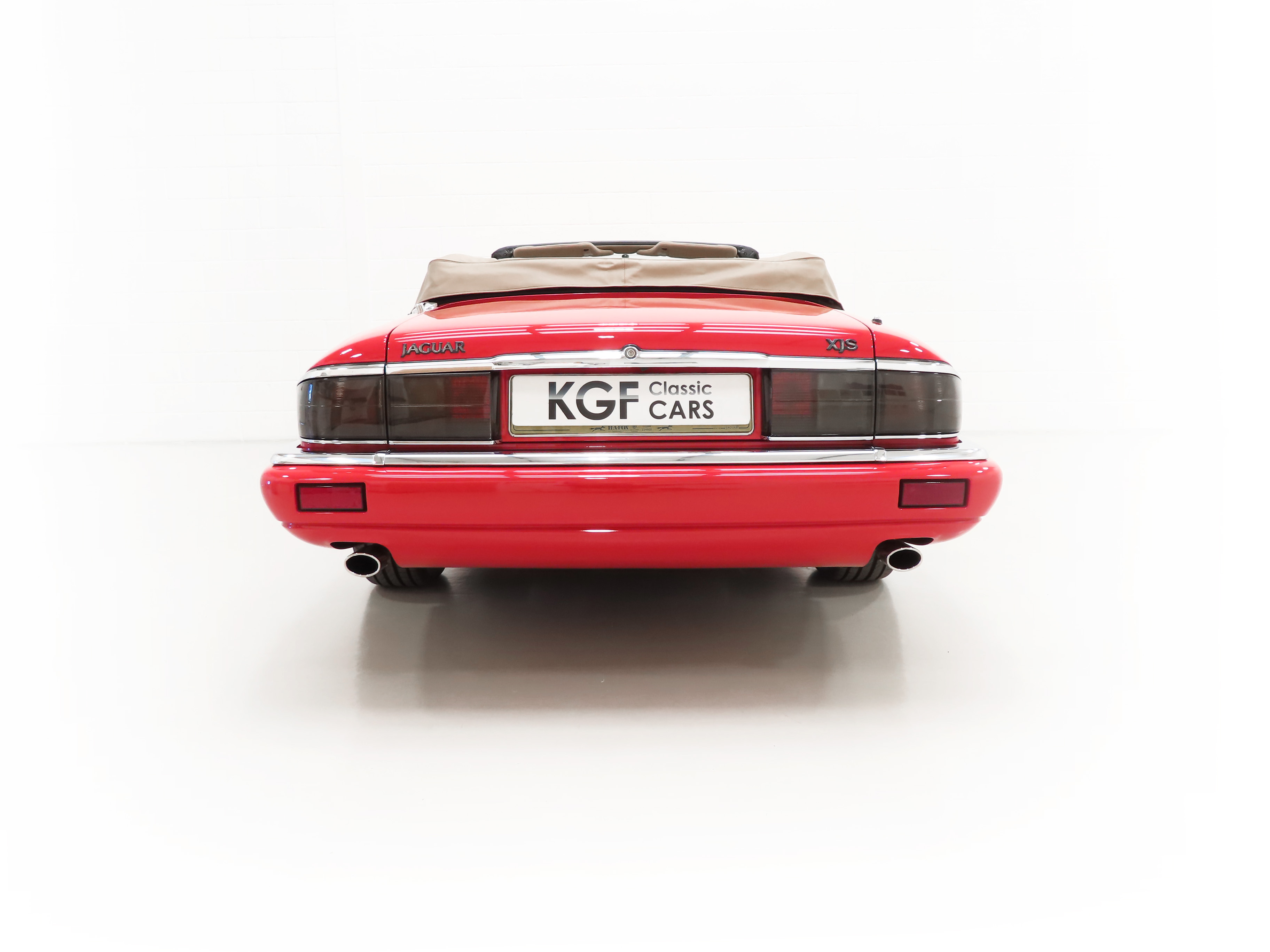 This exquisite example is the 2+2 Convertible finished in factory original Signal Red, (Code CFC), which compliments the elegant sporting lines of this classic drop-head. First paint credentials are rare and the Signal Red boasts an incredible deep glossy shine and uniform finish that will simply fascinate, even down to the original hand painted twin coachline. The beautiful quality chrome enhancements are mirror bright and the supplying dealer fitted number plates remain. The factory fitted hood with perfect tonneau cover presents as new, thanks to strict garage storage with an additional Jaguar soft cover to fully protect from sun fading. A final incarnation of the captivating XJS marque exceptionally represented in this pristine example.