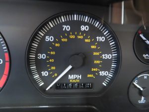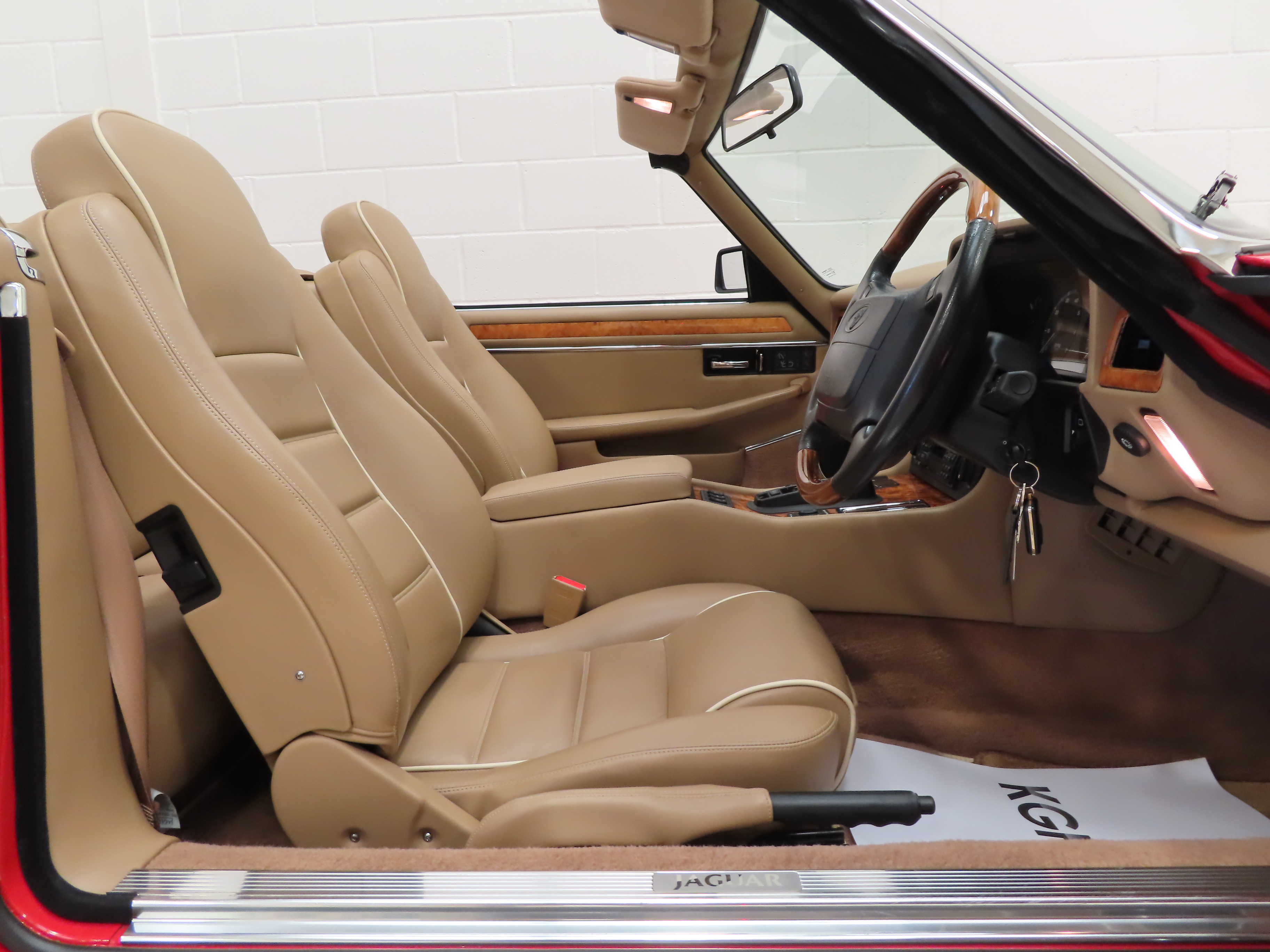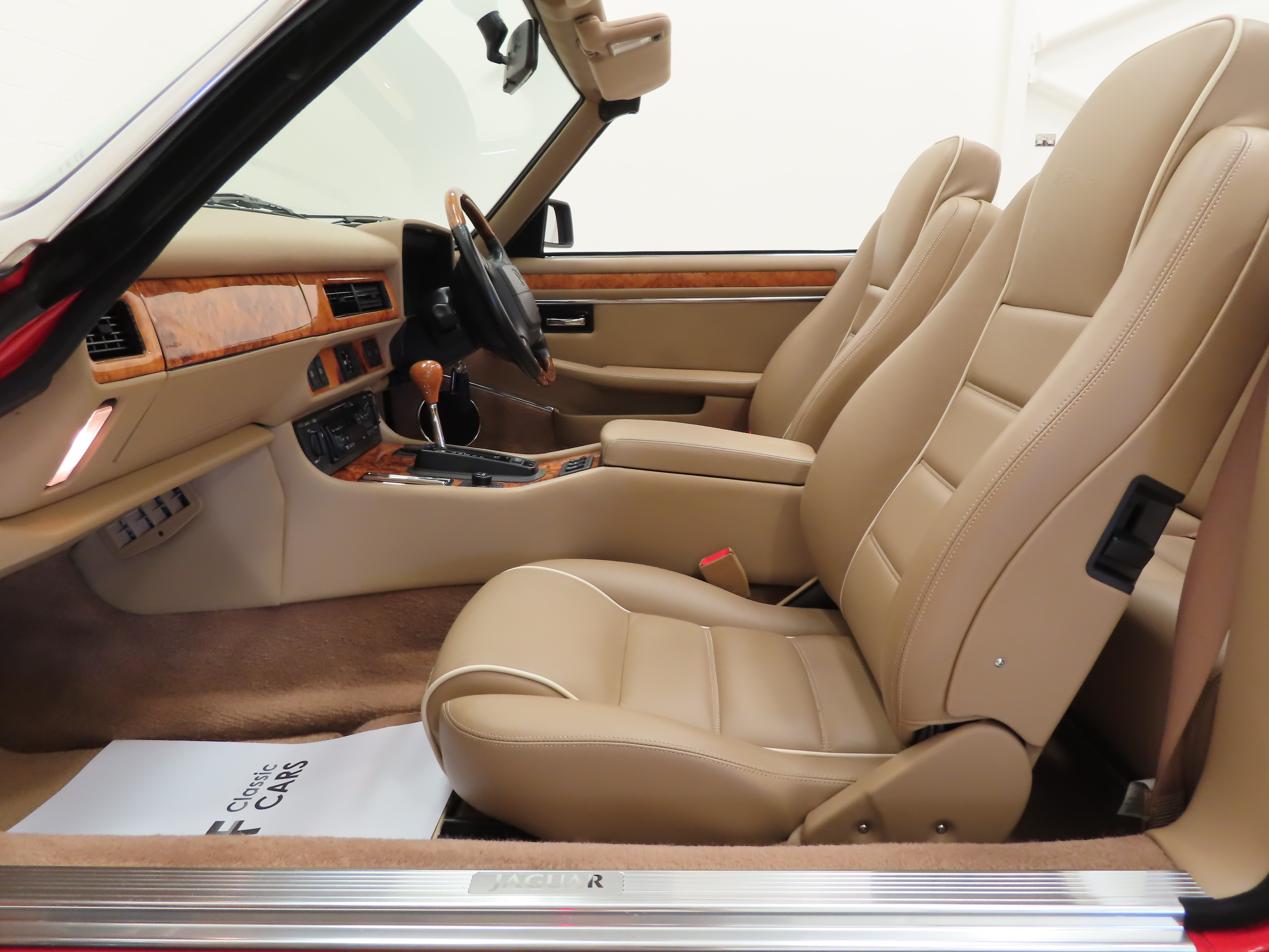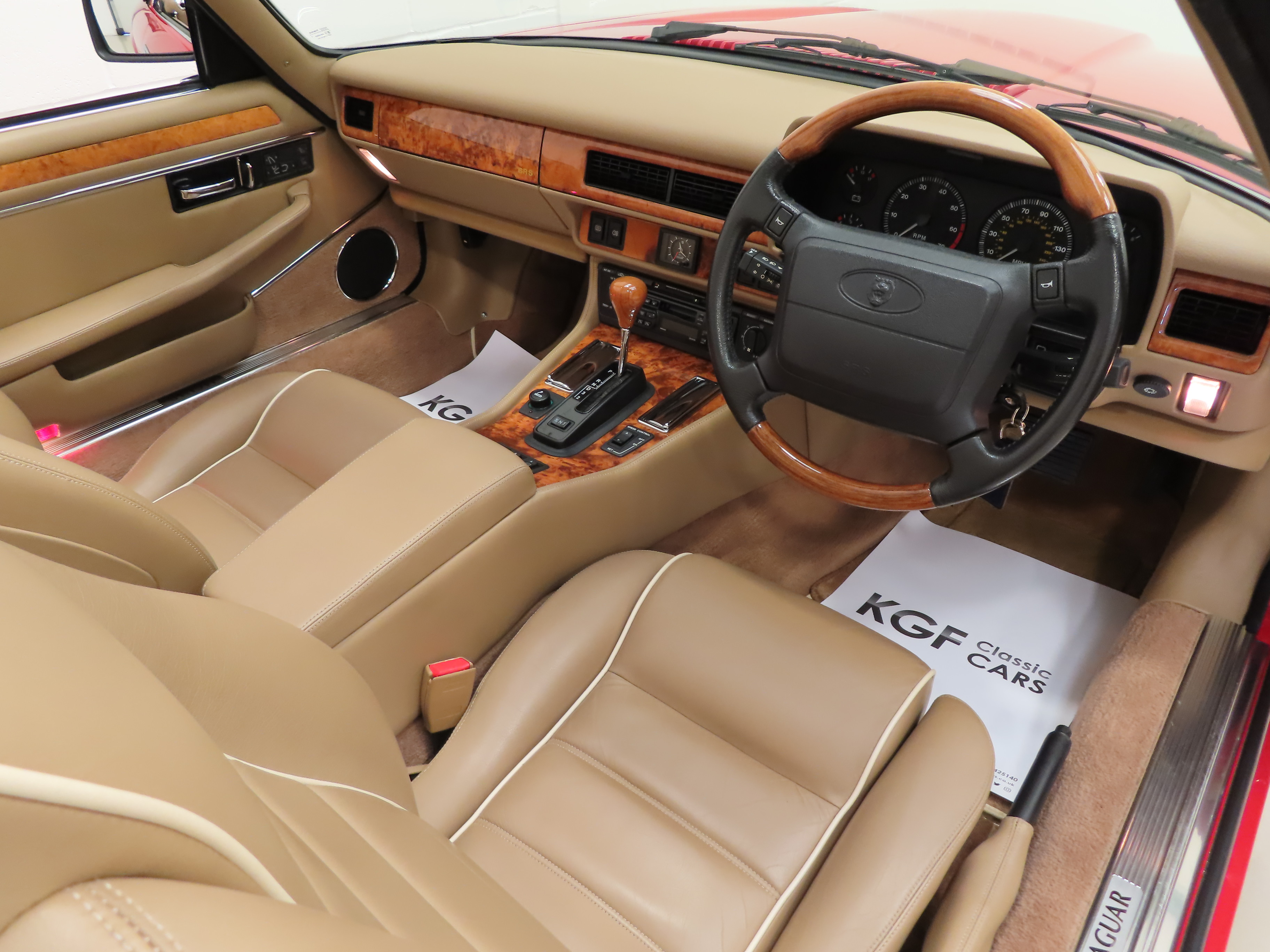 A sumptuously sporting and opulent interior is simply outstanding and certainly defies its near 30 years of age! Rare Coffee Leather with Cream piping electric heated seats, (Code SDC), are entirely commensurate with the low 12,218 miles covered. All luxurious soft furnishings are perfect including the inner hood lining. Hand-crafted Figured Sapwood Walnut veneers, (Code EK), are as new with none of the usual crazing or discolouration. The Celebration model specific wooden steering wheel and Jaguar Leaper embossed seats remain true to this special edition. All the controls, switches and gauges function perfectly including the cruise control system and air conditioning. True classic Jaguar indulgence.