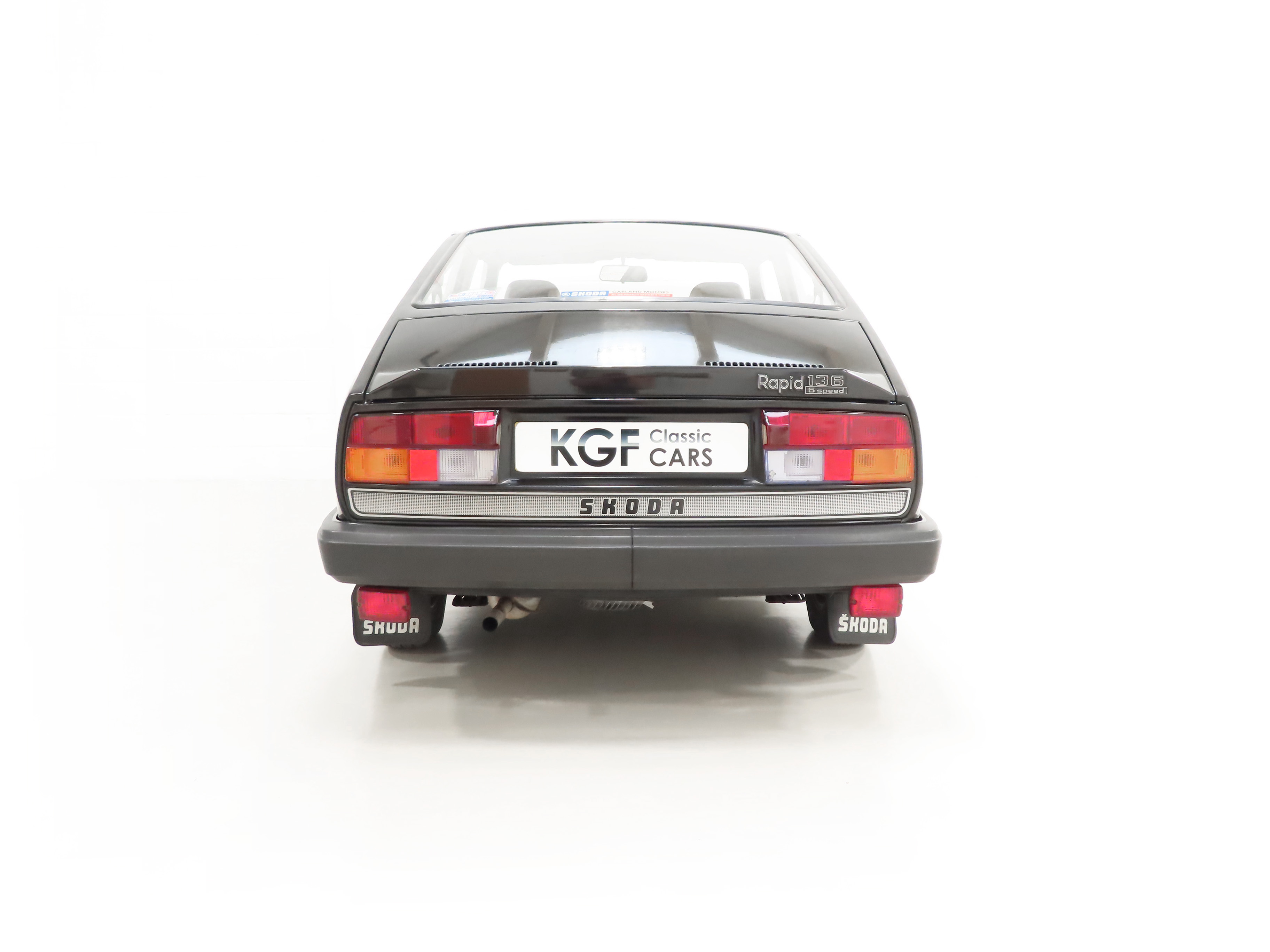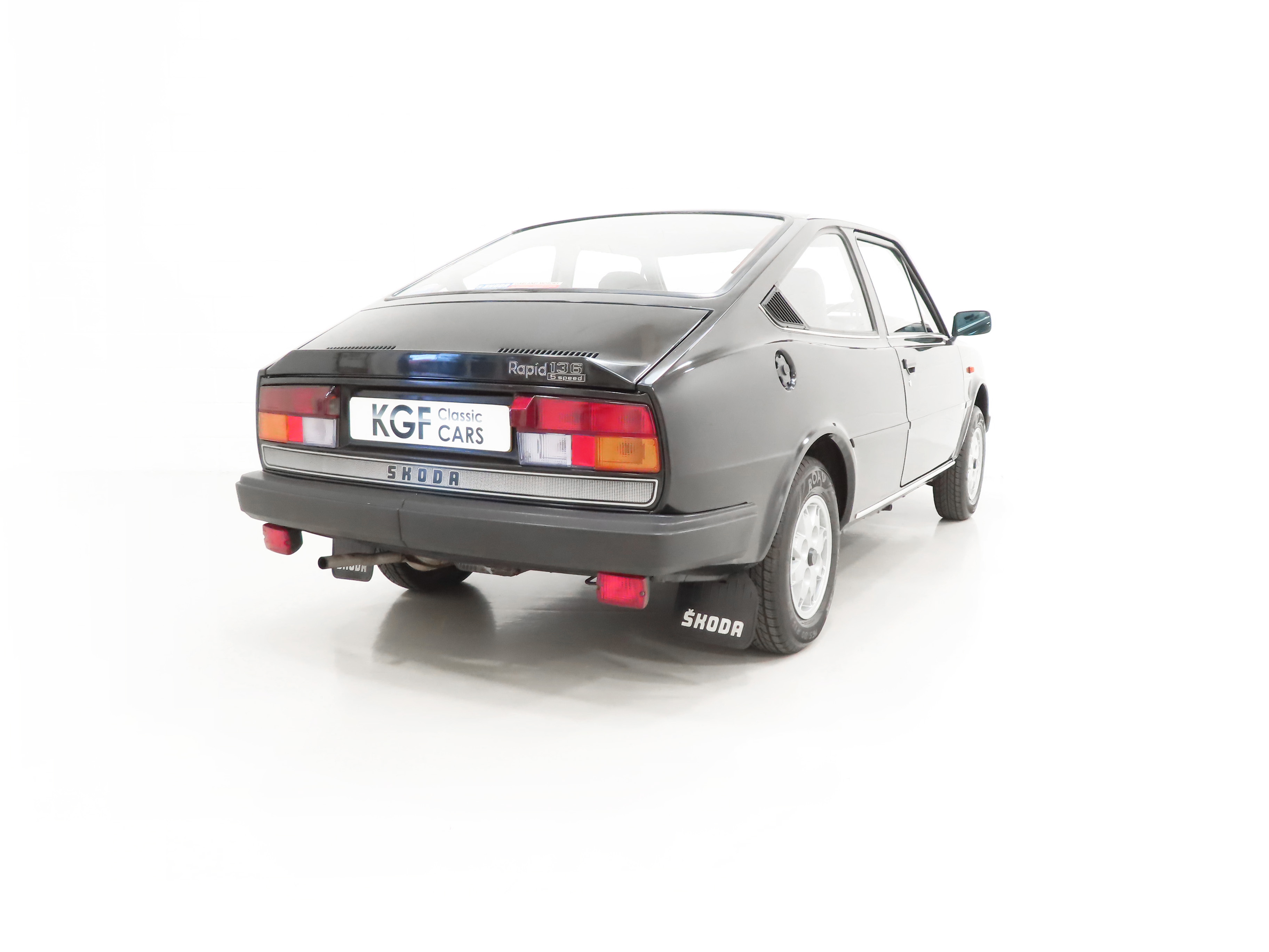 Two-door sport coupe body, rear sited engine with louvred compartment cover, large side hinged front luggage area, integral rear spoiler, black moulded two-piece front and rear bumpers, bodyside rubbing strips, laminated windscreen, rectangular halogen headlamps, twin reversing lamps, twin rear fog lights, wrap-around front indicators, electric 4-jet screen washers, rear mudflaps, locking petrol cap, fully reclining front seats with integral head restraints, individual fold down rear seats, Skoda tray mats, heated rear window, low fuel warning light, tachometer, lockable glove box, stereo radio cassette, toolkit, spare bulb and fuse holdall. Accessories: Electric fan switch, Rapid carpet mats, fire extinguisher, warning triangle.