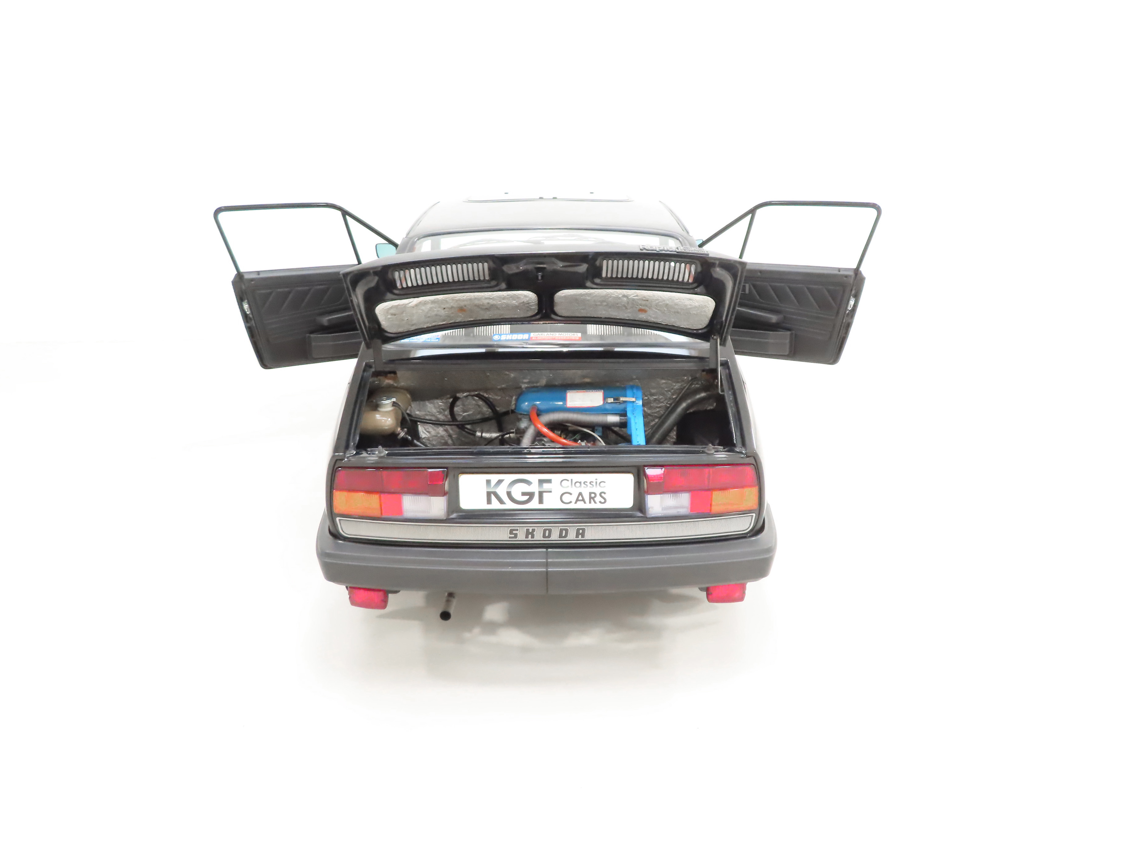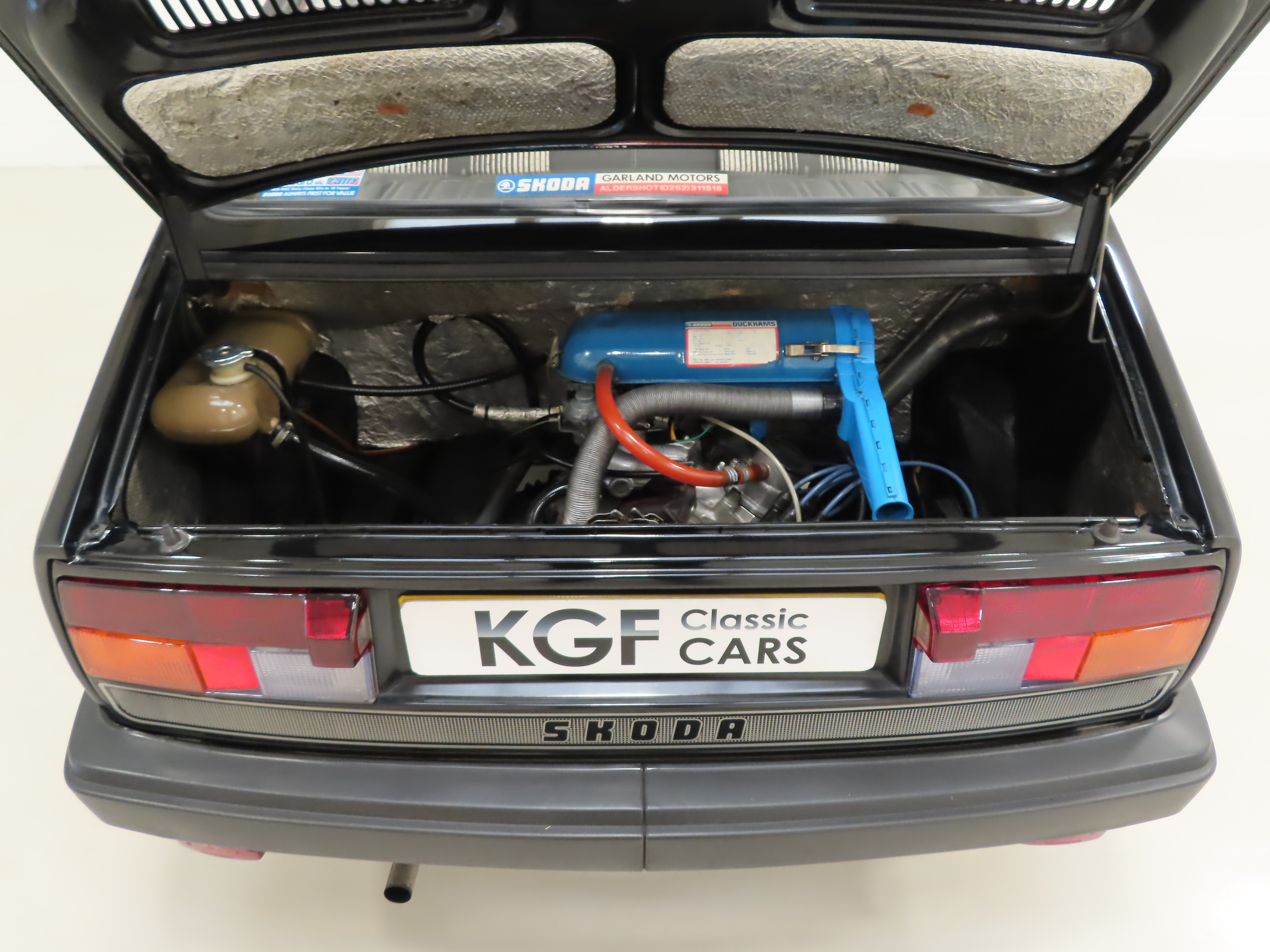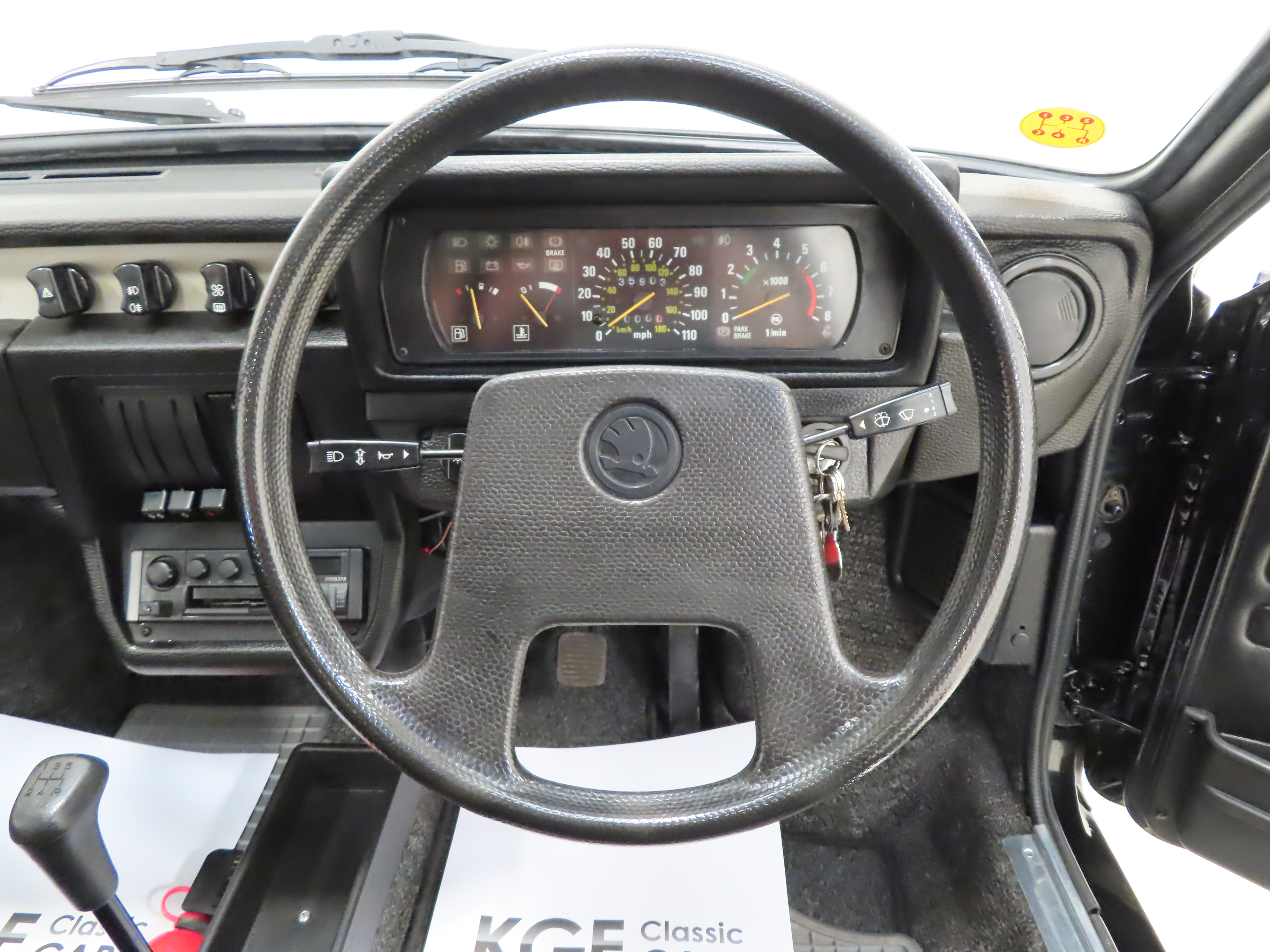 Simplicity was the ethos behind these cars to the extent where the specification was a ‘take it or leave it’ affair with no factory options available! The black seat fabric with clean white striping is in incredible condition with no thinning or rips, even to the tops of the rear seats, and the black vinyl door cards are fully intact. The carpets exude durability over opulence and the hard-wearing pile is free from damage and protected by the original grey sturdy Skoda tray mats and Rapid carpet mats. All interior equipment is fully operational including the Philips 552 stereo cassette for which the cassette flap is missing. The huge front luggage compartment with quirky side hinged hood is clean and still has the protective mat, tool roll and bulb holdall as well as bulkhead chassis stamp, VIN plate, AZNP build plate and delicate labels. Perfect retro motoring for those who dare to be different!