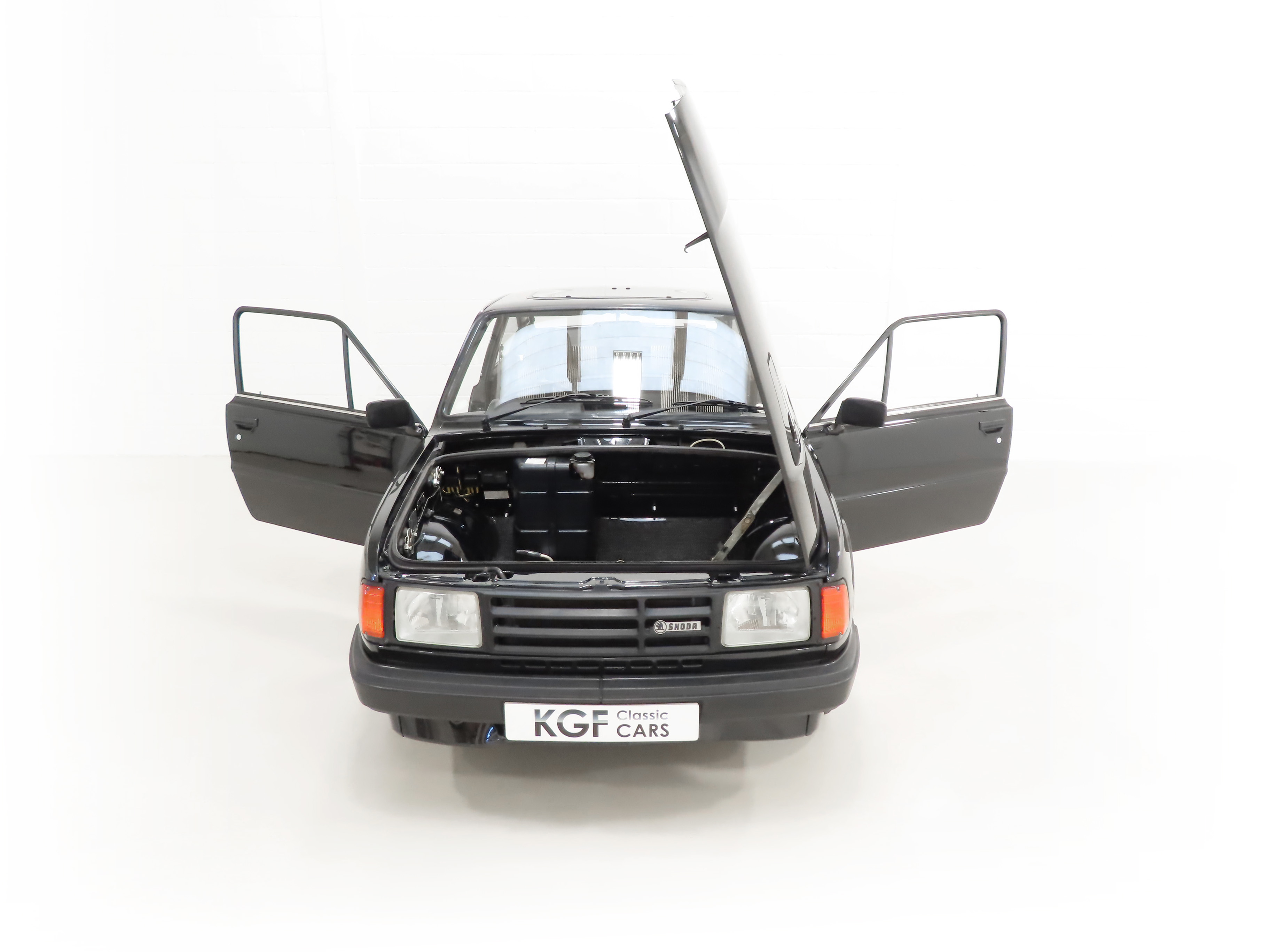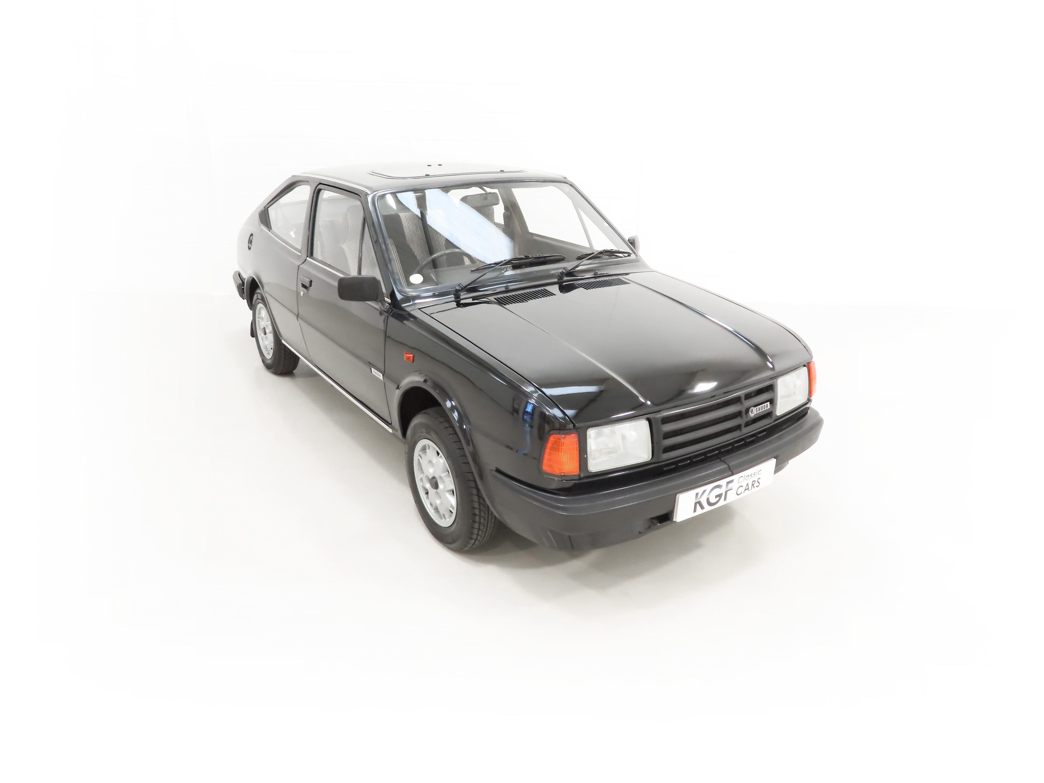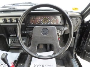 What handles like a Porsche, costs only £4,200 and is more fun than a Golf GTi? According to the Autocar & Motor magazine issue released on the 28th September 1988 the answer is the range topping sporty fastback Skoda 136 Rapid! This rare surviving example has been a regular sight in the classic Skoda fraternity and rightly so with just 35,903 miles and remarkable original condition. Specified in desirable factory cost optional Brilliant Schwarz Black, (Code 1999), the paintwork boasts a uniform finish with a few inconsequential markings. All panels are original fitment in amazing condition complete with the somewhat questionable panel fitment, exactly as is left the small Kvasiny Factory in 1990! The underside is very clean and close inspection will assure superb structural integrity thanks in part to Waxoyl professional wax applied by Rust Master. The two-piece bumpers, etched Thorax glass, lights and trim sections are all fully intact and free from damage. The original supplying dealer number plates, rear screen sticker and Lombard RAC Rally sticker remain fitted as it left the dealer new. A rare surviving example preserved, unspoilt and low mileage. Does it get much better?!