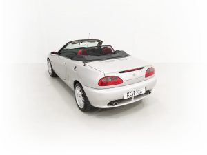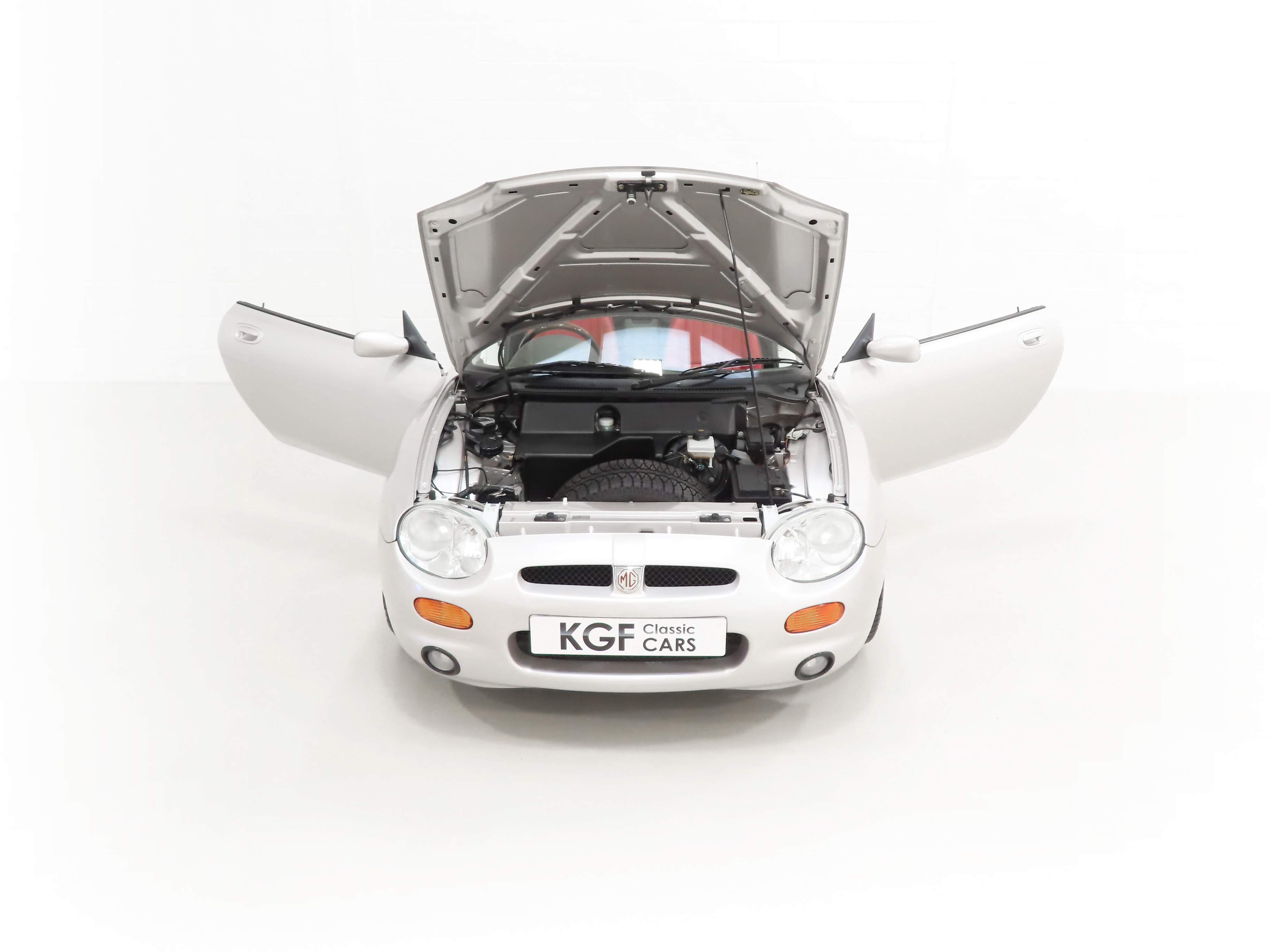 Registered new on the 16th March 1998 by MG Main Dealer, Sargeant & Collins Ltd of Bromley, this desirable top of the range VVC model has covered just 12,581 miles from new with only two owners, the last since April 1999! Mr Jones, an avid MG enthusiast, purchased the car with 2,892 miles and part exchanged his Flamenco Red MGB GT with just 16,000 miles and a further £17,080. His handwritten notes included in the comprehensive history file show his workings that this example had in excess of £3,828 of options and accessories without the hard top! Used sparingly by him and always garaged for the next 25 years, a neat A4 file of chronically ordered paperwork including original purchase documentation, service invoices, MOT certificates and much more is present. All handbooks, stamped service book and sales brochures are present along with two keys and remotes with leather MG dealer supplied key fobs. This stunning vehicle has recently benefited from a major service and cambelt change in December 2024 and represents a prime example with unrivalled credentials for any MG enthusiast.
