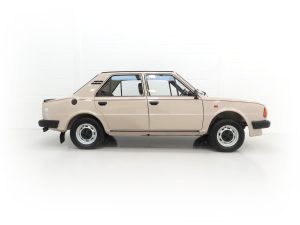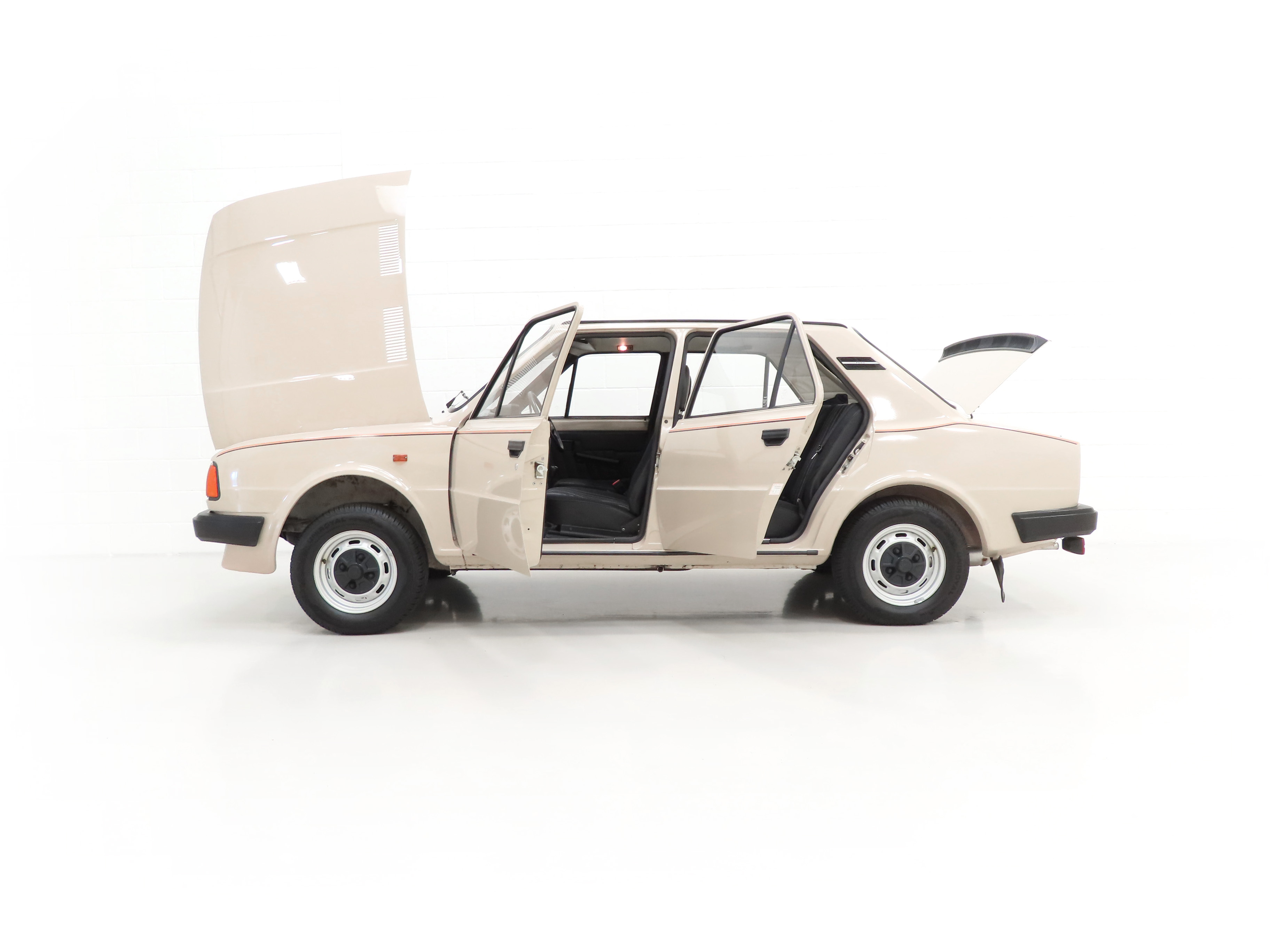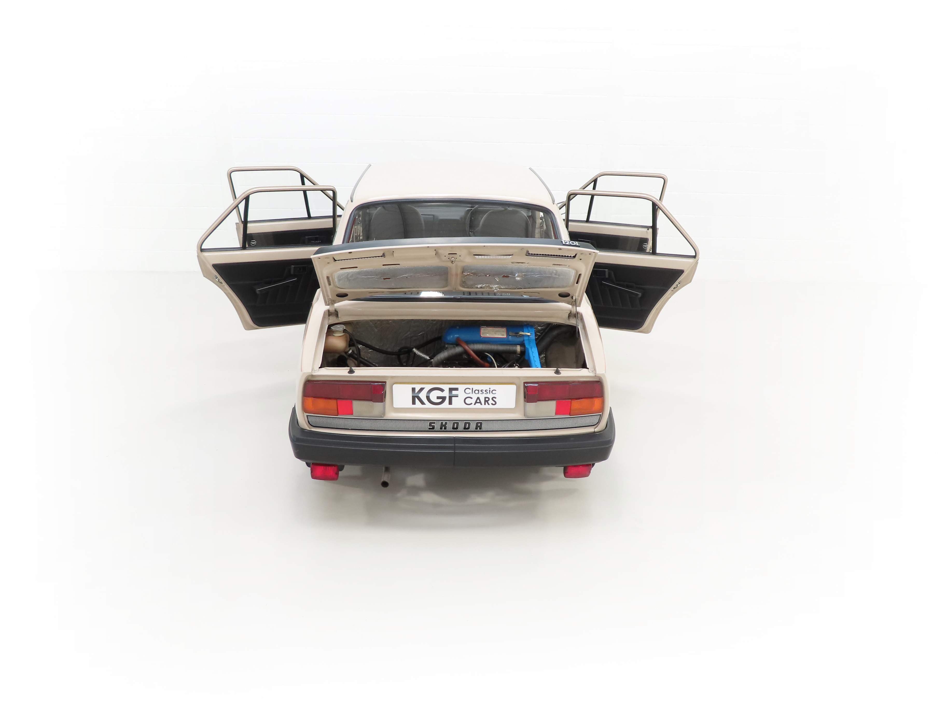 Surprising Skoda was the slogan used in the original sales brochure to advertise the Estelle Two 120L and it is no surprise that these quirky cars have achieved cult status. Finished in Pebblestone, (Code 2040), the paintwork has been subject to extensive detailing and some professional cosmetic refurbishment carried out to an exceptional standard to achieve the amazing visual appeal you see today. Noticeable only upon close inspection are some small areas touched-in above the rear screen and front passenger door top and a few tiny dings. The underside is incredible having never seen repair work. The original long term owner requested a dealer fit bodyside coachline in an attempt to zhuzh up the exterior. The two-piece bumpers, registration etched glass, lights, and trim sections are all fully intact and the original supplying dealer number plates and Lombard RAC Rally sticker remain fitted. A rare surviving example preserved with 14,627 verified miles and surely one of the best?