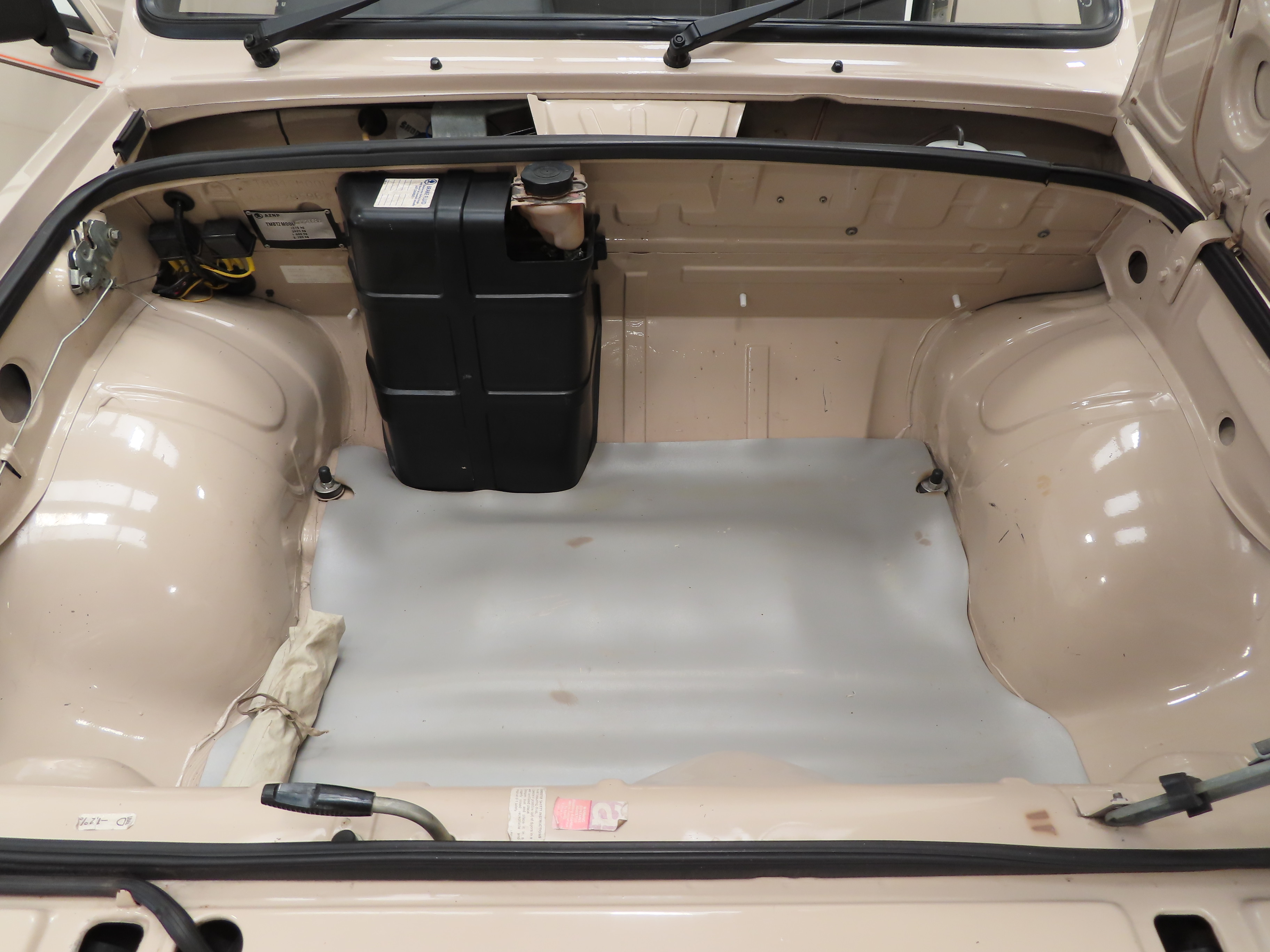 The interior remains the sturdy utilitarian and purposeful space it was always intended to be. The black seat fabric with clean white stripe stitching is in incredible condition with no thinning or rips and the black vinyl door cards are fully intact. The carpets exude durability over opulence and the hard-wearing pile is free from damage and protected by the original sturdy Skoda tray mats which do show some aging. Totally original even down to the protective cellophane below the rear seat base and all interior equipment is also fully operational. The huge front luggage compartment with quirky side hinged hood is clean and still has the protective mat and tool roll as well as bulkhead chassis stamp, VIN plate, AZNP build plate and delicate labels. Perfect retro family motoring and a trip to the Festival of the Unexceptional?