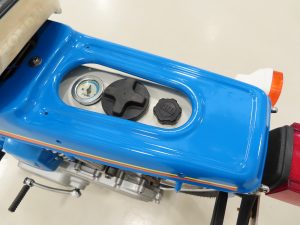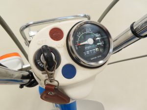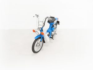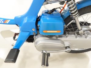 The 2-stroke 49cc engine develops 2.6hp and still features the correct later kick-start procedure and automatic choke and single-speed transmission. All mechanicals are in perfect working order as is the Autolube system with ball-level indicator and fuel gauge. A matching numbers machine, the engine number stamping is clearly visible as is the frame VIN plate. A single kick and this delightful Honda pops into life ready for simplistic and frugal motoring enjoyment!