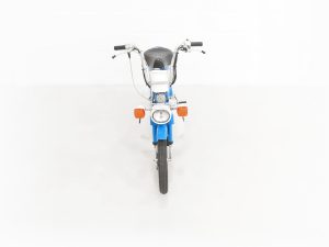 ‘You meet the nicest people on a Honda Express’. This was the marketing slogan for many small economy Honda scooters and mopeds of the era which became very popular in the years following the 1973 oil crisis where thrifty means of motoring was increasingly sought. This 1981 UK example is finished in Blue one of two colours available the other being Orange. The finish to this delightful example is remarkably preserved and the bike is very presentable with correct Deluxe decals. The frame paintwork is in superb condition and only very light age-related markings and patination can be seen on the plastic mudguards, cowlings and cables. Stanley light clusters remain fitted all round as does the supplying dealer number plate. The original two-tone seat has never been retrimmed and shows a few very light nicks and some discolouration. The lights, Nippon Seiki gauge, high beam indicator and push button horn all work perfectly. Guaranteed to raise a smile!