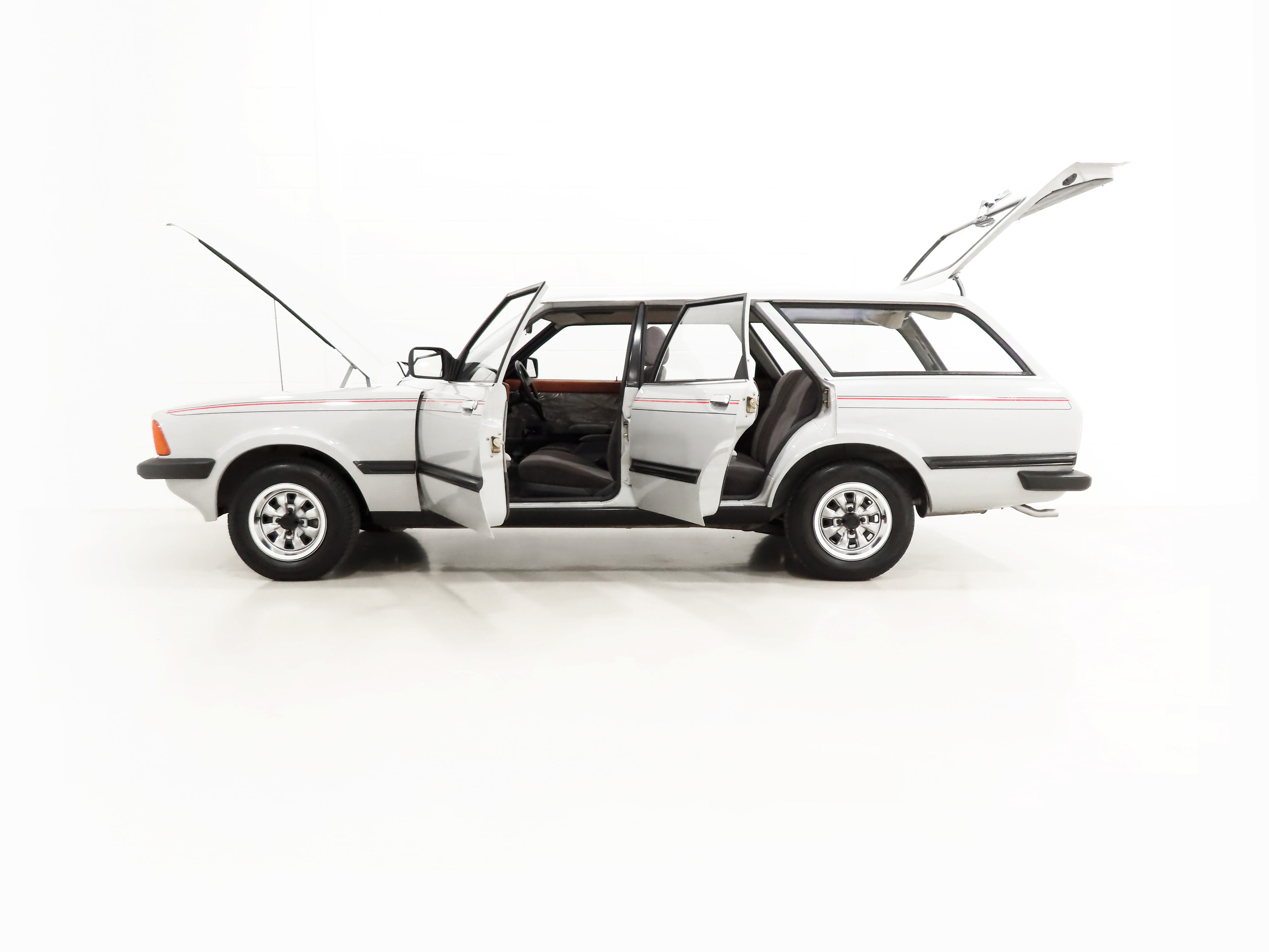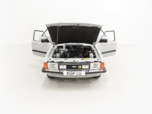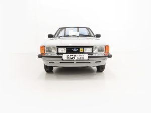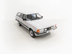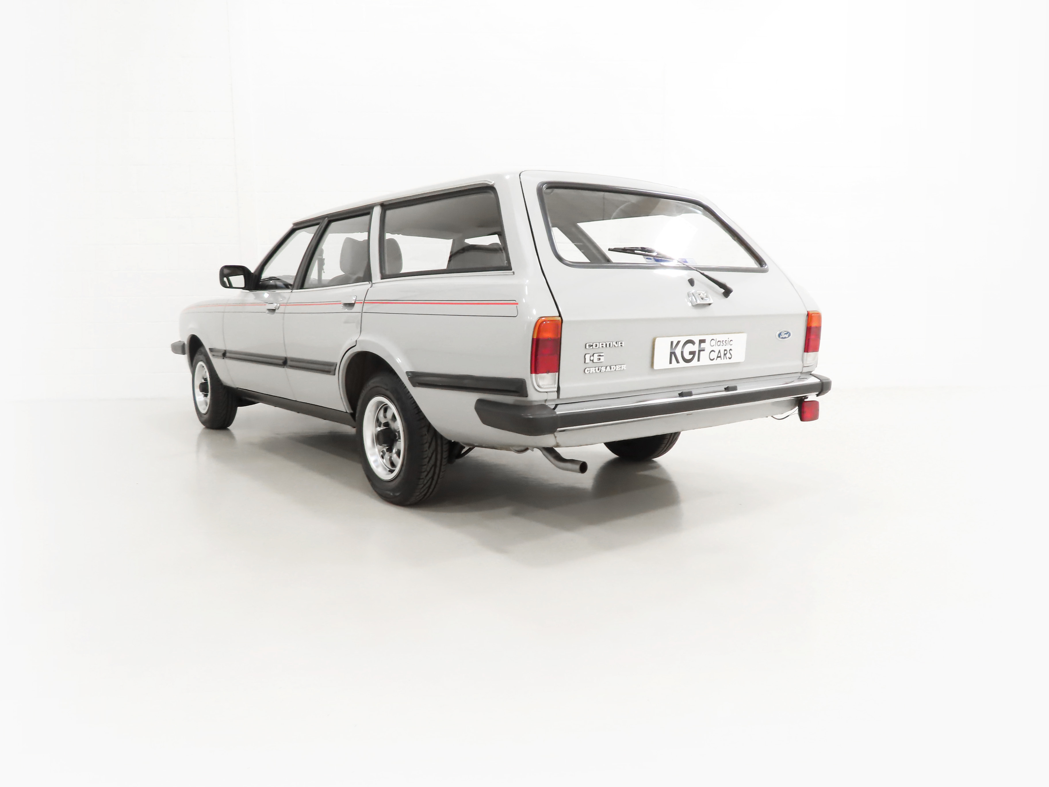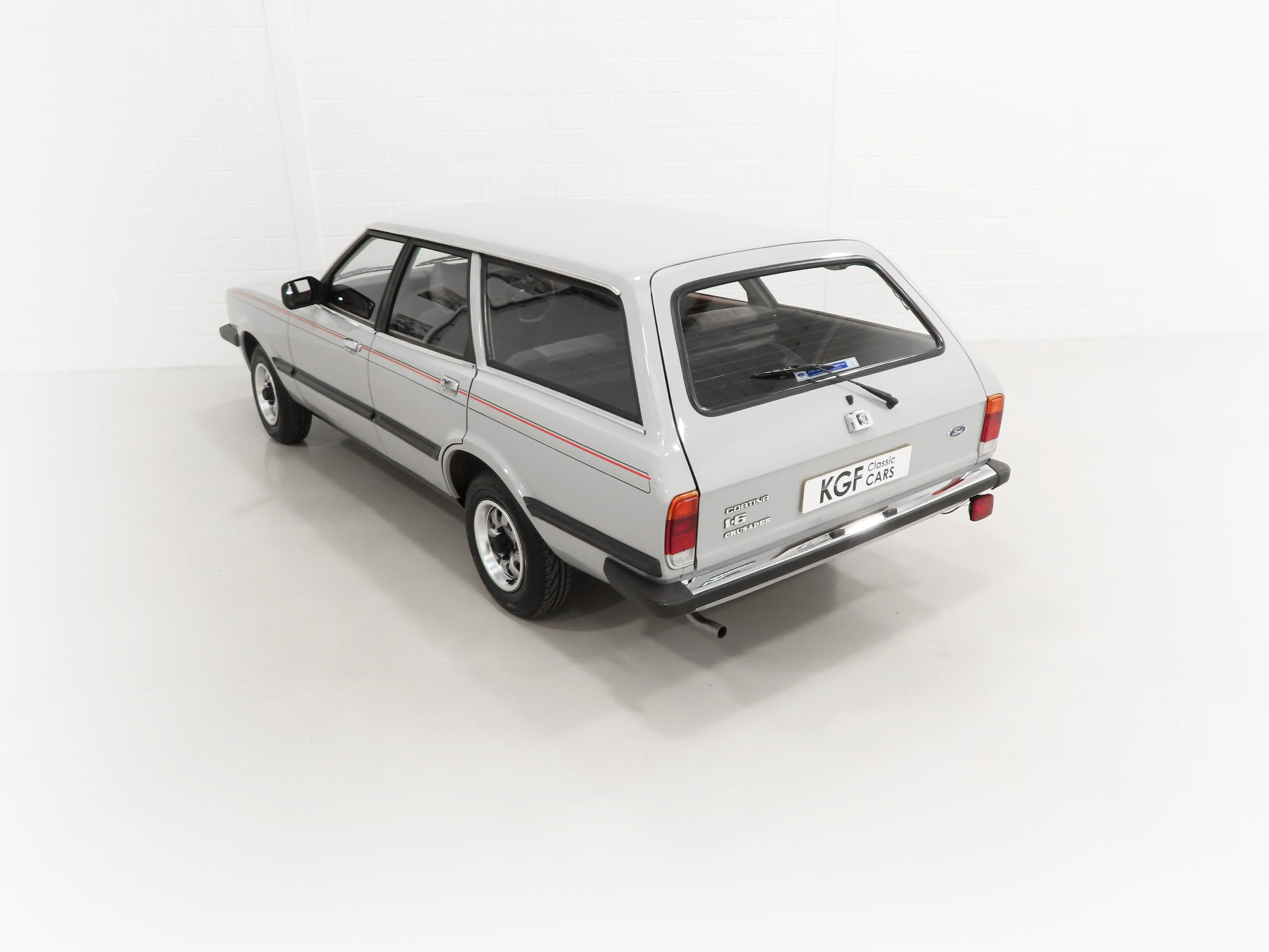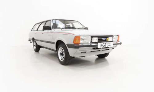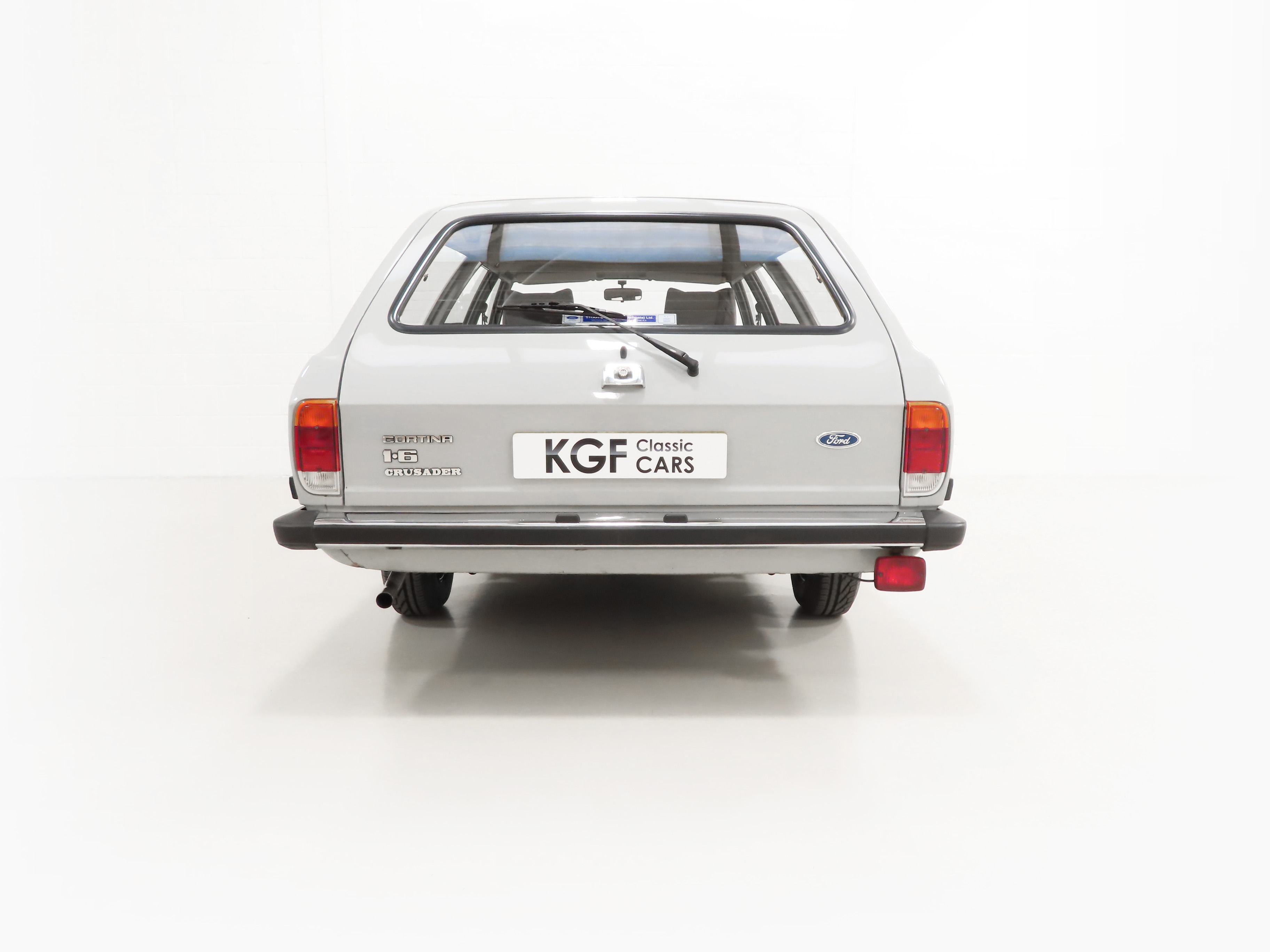 This virtually extinct special edition Crusader Estate Car is one of the final incarnations of Ford’s iconic Cortina MkV, sometimes known as the Cortina 80 being the facelift version of the MKIV. Finished in factory original Polar Grey, (Code E2), the paint has a fabulous shine with the smart twin pinstripe running the whole length of the car and bonnet adding a touch of distinction. Scrutiny will reveal honest touched-in paint imperfections and age-related defects and marks such as a rub mark to the plastic front bumper, all left to uphold factory originality and preferred over painted cars. Standard Crusader features such as the bright drip rail, belt moulding, door handles and locks have a mirror finish and supplying dealer branded number plates and rear screen sticker are fitted. Genuine Ford lenses are crystal bright and all glass is clear. The underside and wheel arch apertures are incredibly clean and factory original with no repairs, thanks to garage storage and the low 18,766 miles covered. Practical classic Ford motoring at its best!