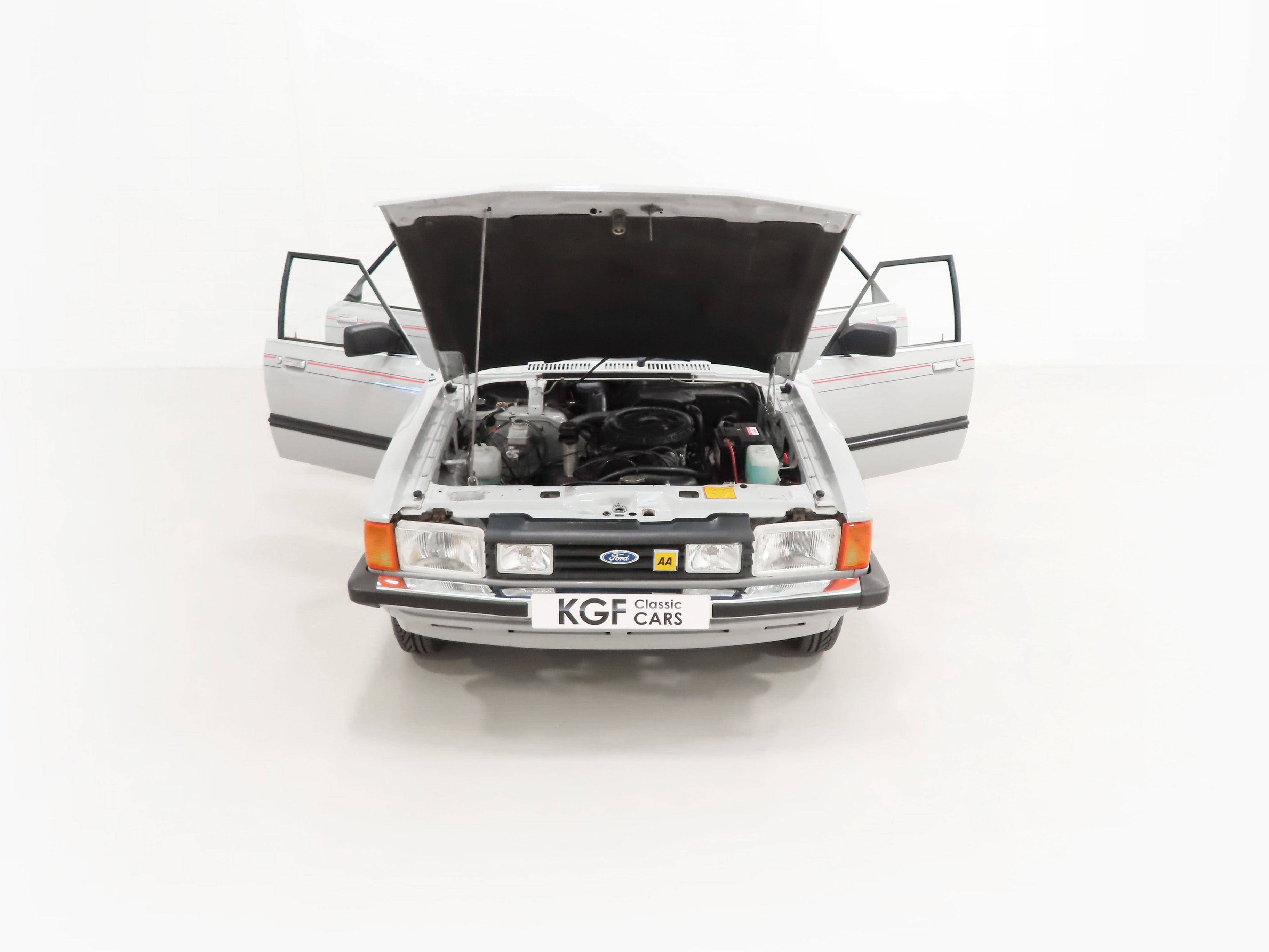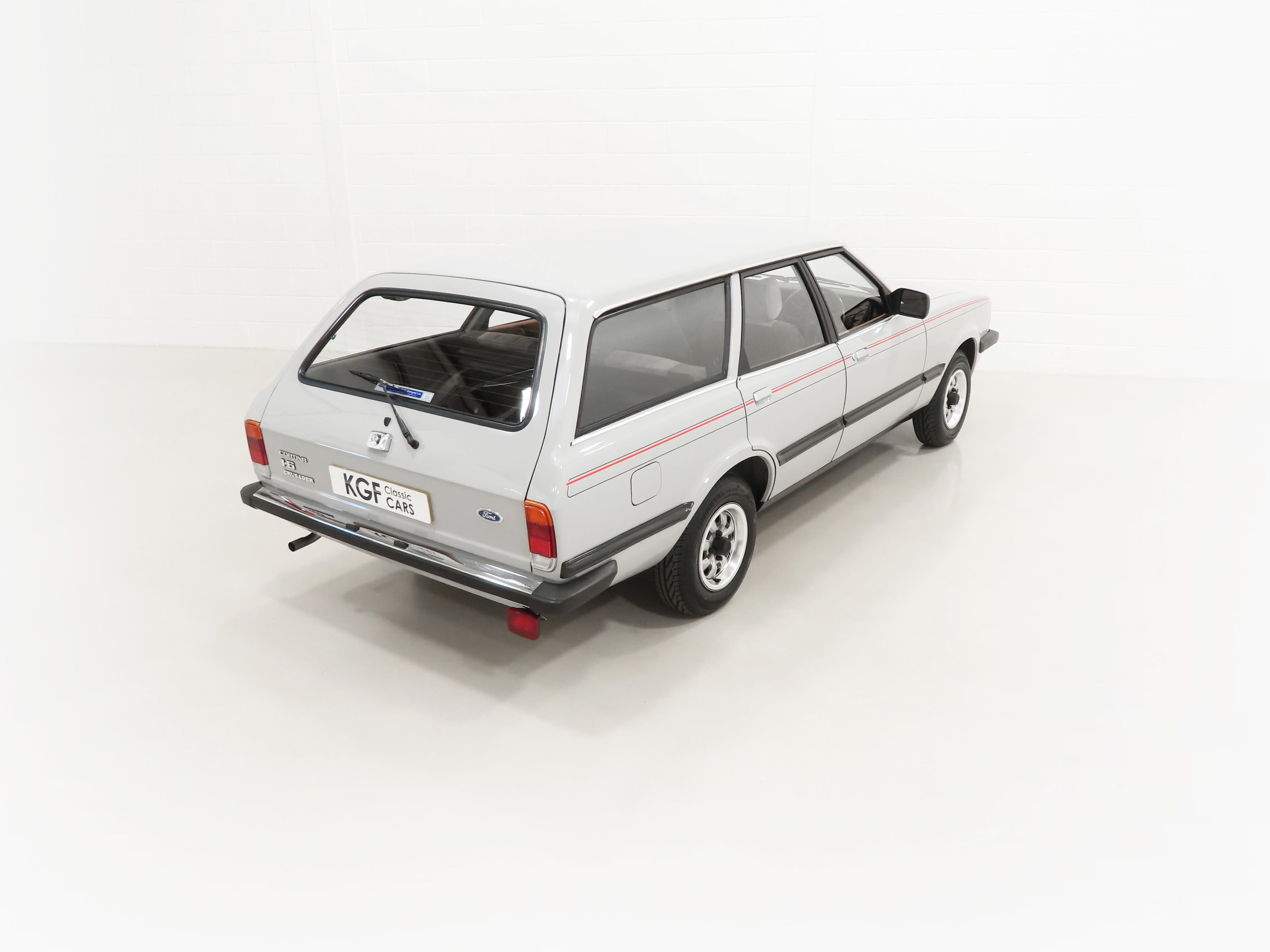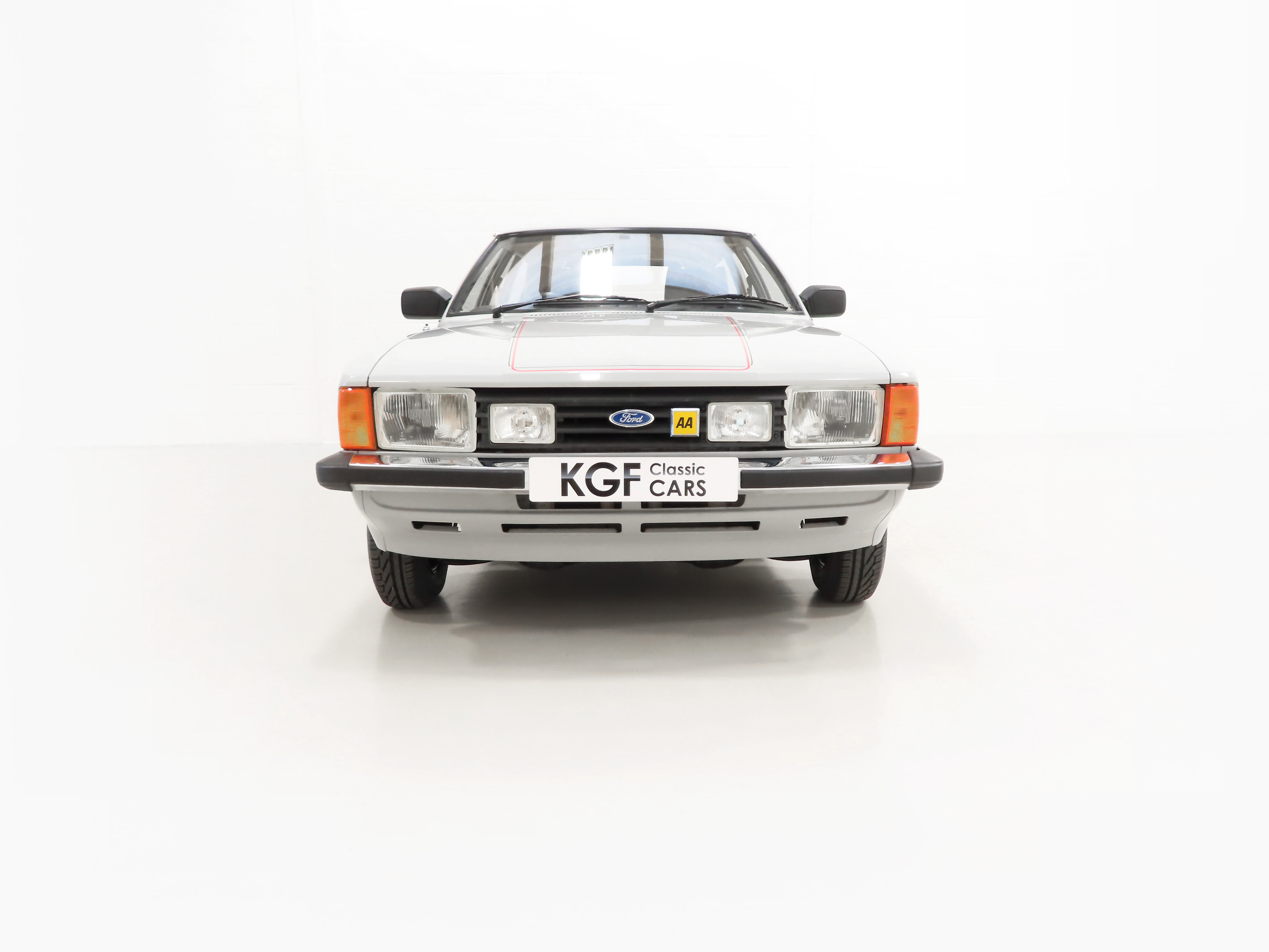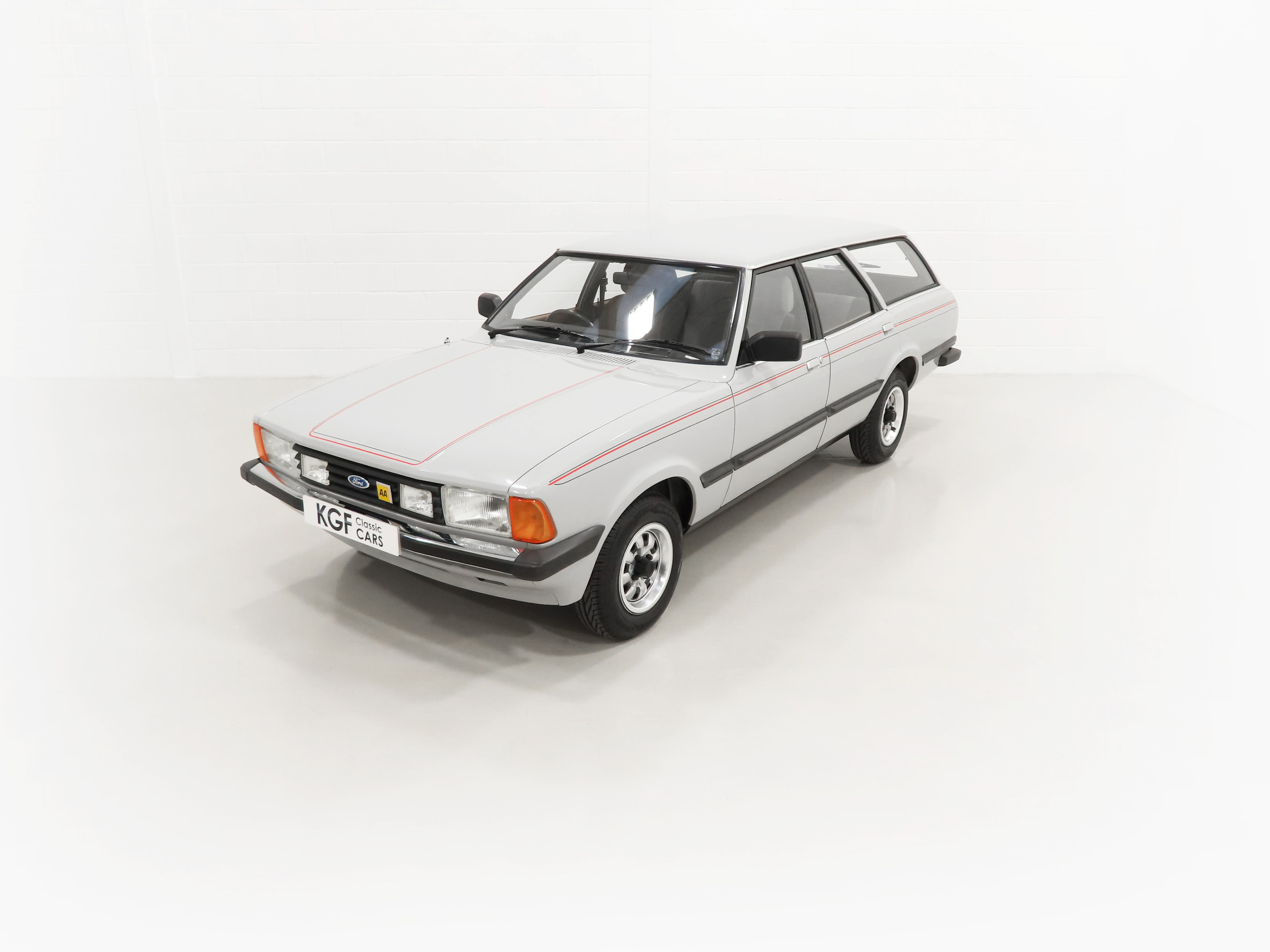 This rare Ford Cortina Crusader Estate Car was produced in May 1982, making this one of the very last Cortina’s to roll off the production line which ceased making the model at Dagenham in July 1982. Supplied new by Ford Main Dealer, Stout Brothers (Bathgate) Ltd and registered on the 1st January 1983 to a Mr Ian Weir, who paid a total of £5,767 as stated on the Vehicle Sales Invoice. A qualified motor engineer, the car remained in his care for 36 years until his passing in 2019 whereby his wife took ownership. Sold by Mrs Weir in July 2022 the vehicle has only had one owner since leaving the long-term family home. Virtually every MOT until 2007 helps warrant the low 18,766 miles and a letter dated June 2022 from Mrs Weir, along with a photo of her husband with his pride and joy, explains the pampered history this stunning car has enjoyed. Supplied with an A4 folder of documentation including rare artefacts such as numerous tax discs, previous registration documents and old MOT certificates along with invoices and the specific Crusader brochure and Price Guide. All the vehicle operating guides and the service book are contained in the clear A5 document holder. Both keys are present. This is one for the connoisseur of original, low mileage, low owner and incredibly rare Fords.
