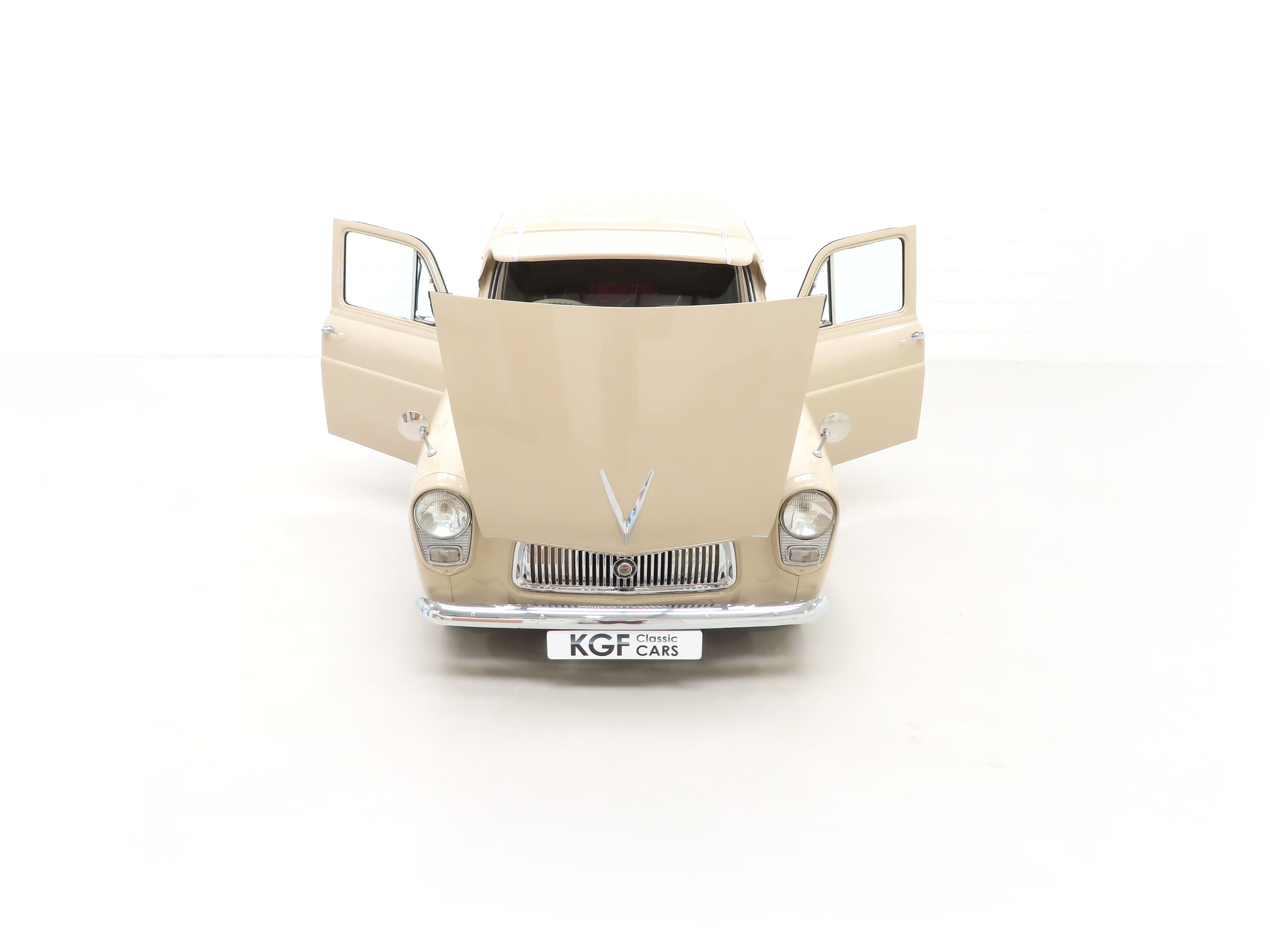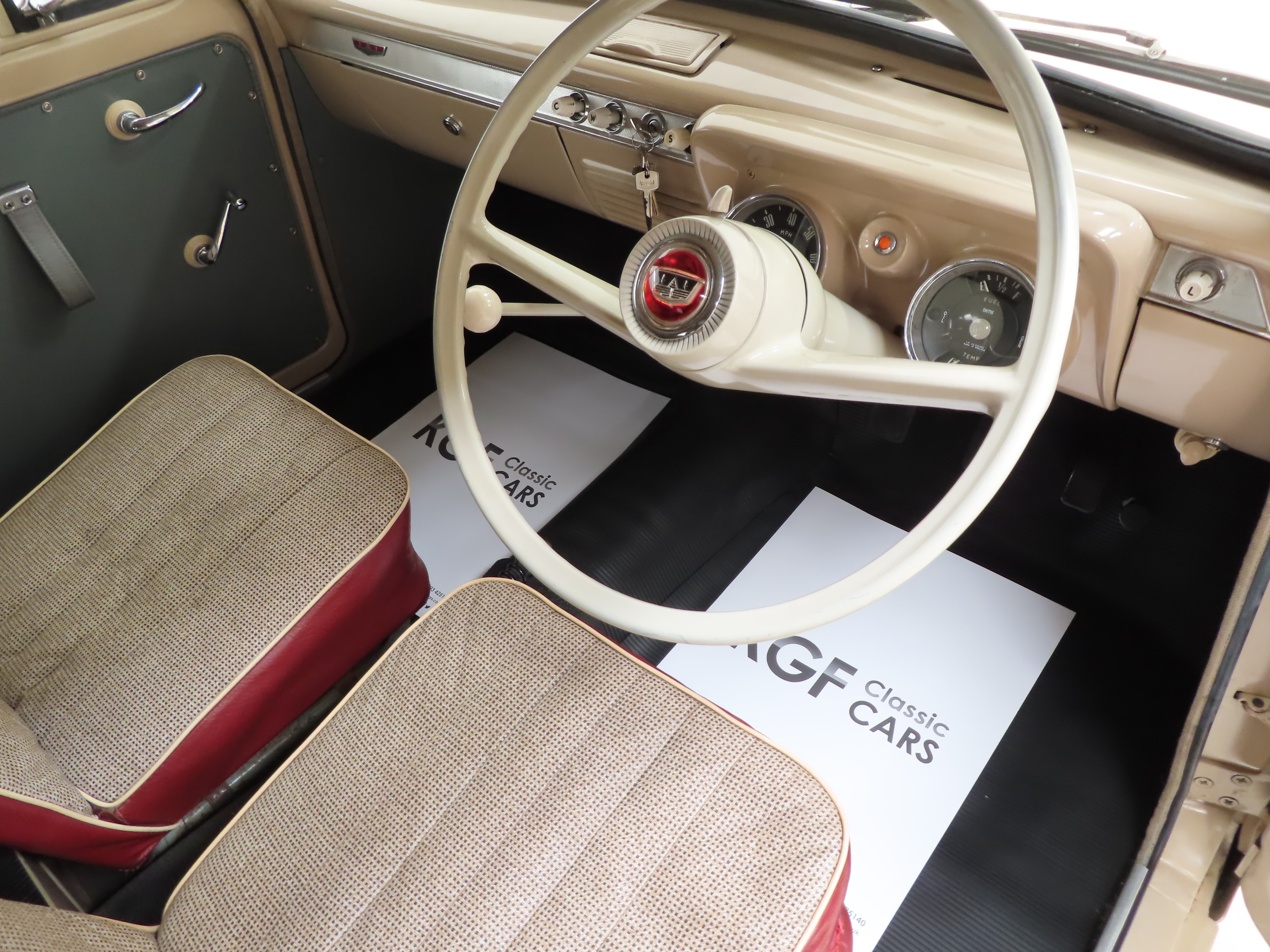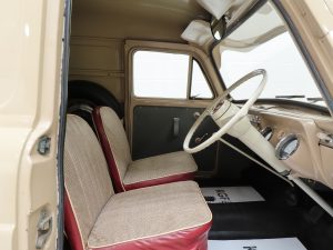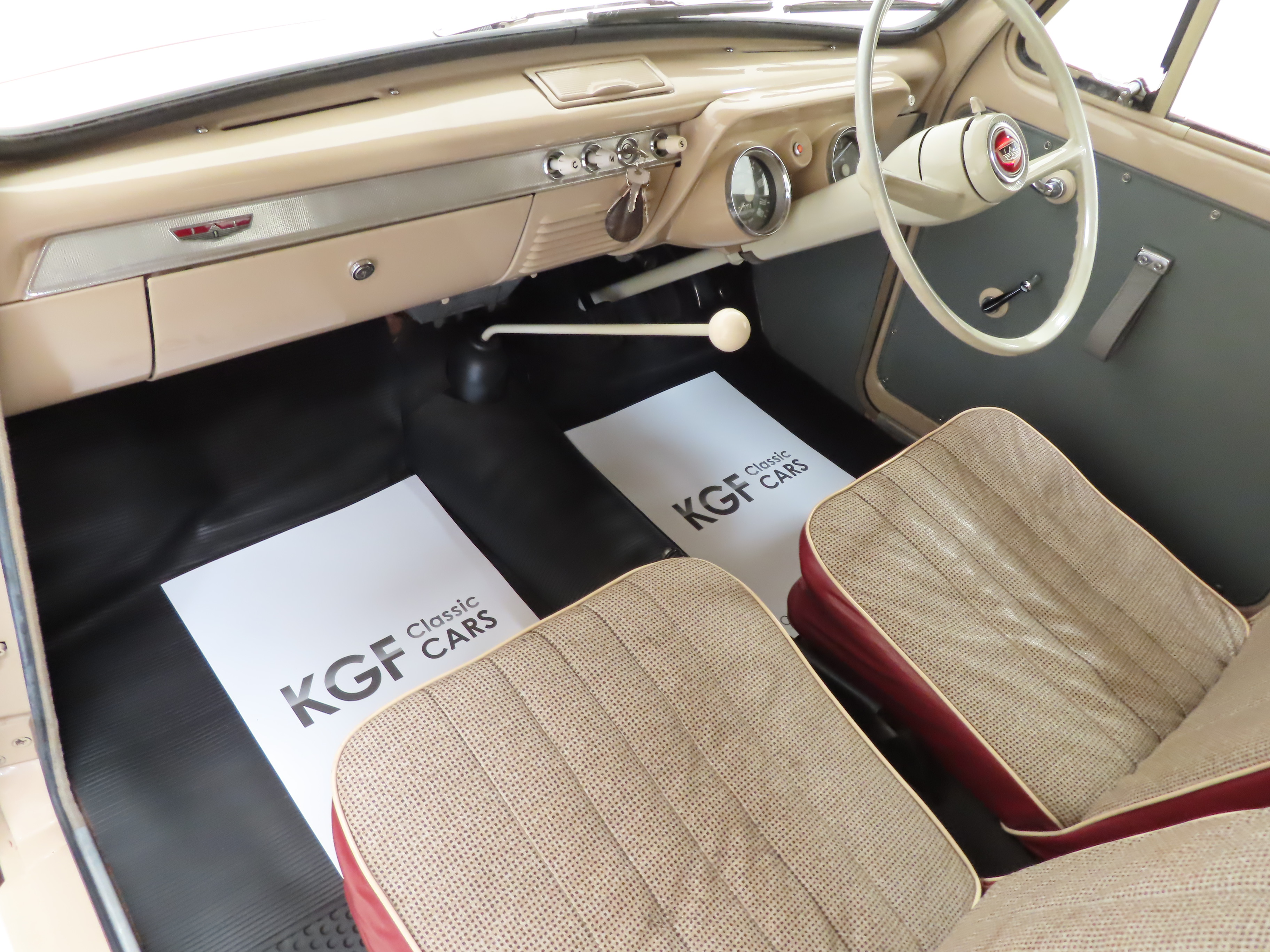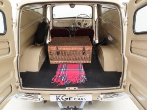 Pressed-steel disc wheels are painted in matching Durham Beige with the original chromium hubcaps in very good condition. The tyres have plenty of tread with the front and rear measuring 165/70 R13 and 175 R13 respectively. A full suspension overhaul has been carried out with evidencing invoices and the standard braking system incorporates 8in drums all-round requiring a firm stamp in comparison to modern equivalents!