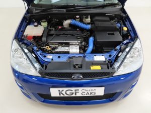 Fitted with the thumping Ford 2.0 Duratec RS four-cylinder 16v turbocharged unit, the power output achieved is 212bhp at 5500rpm and 310Nm torque at 3500rpm. The maximum speed is 144mph while 0-60 is dispatched in just 6.4 seconds! The engine bay is stunningly clean with factory plates, stickers, labels and wing stamps visible. Continually serviced at Ford with 19 documented visits, all consumables are genuine Ford items except the air filter replaced by Ford for a non-genuine filter when no longer available. The Ford MTX-75 gearbox with standard short-throw shifter and AP Racing clutch, offers the ultimate rally road car experience.